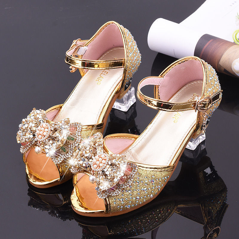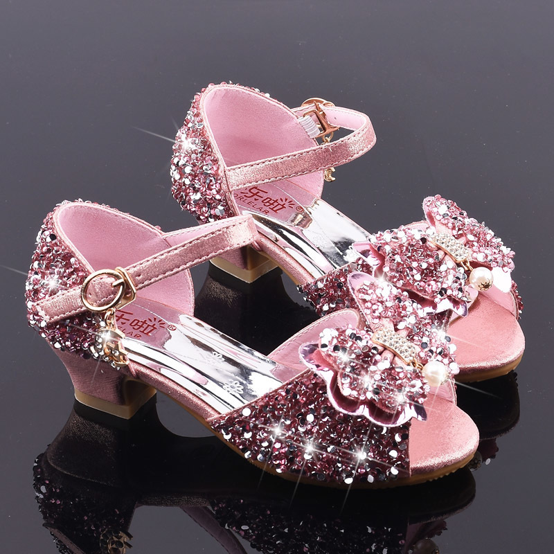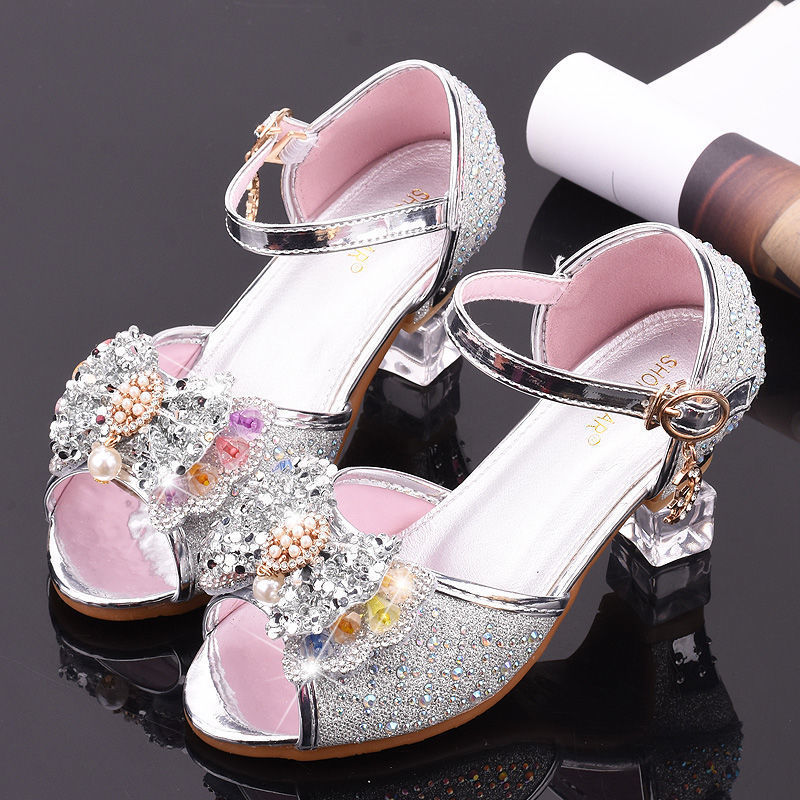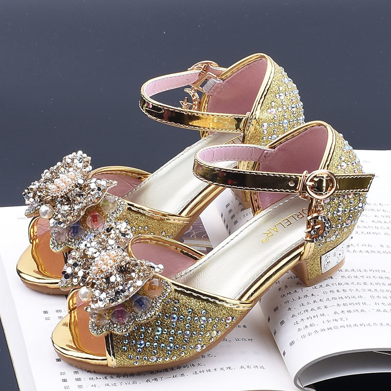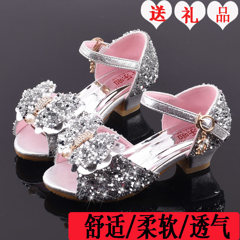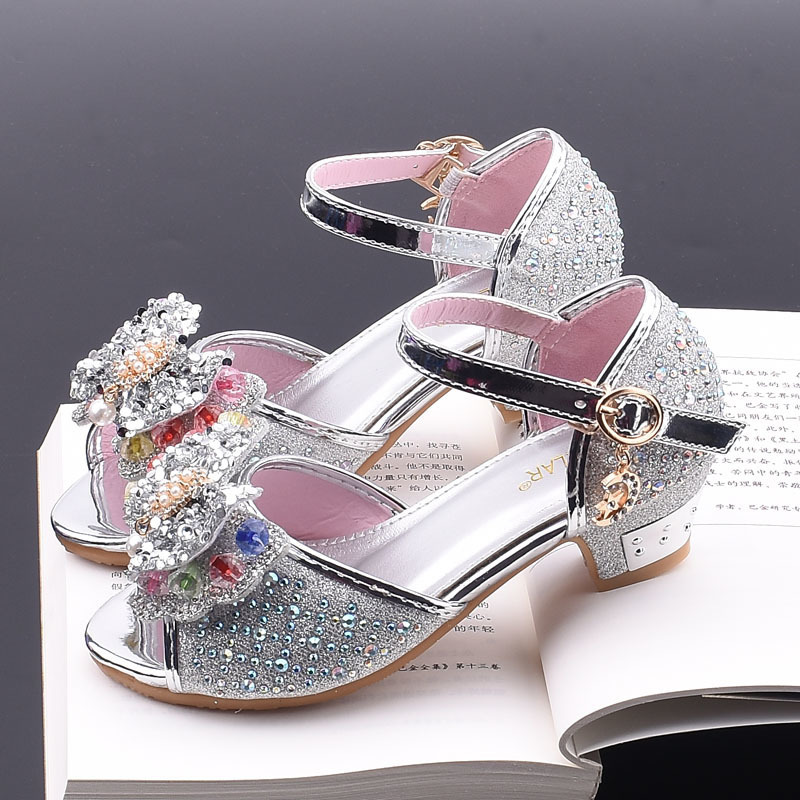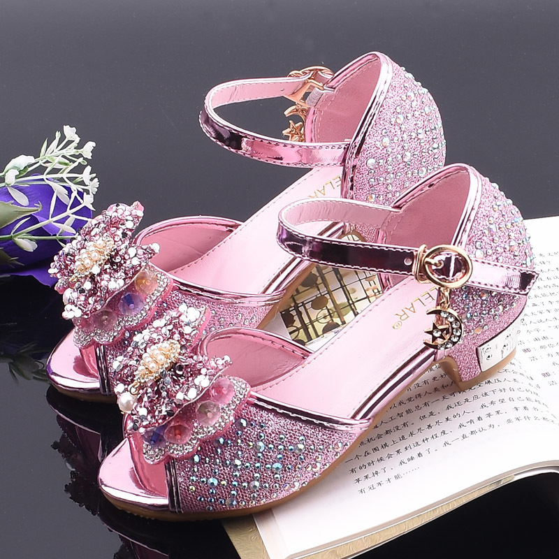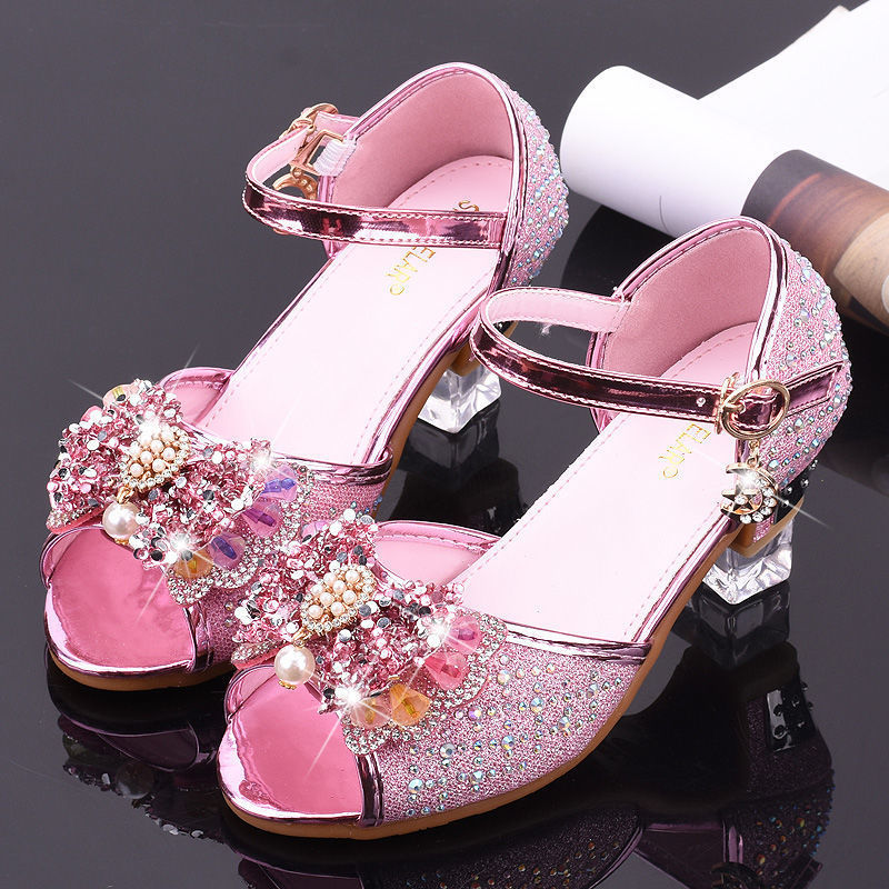 새로운 여자 하이힐 샌들 공주 신발 밝은 라인 석 여름 어린이 샌들 라틴 댄스 신발 패션쇼 패션 신발스토어 가기