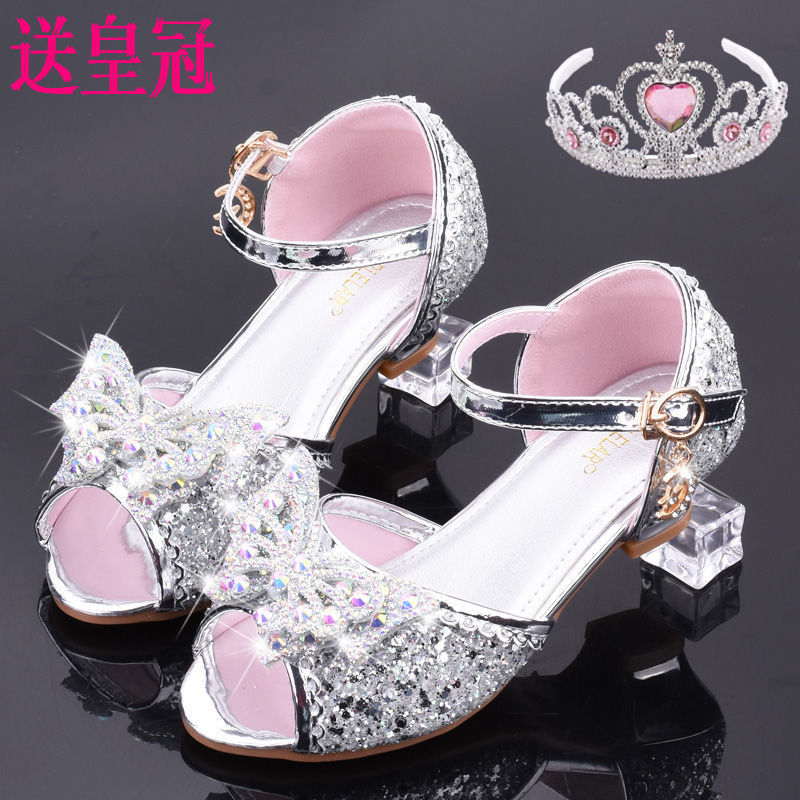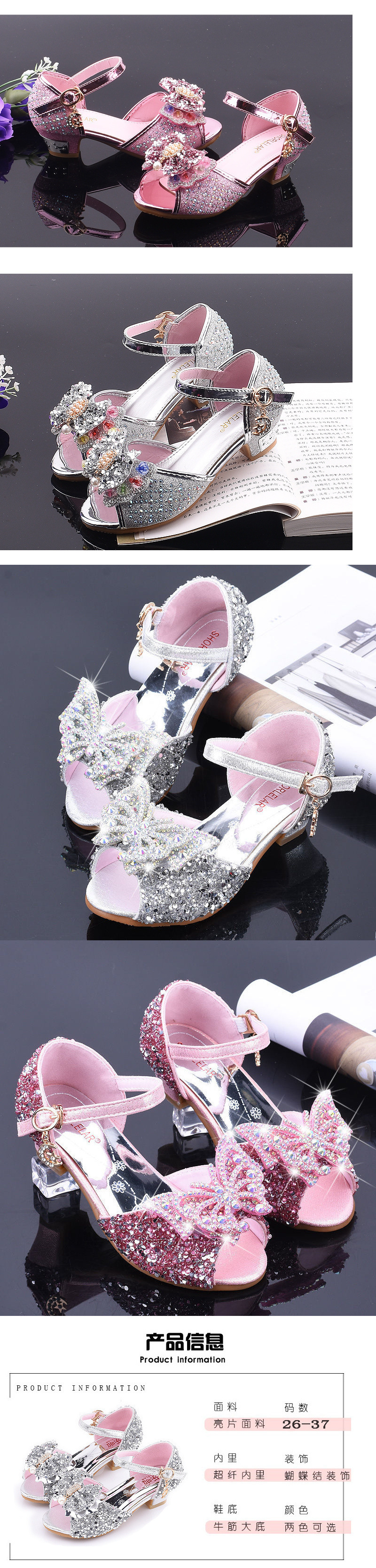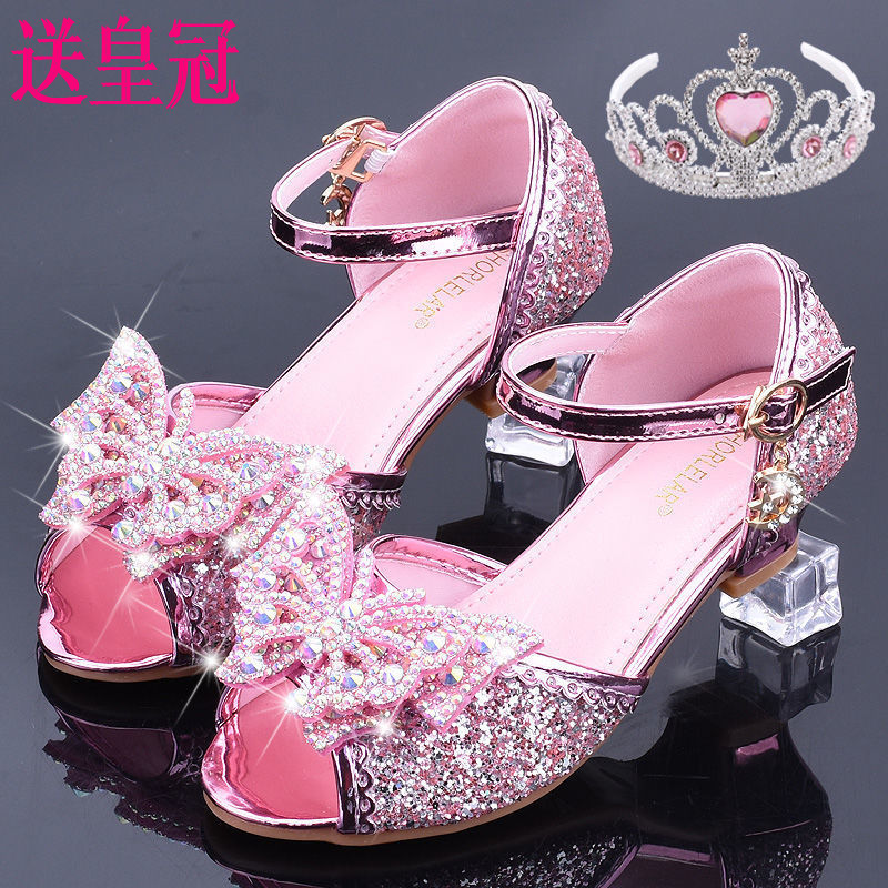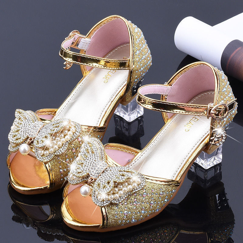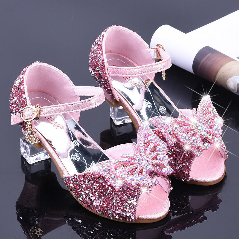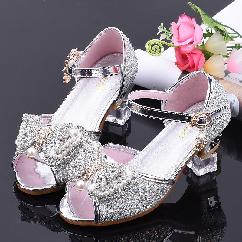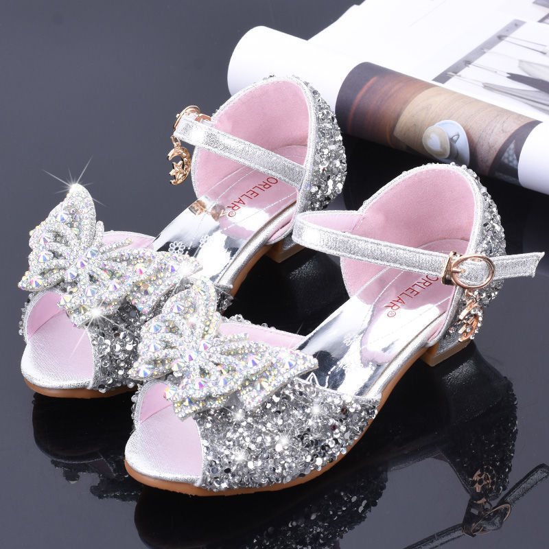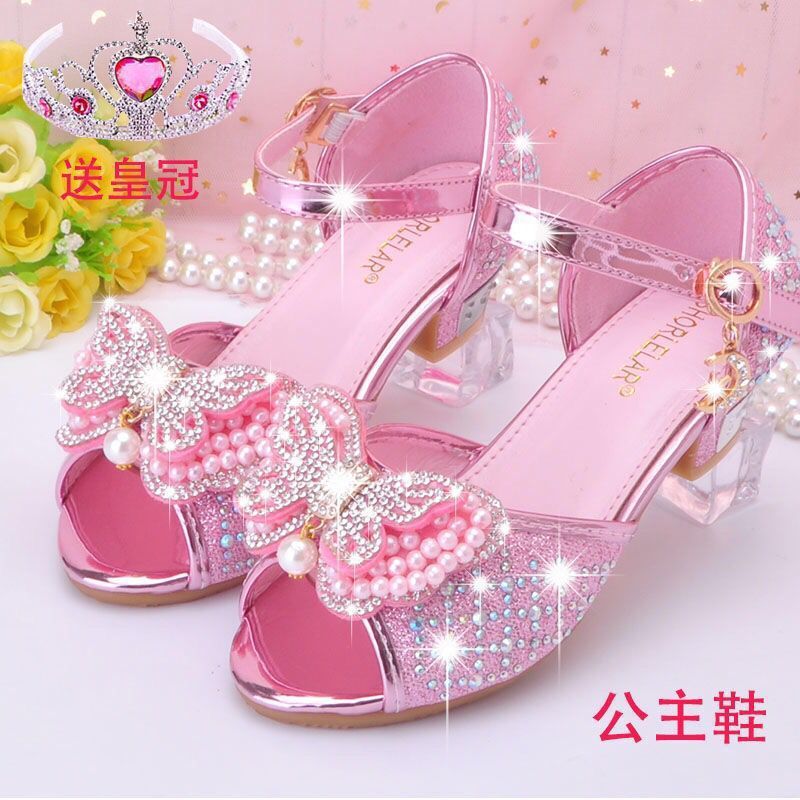 새로운 여자 하이힐 샌들 공주 신발 밝은 라인 석 여름 어린이 샌들 라틴 댄스 신발 패션쇼 패션 신발스토어 가기