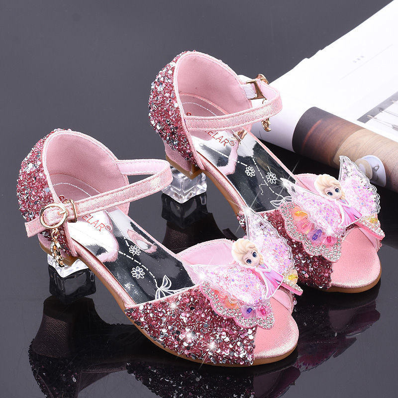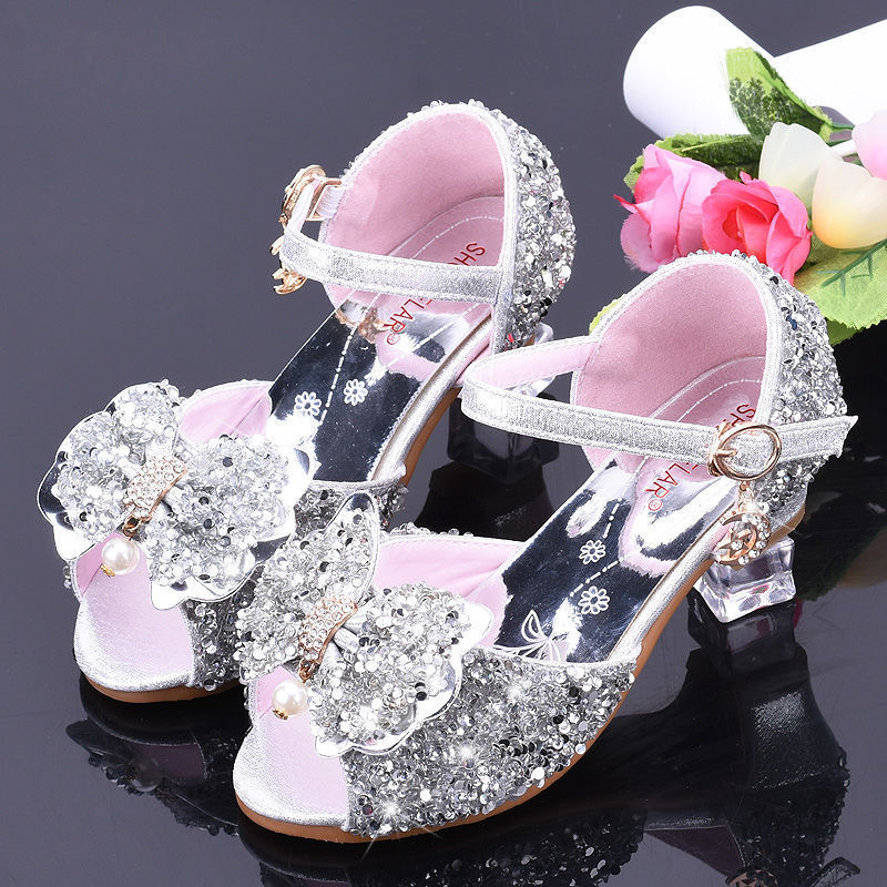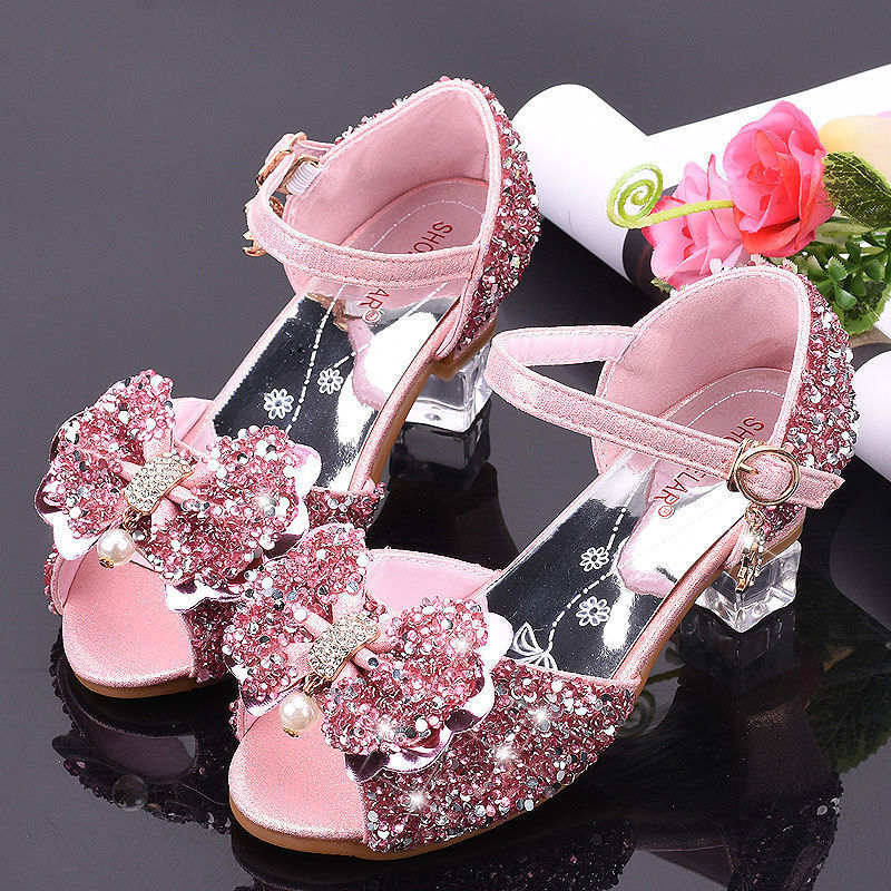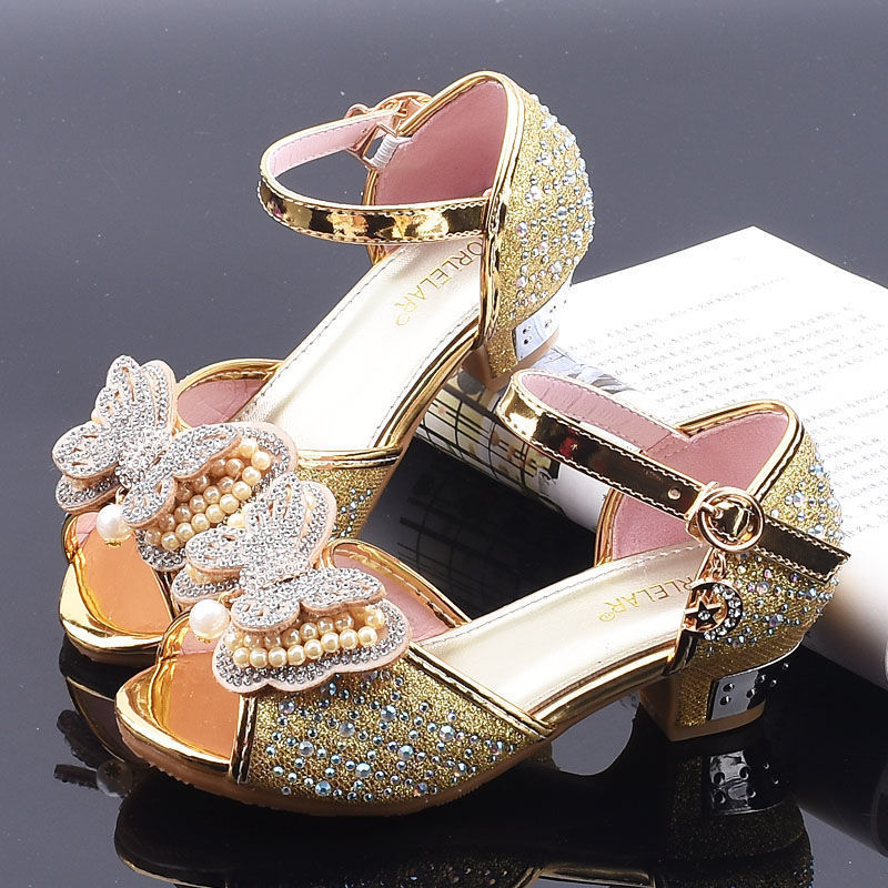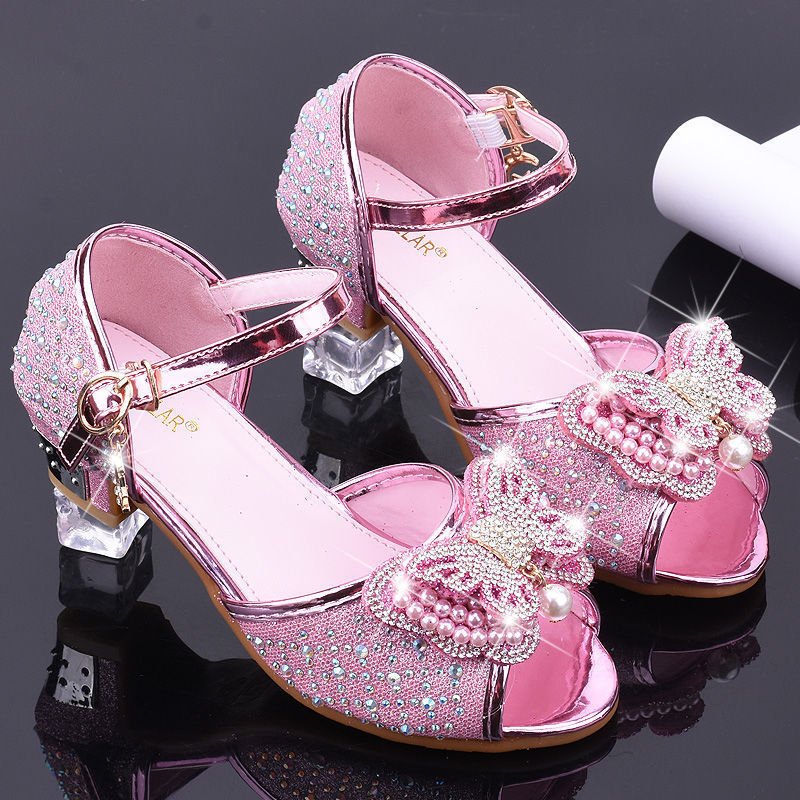 새로운 여자 하이힐 샌들 공주 신발 밝은 라인 석 여름 어린이 샌들 라틴 댄스 신발 패션쇼 패션 신발
