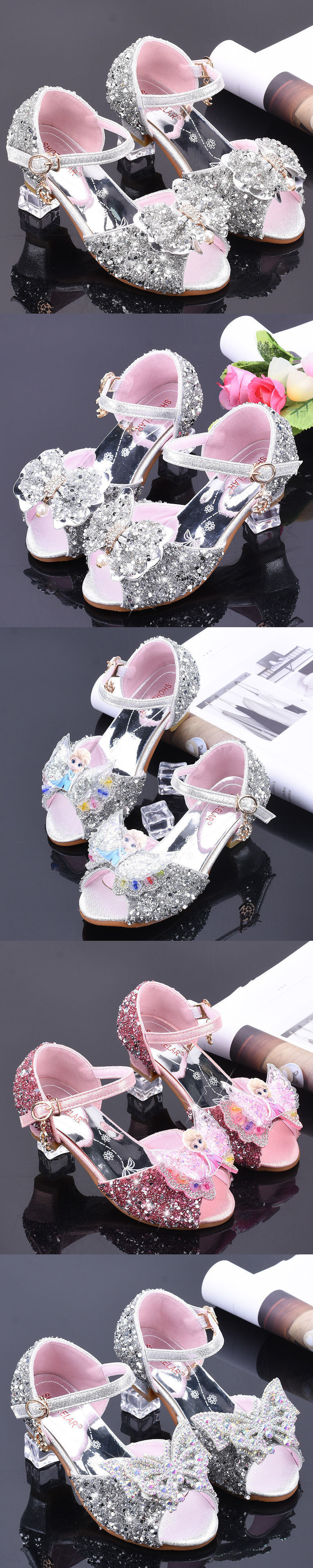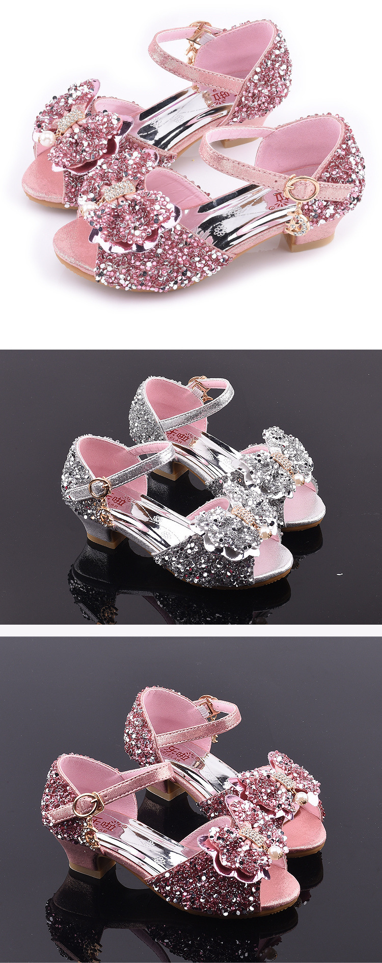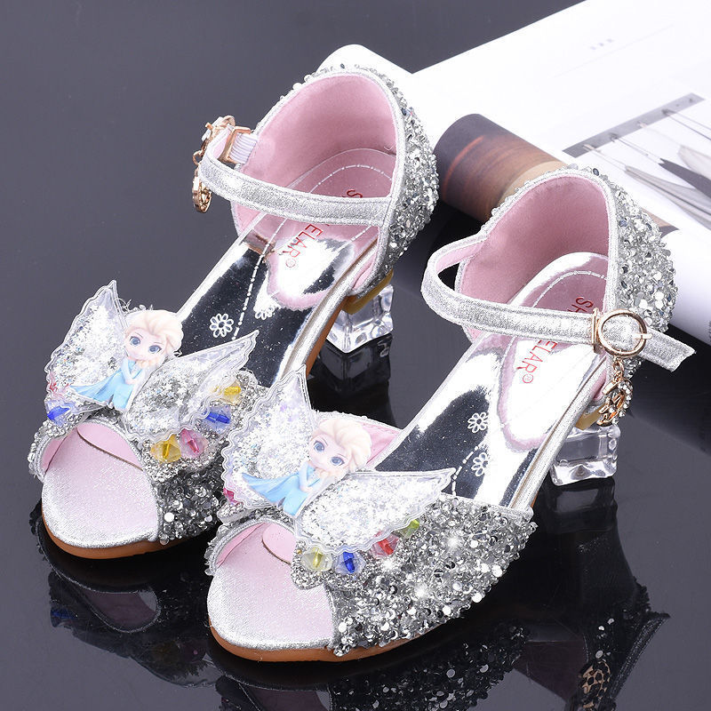 새로운 여자 하이힐 샌들 공주 신발 밝은 라인 석 여름 어린이 샌들 라틴 댄스 신발 패션쇼 패션 신발