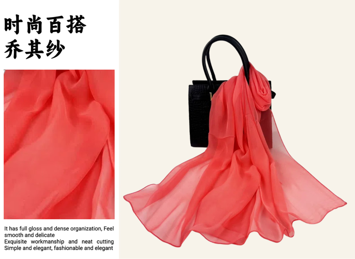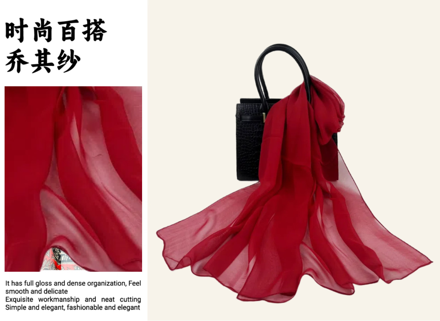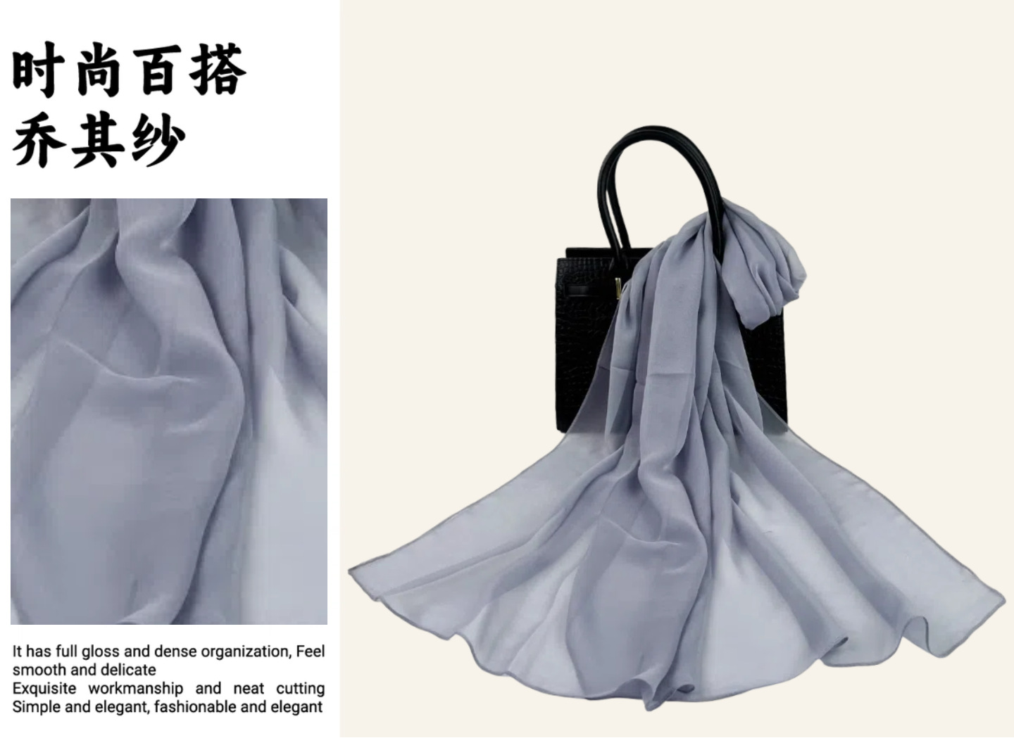 솔리드 컬러 쉬폰 롱 스카프 50*160 하이 엔드 롱 실크 스카프 실크 느낌 조젯 스카프 여성 실크 얇은 스카프스토어 가기