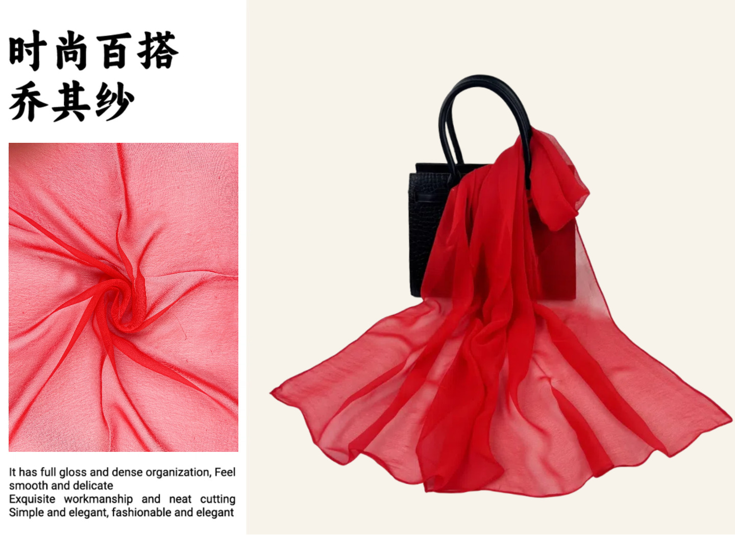 솔리드 컬러 쉬폰 롱 스카프 50*160 하이 엔드 롱 실크 스카프 실크 느낌 조젯 스카프 여성 실크 얇은 스카프