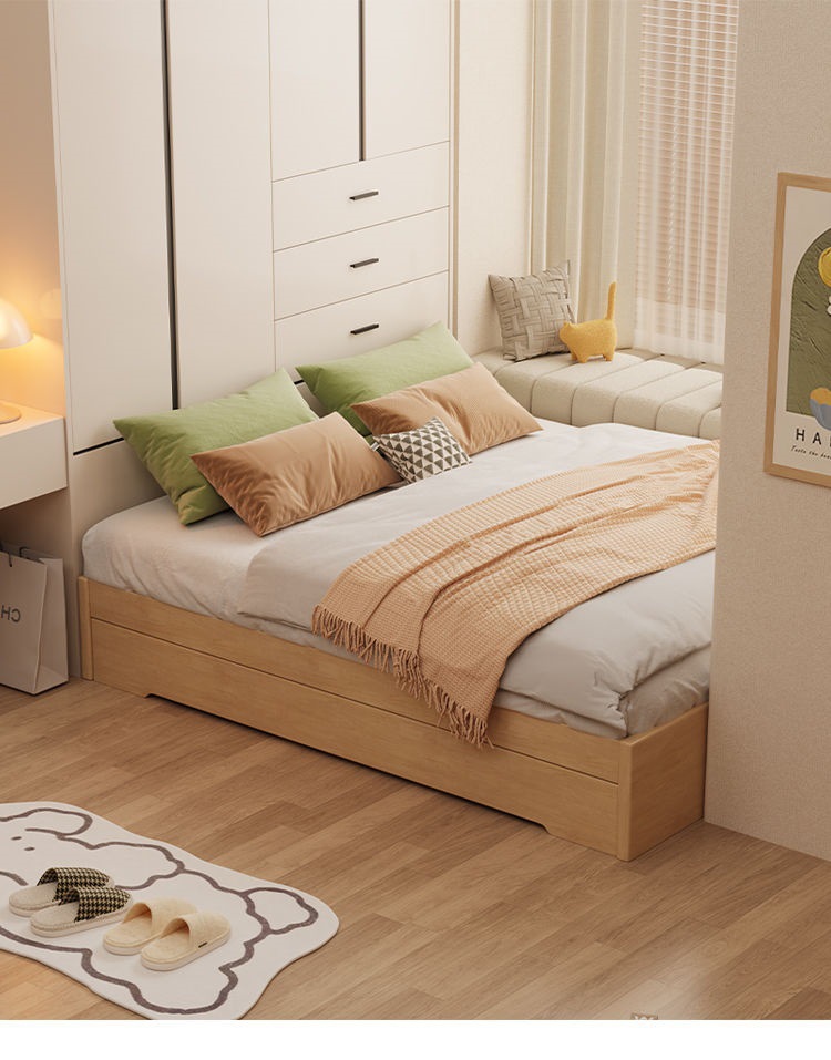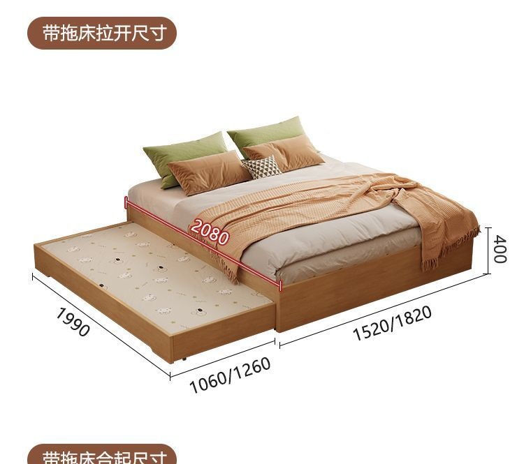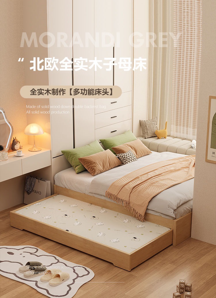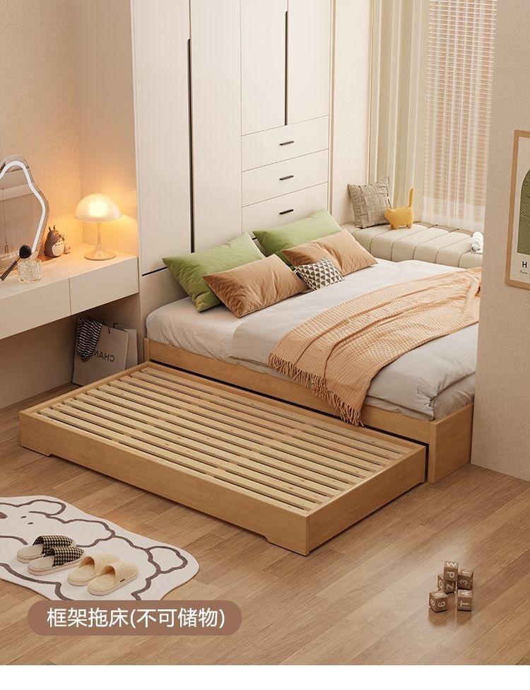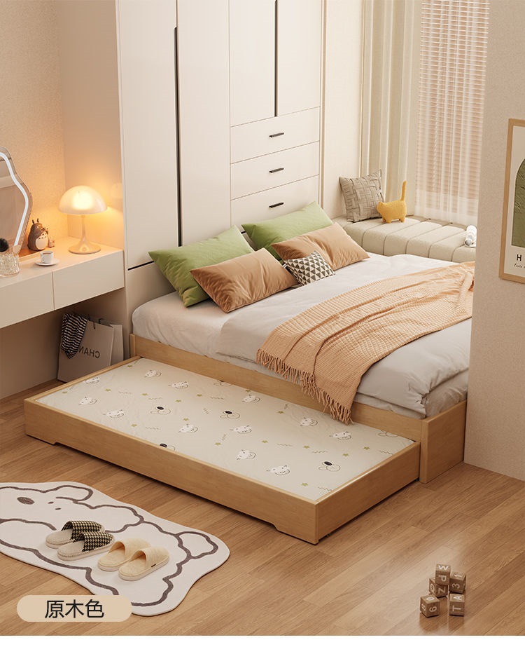 현대적인 단순한 단단한 나무 싱글 및 더블 침대 1.35m 1.2m 가정용 수납 침대 1m 풀아웃 이층 침대