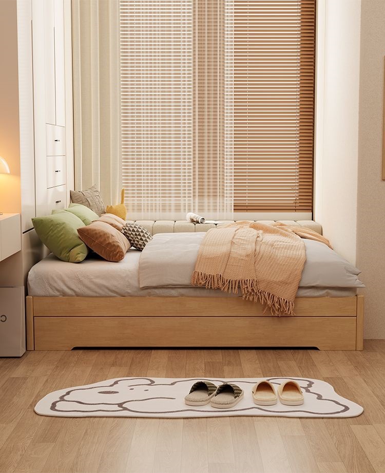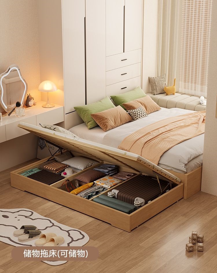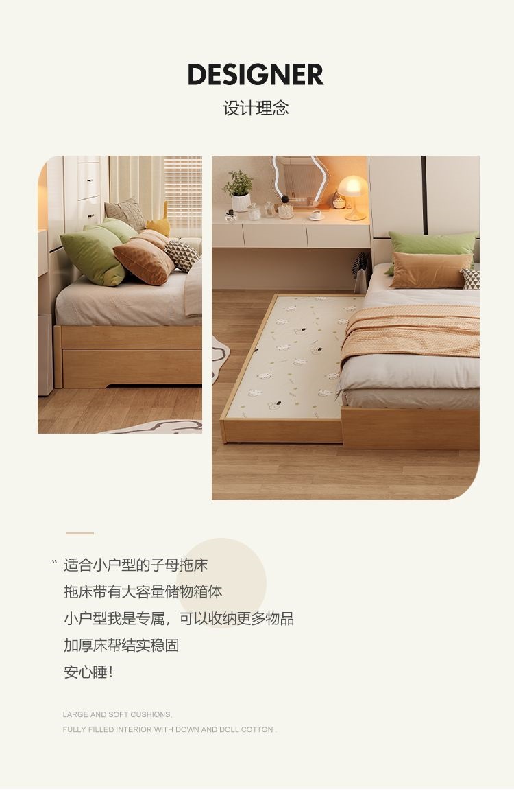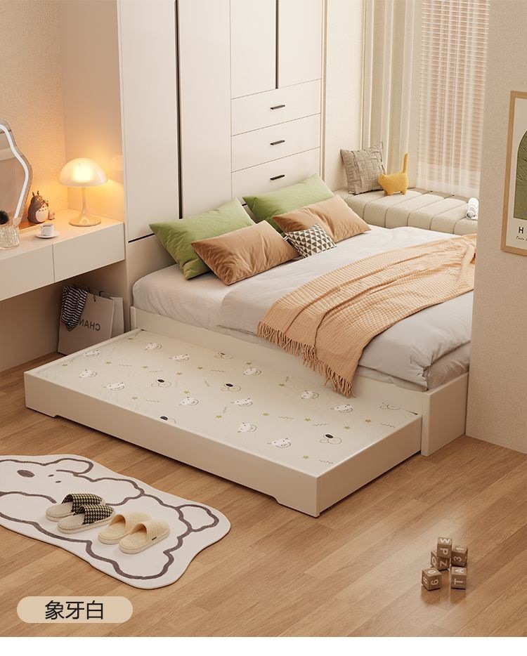 현대적인 단순한 단단한 나무 싱글 및 더블 침대 1.35m 1.2m 가정용 수납 침대 1m 풀아웃 이층 침대