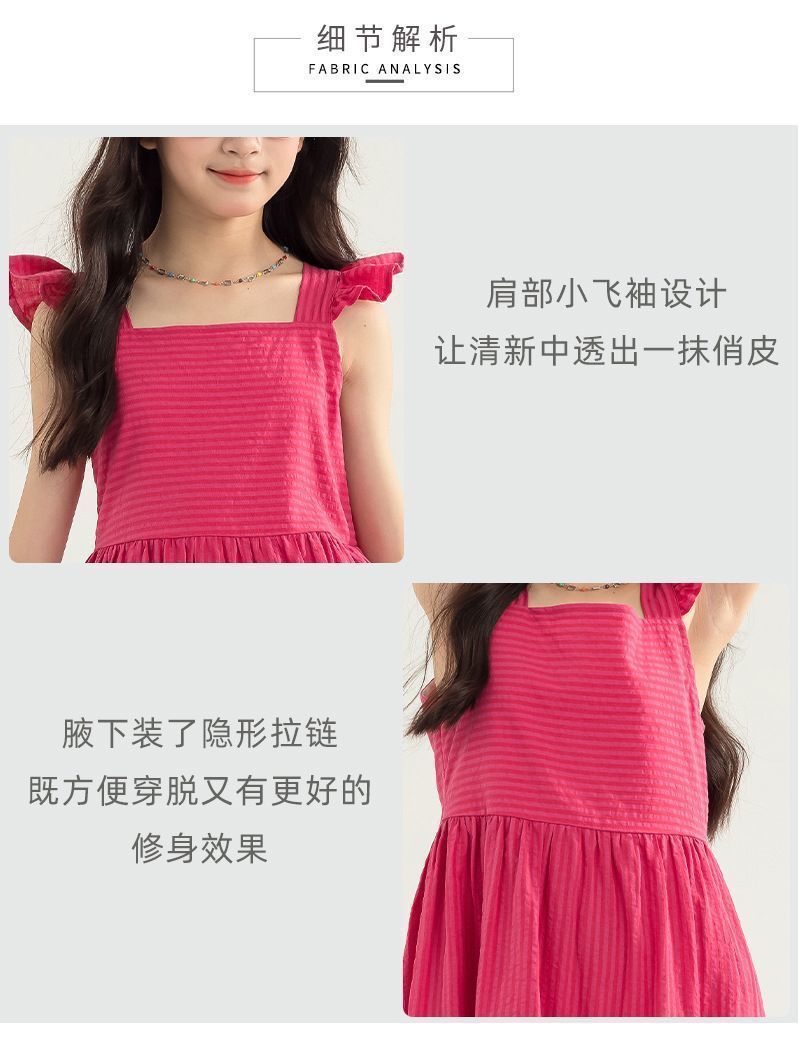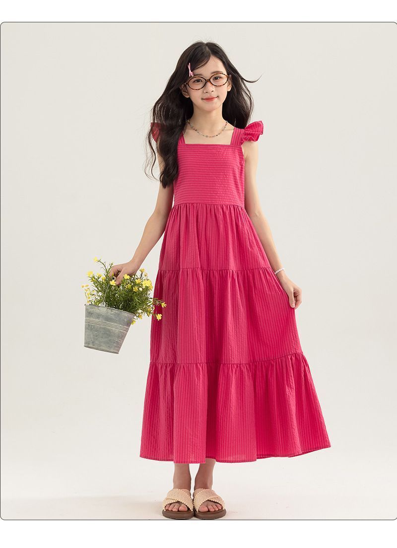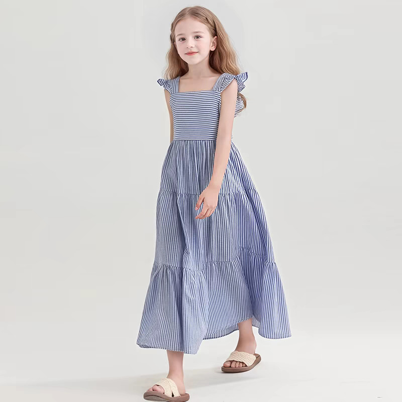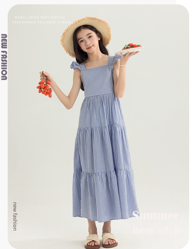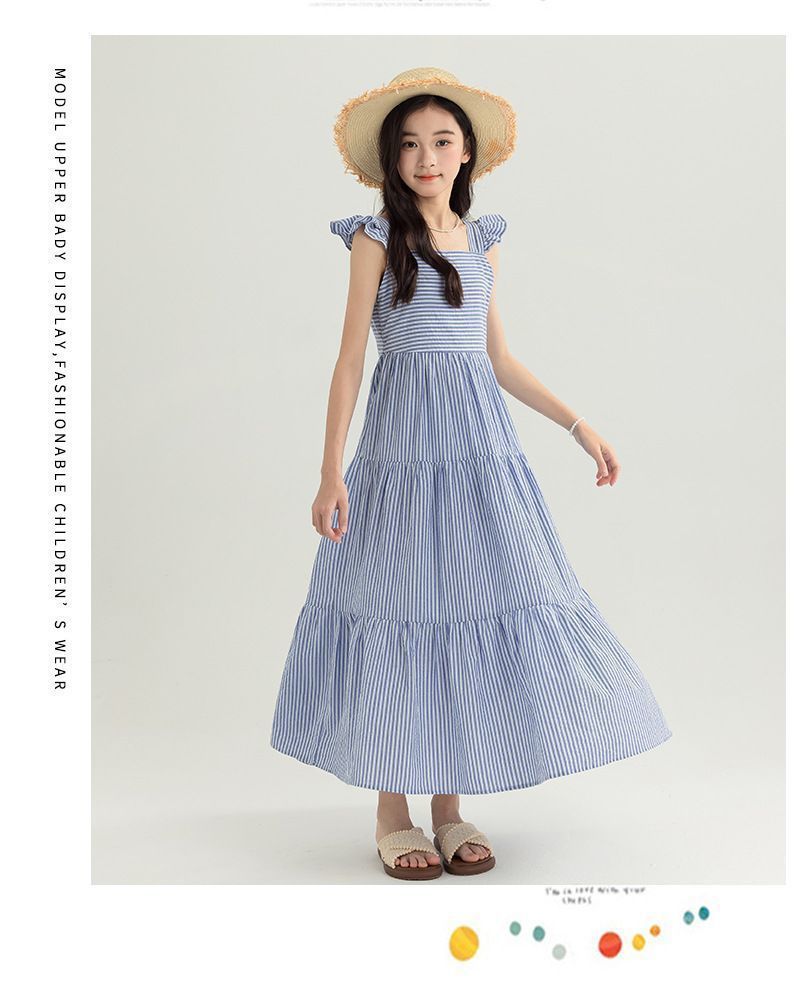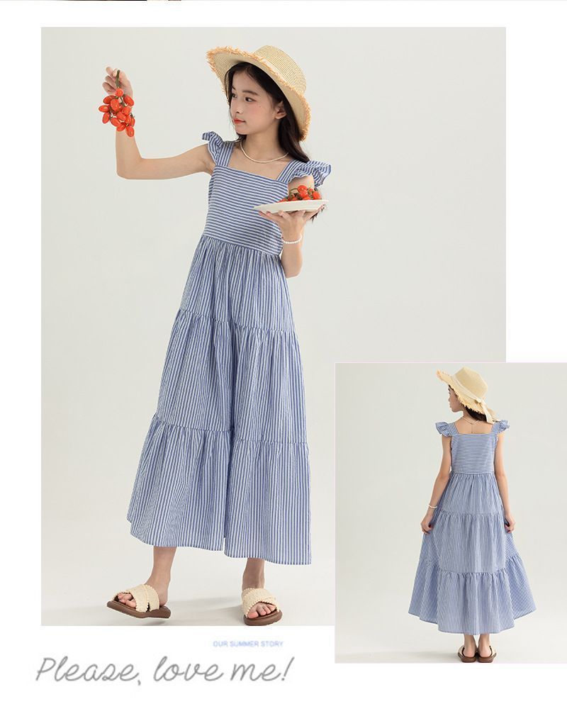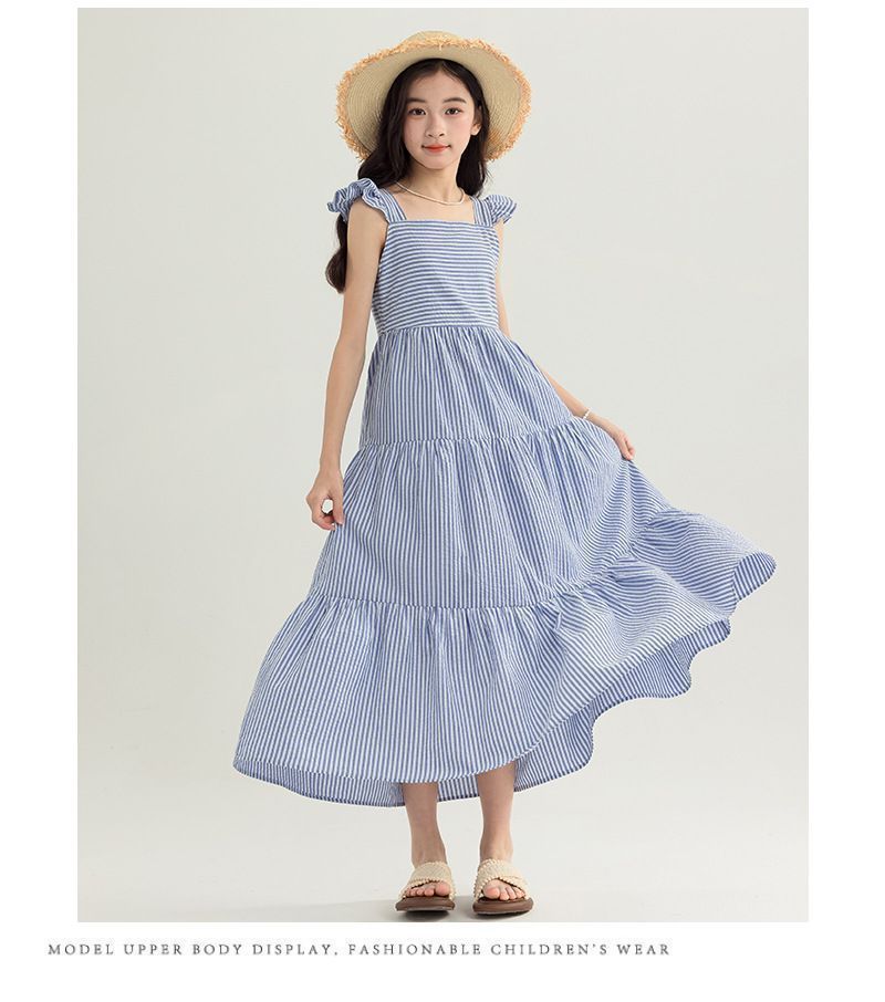 아동복 2025 여름 한국 스타일 여아 패션 스트라이프 드레스, 롱 스커트, 중대형 아동 조끼 드레스, 비치 스커트
