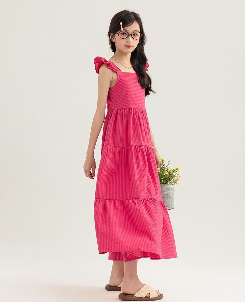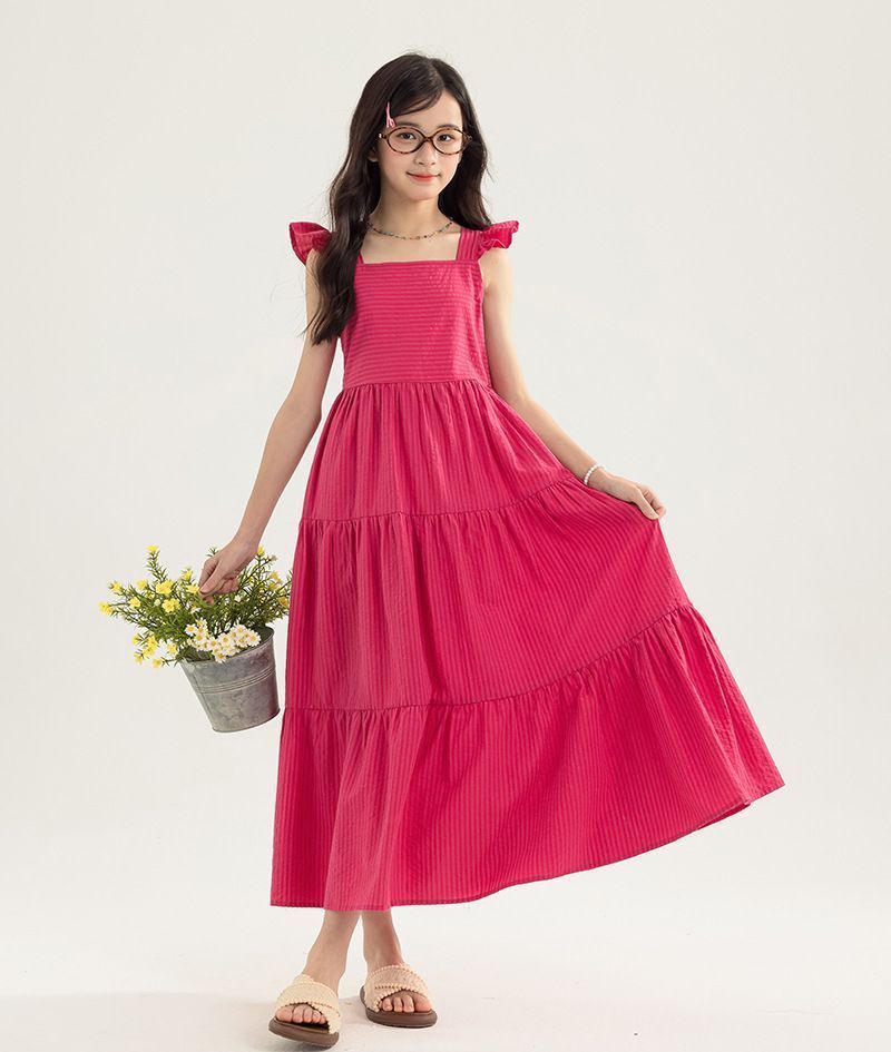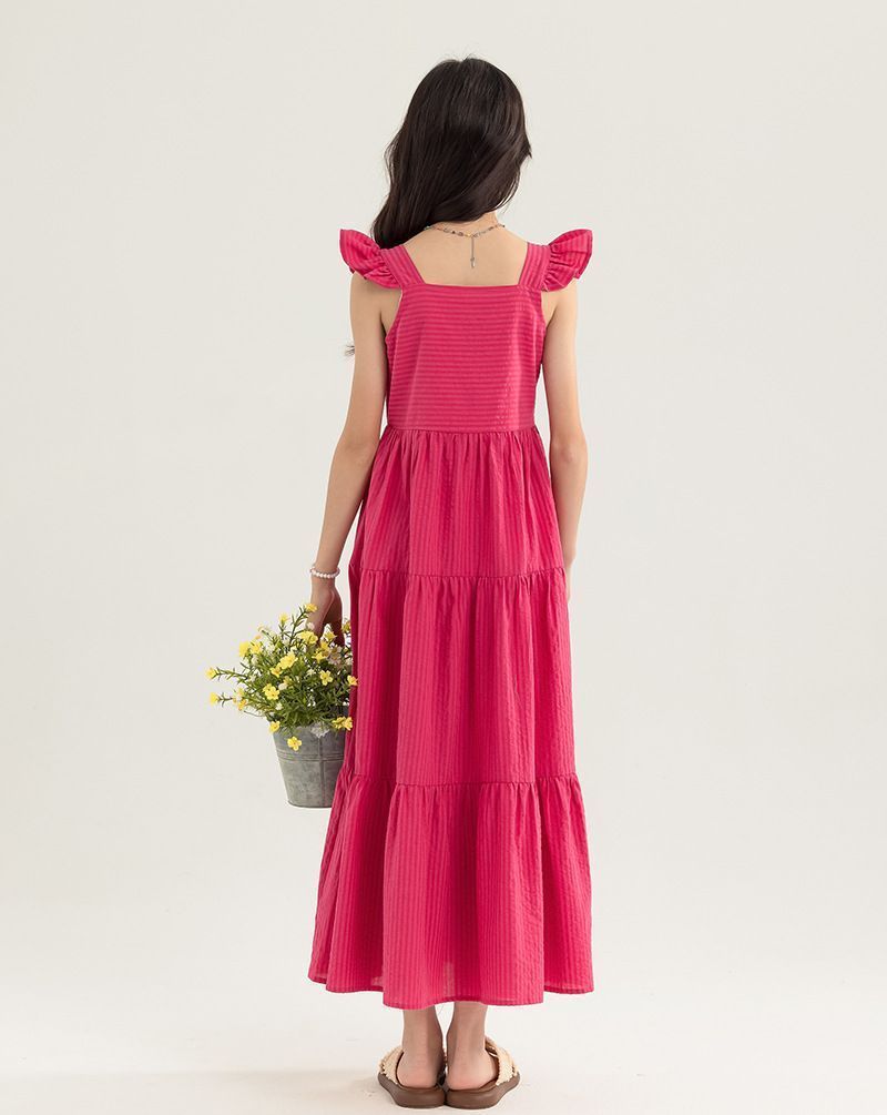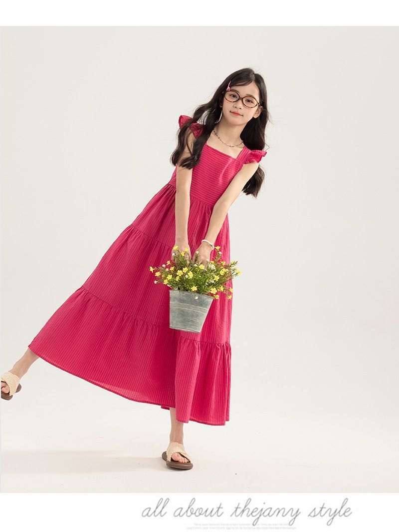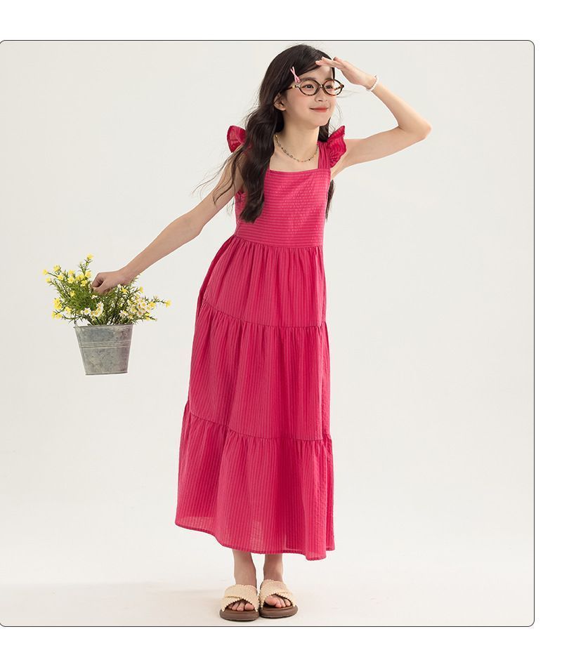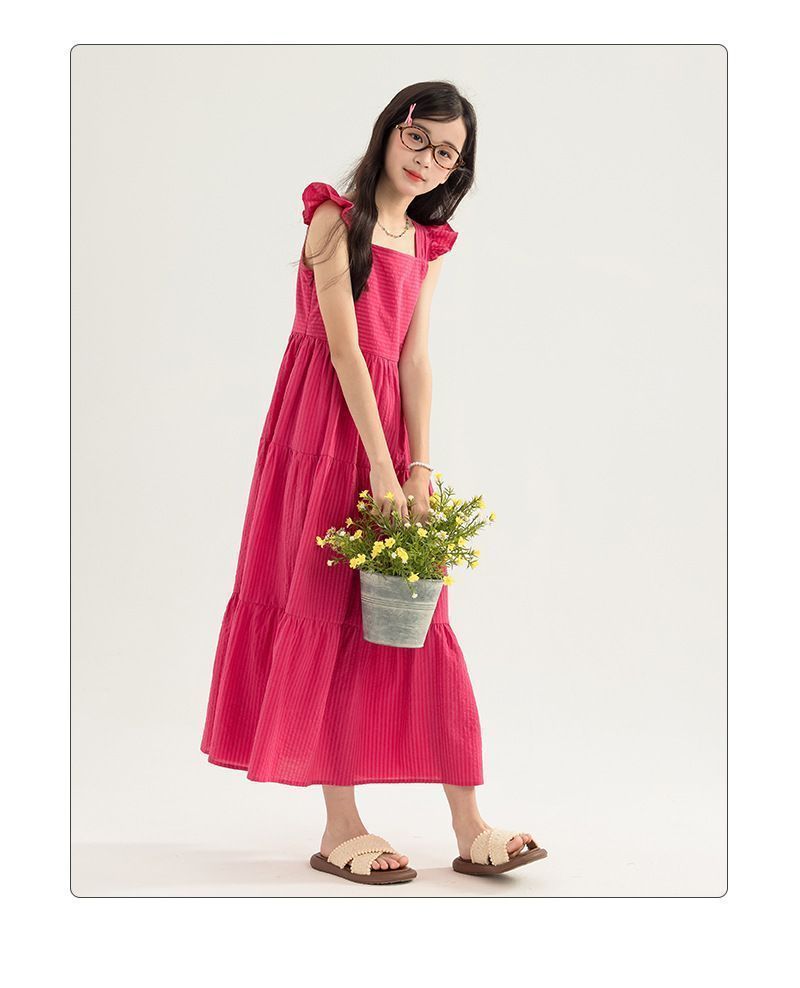 아동복 2025 여름 한국 스타일 여아 패션 스트라이프 드레스, 롱 스커트, 중대형 아동 조끼 드레스, 비치 스커트