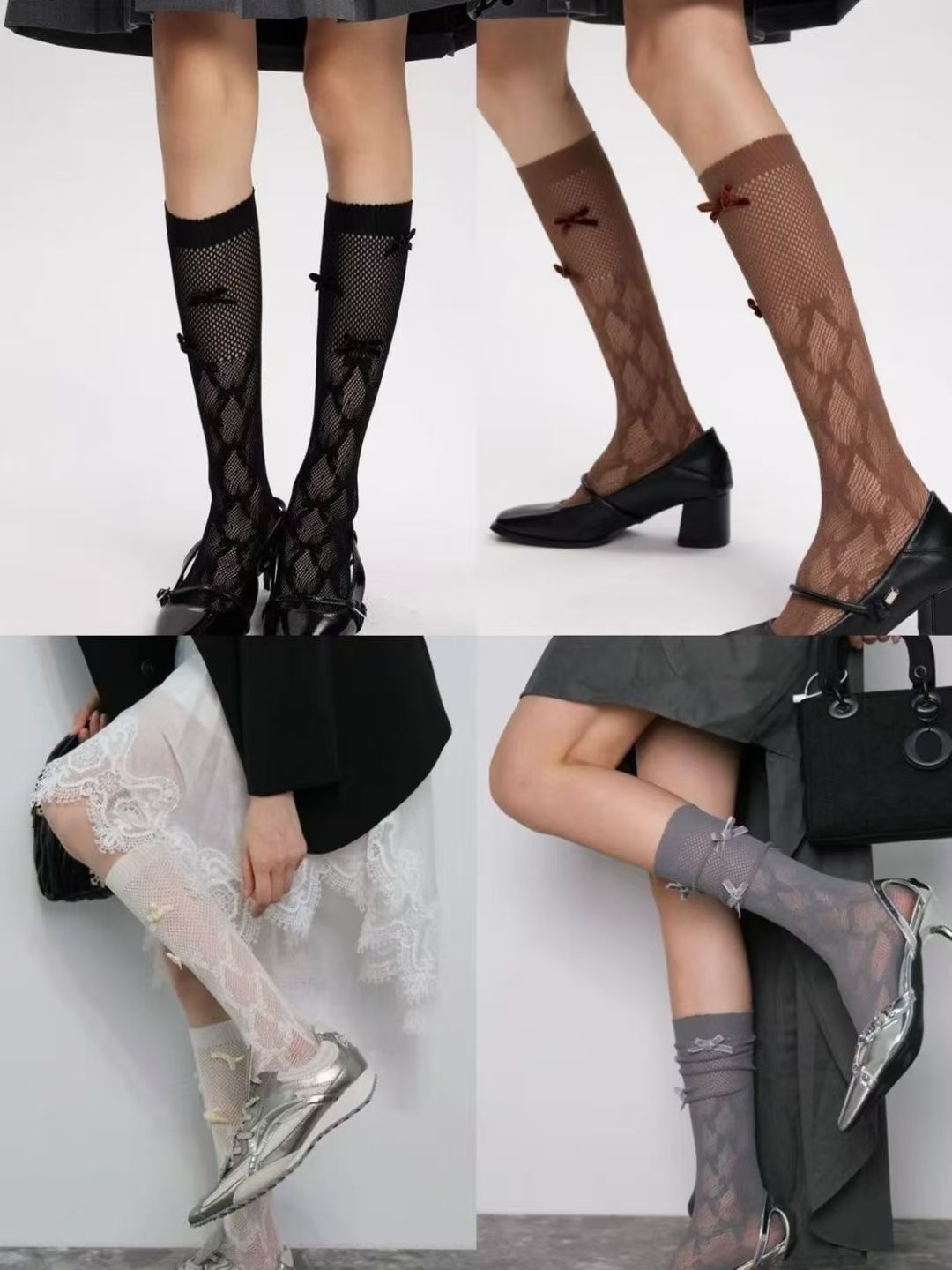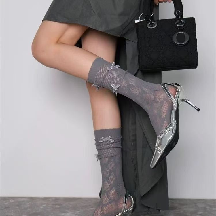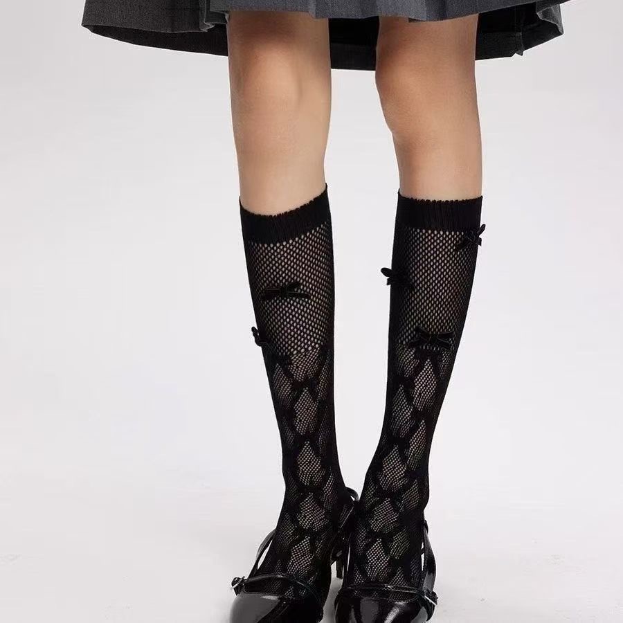 리본 메쉬 중공 종아리 양말, 달콤한 쉐이핑 메쉬 양말, 여성용 양말, 커피색 스타킹, 스택 양말, 재고 있음스토어 가기