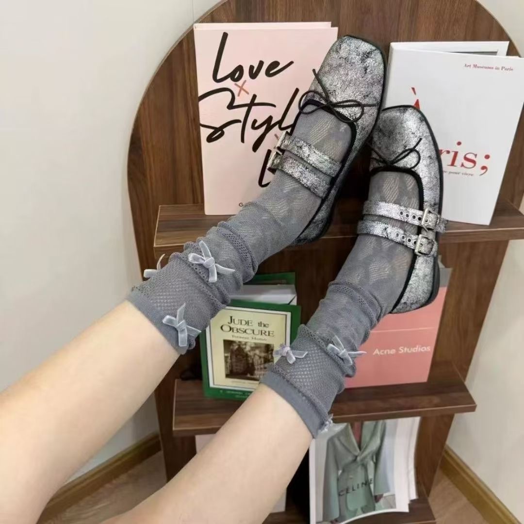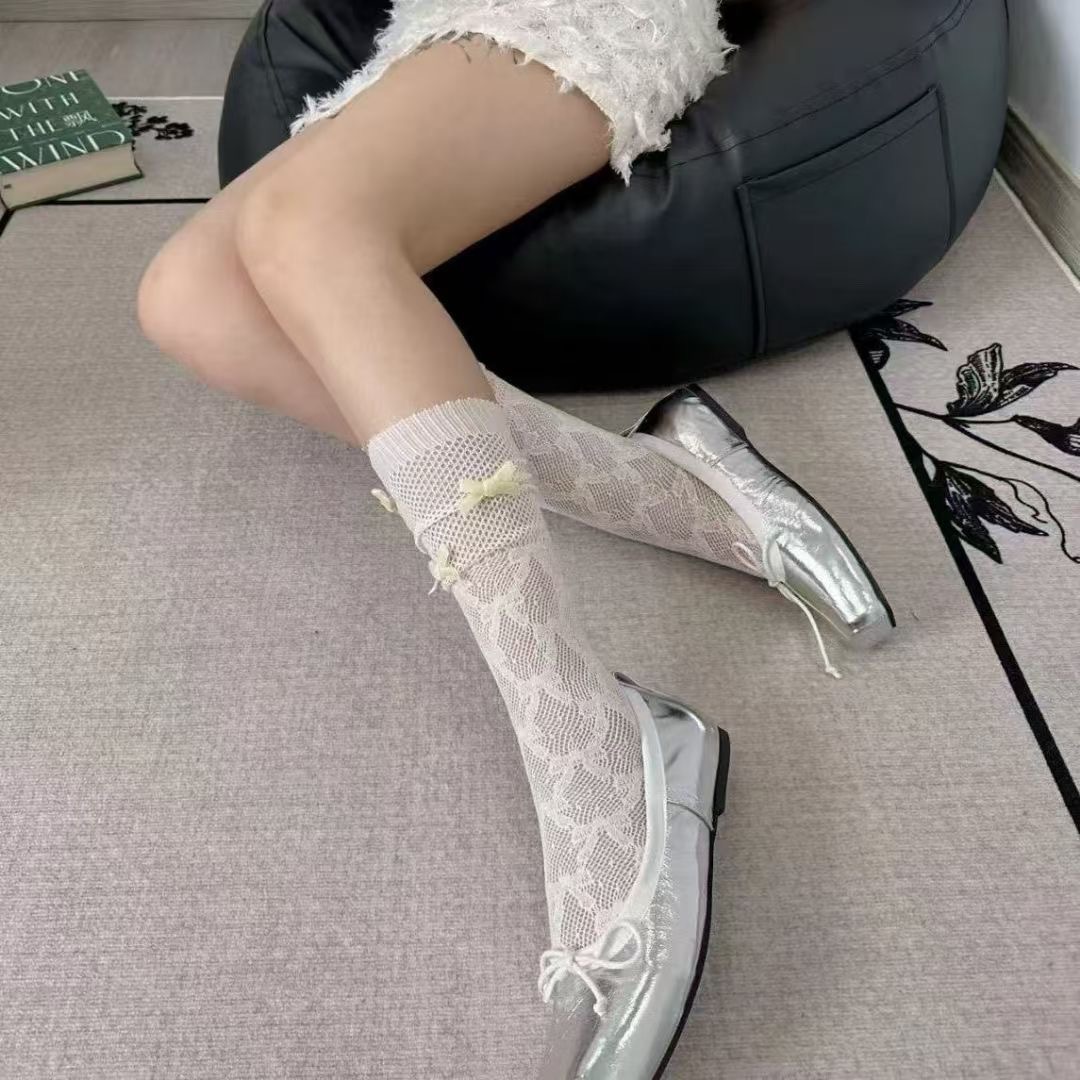 리본 메쉬 중공 종아리 양말, 달콤한 쉐이핑 메쉬 양말, 여성용 양말, 커피색 스타킹, 스택 양말, 재고 있음