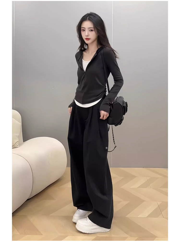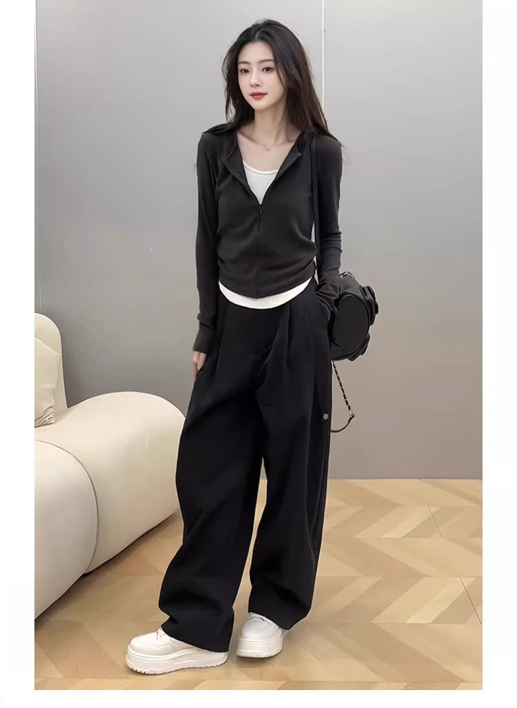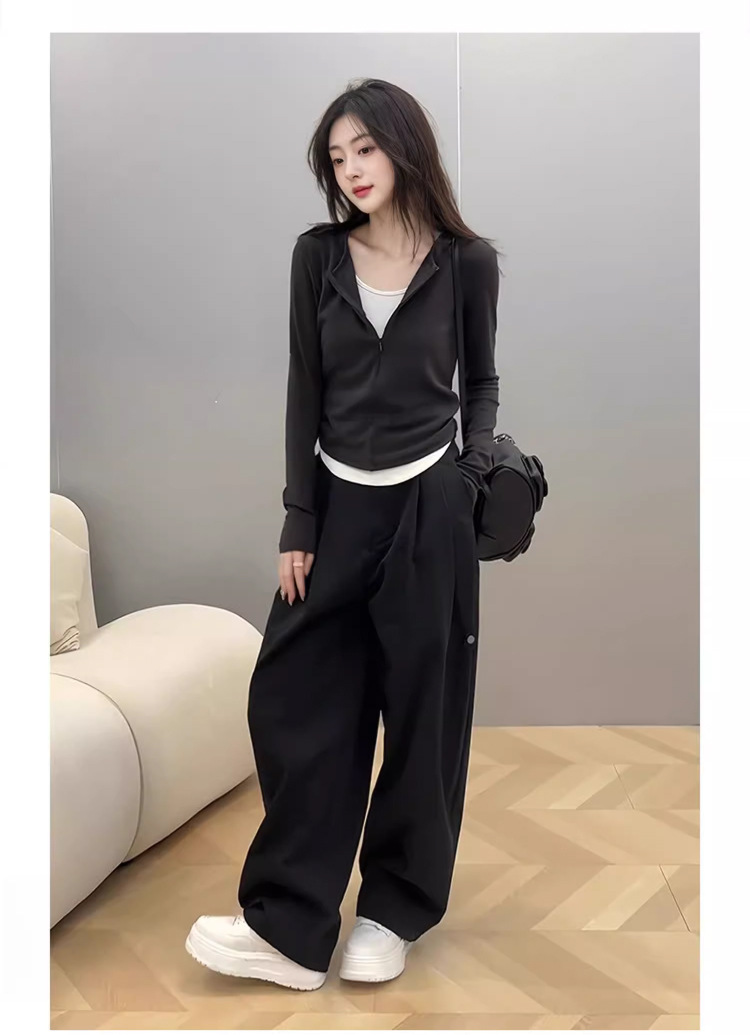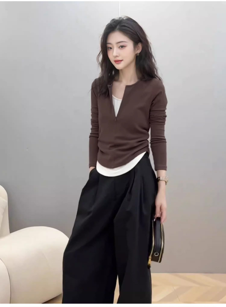 봄 가을 신상 한국 스타일 슬림핏 긴팔 디자인 티셔츠 여성용 지퍼 디자인 투피스 스타일 상의스토어 가기