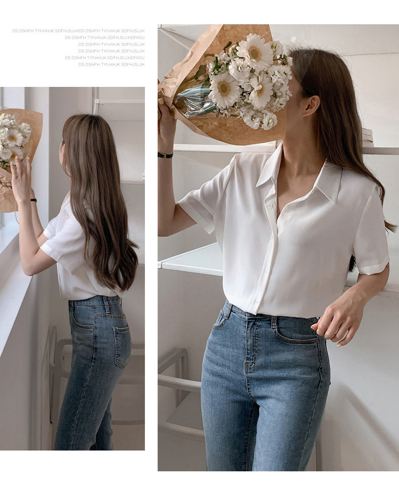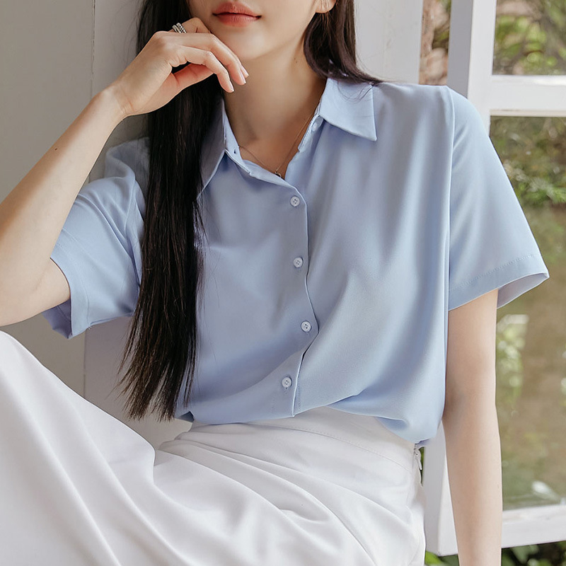 여성을위한 프랑스 복고풍 통근 패션 반팔 셔츠 여름 새로운 고급 작은 향기 스타일 심플 탑 인