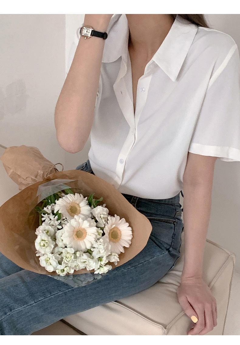 여성을위한 프랑스 복고풍 통근 패션 반팔 셔츠 여름 새로운 고급 작은 향기 스타일 심플 탑 인스토어 가기