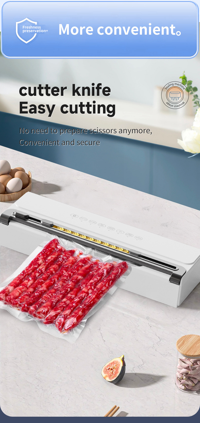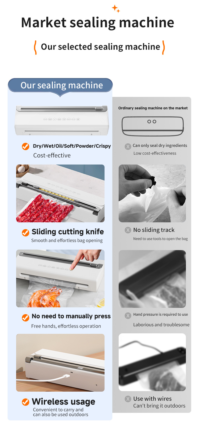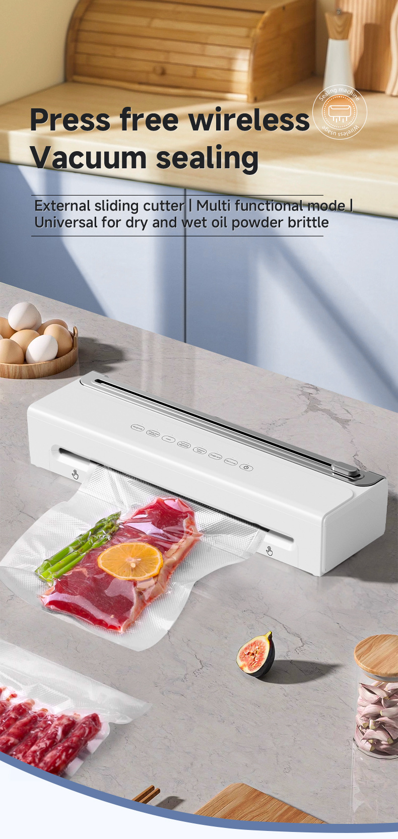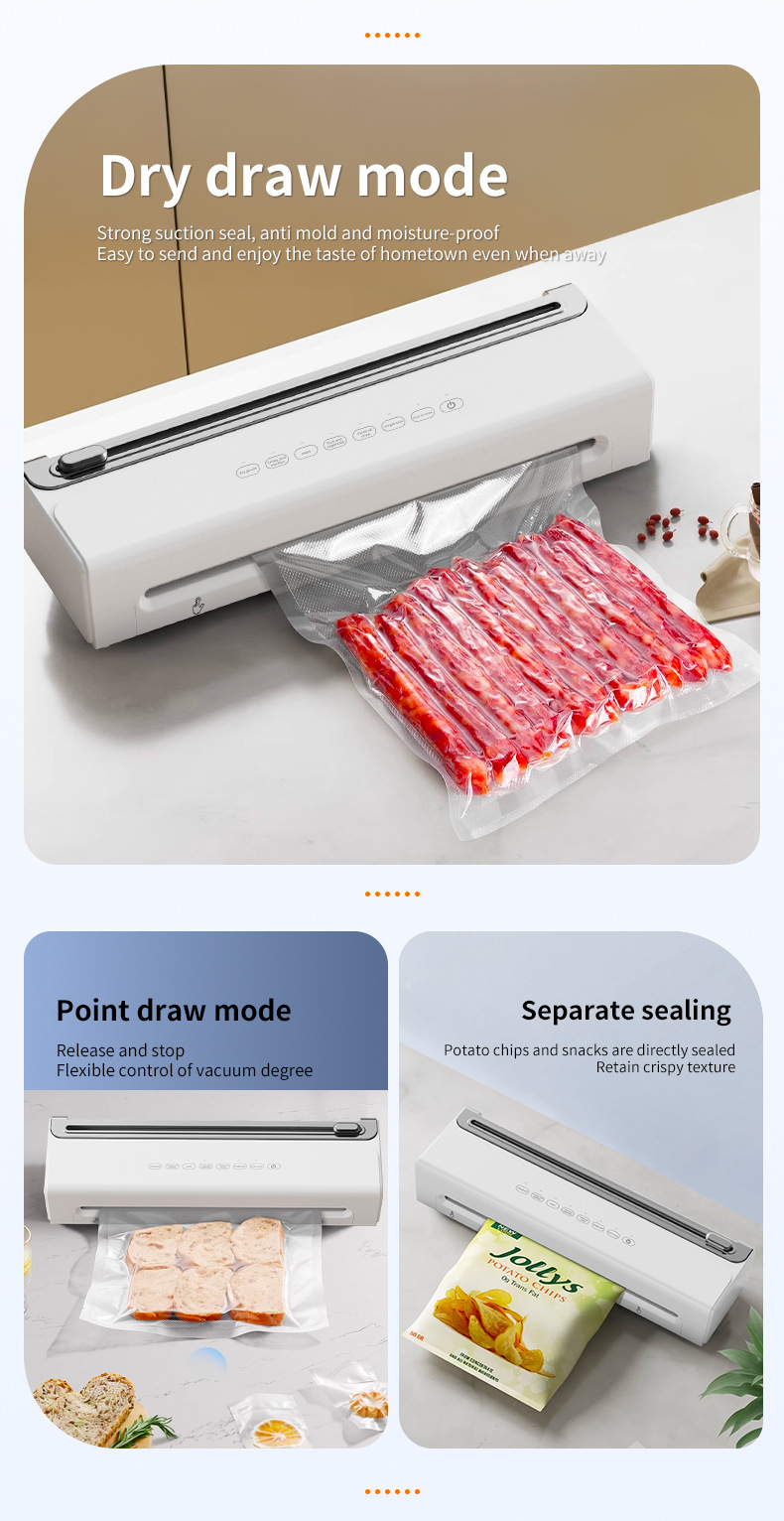 功能介绍:免按压真空封口 单封口 外抽等