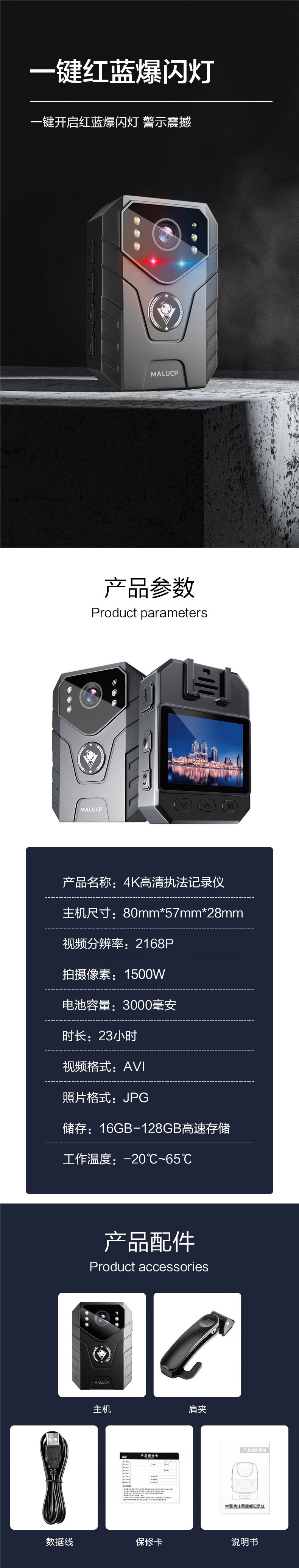 • [4K 울트라 클리어 WIFI] 법 집행 기록 장치 128G