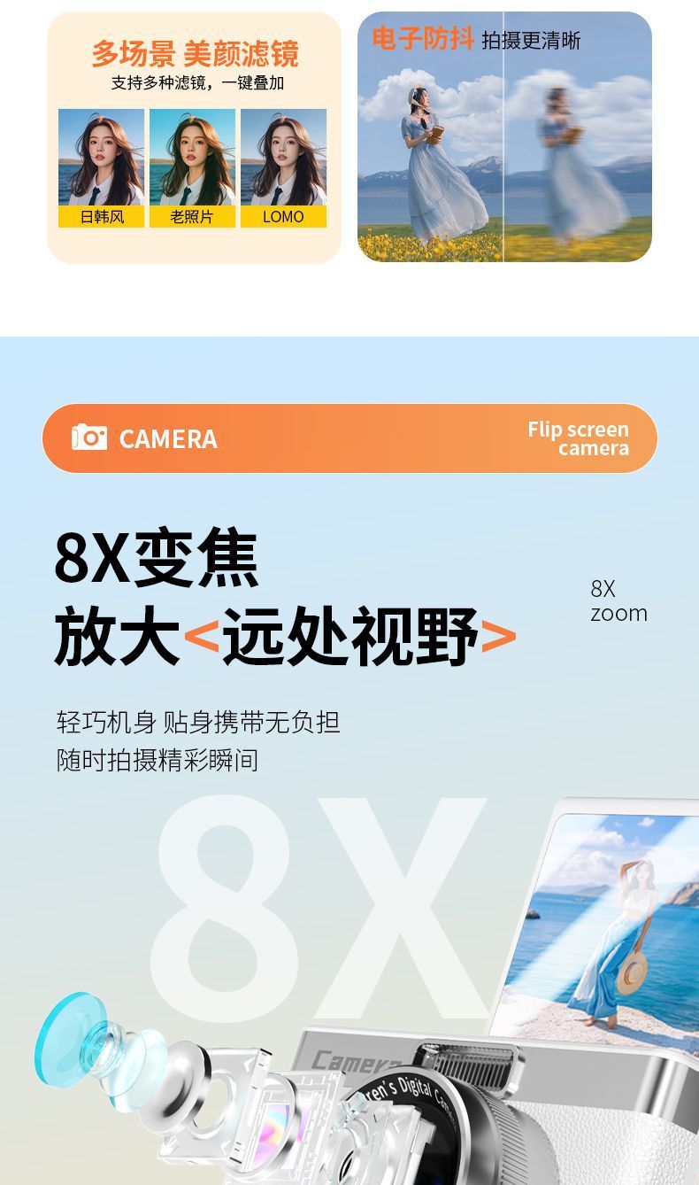9600W 고화질 픽셀 양면 플립 CCD 디지털 카메라 캠퍼스 학생 셀카 카드 기계 휴대용 보급형스토어 가기