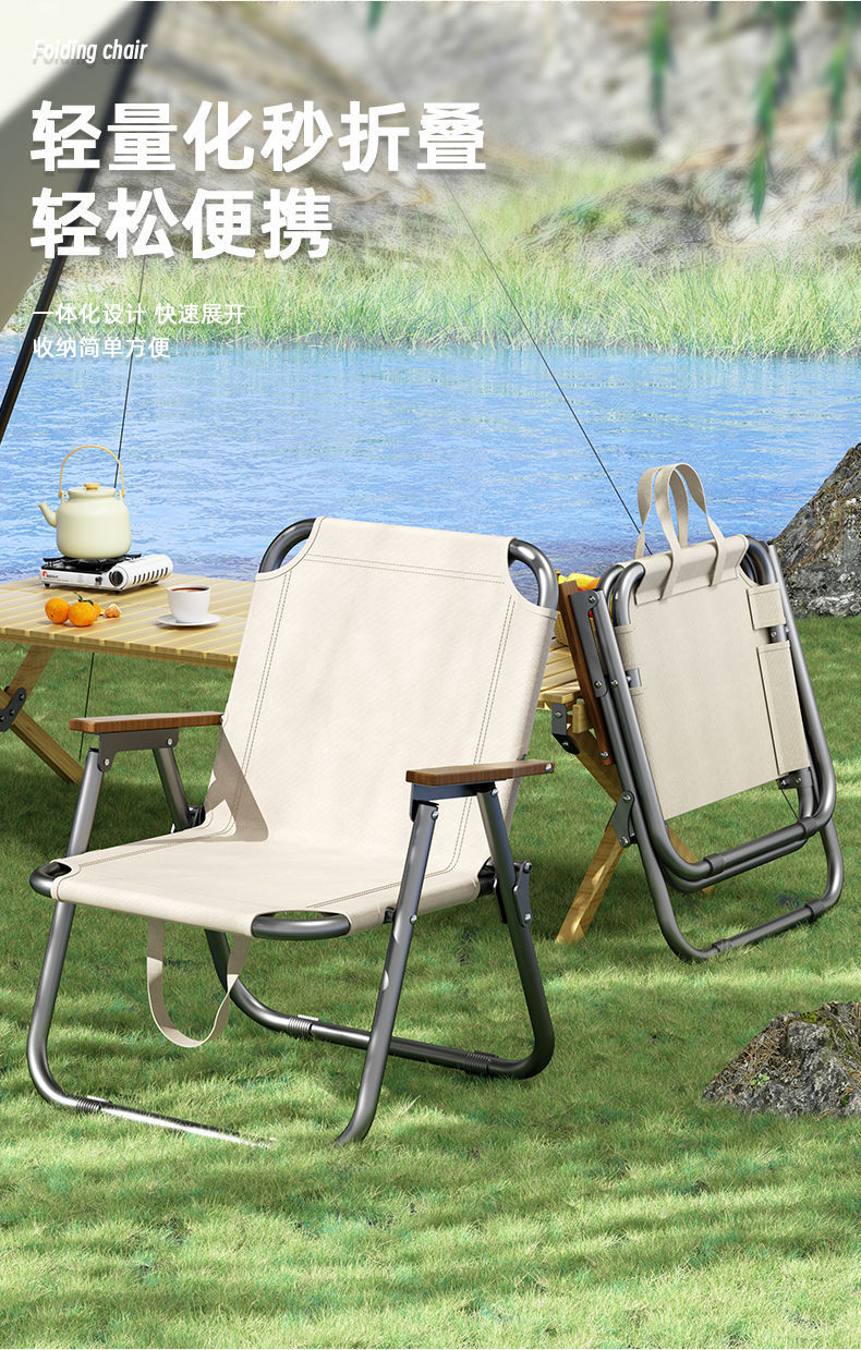 • [손잡이 + 휴대 용이] 25mm 오프화이트 너도밤나무 플래그십 체어 ✦