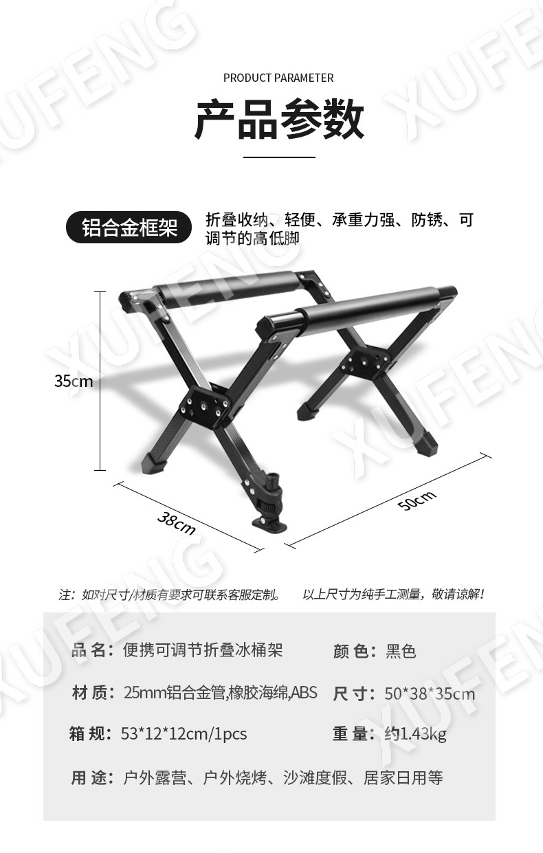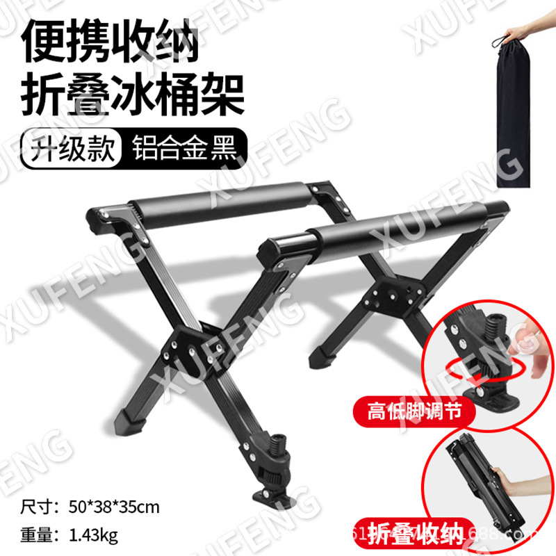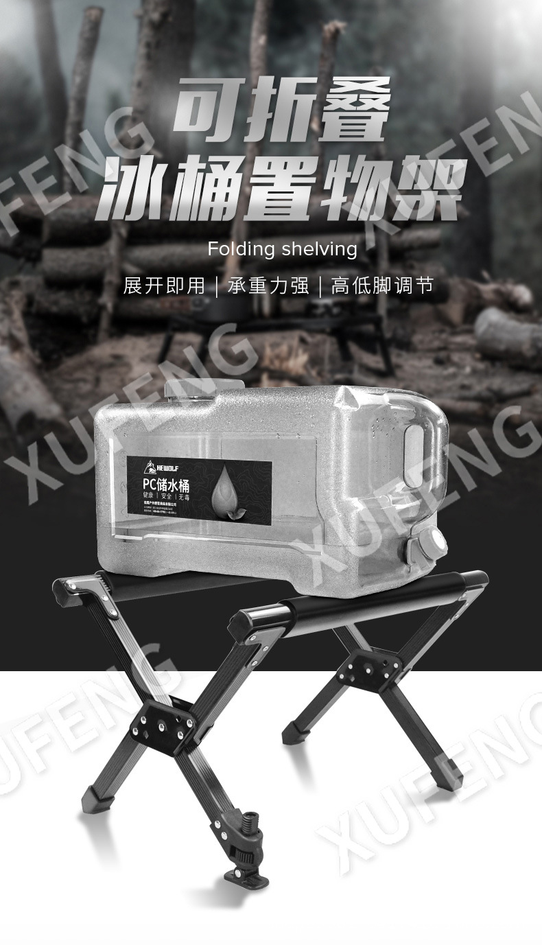 야외 캠핑 보관을위한 야외 다기능 알루미늄 합금 접이식 보관 브래킷 조정 가능한 얼음 양동이 랙