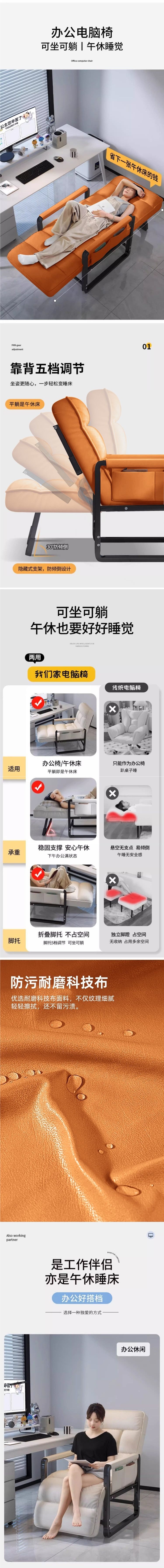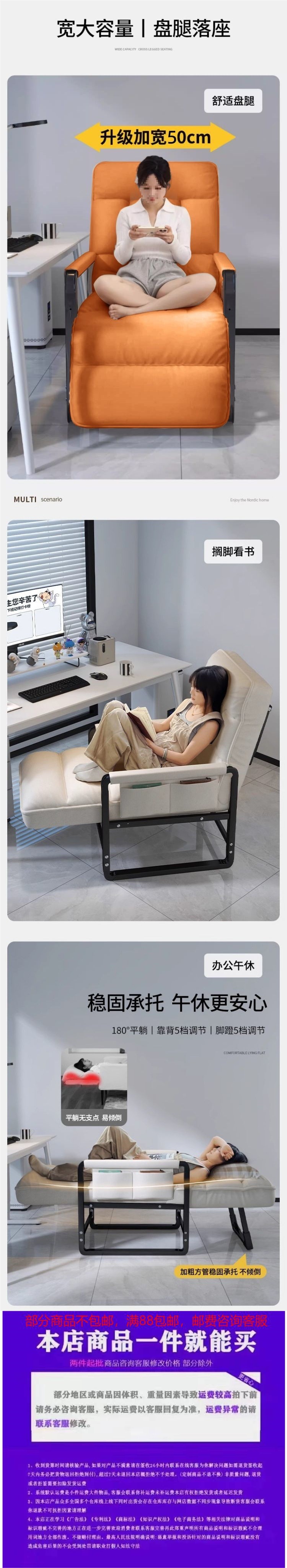 사무실 점심시간용 안락의자, 가정용 접이식 등받이 의자, 컴퓨터 의자, 앉거나 누울 수 있는 겸용 게으른 소파 의자