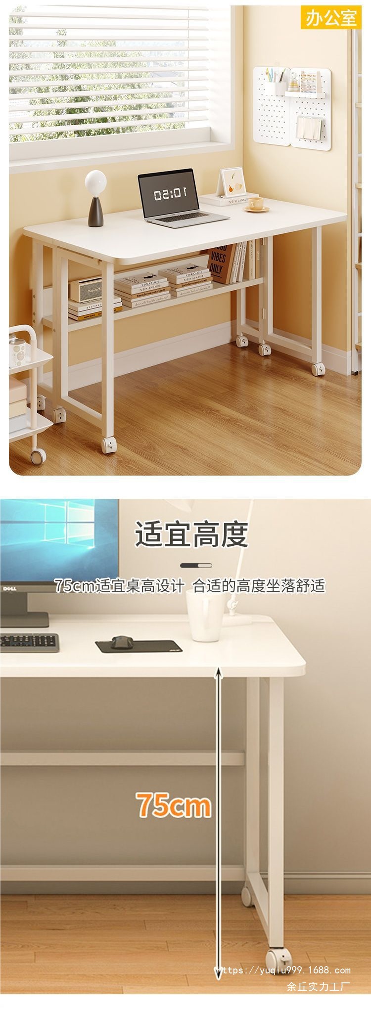 • [접이식 모바일 모델] 화이트 책장 롤러스케이트 테이블丨80*58