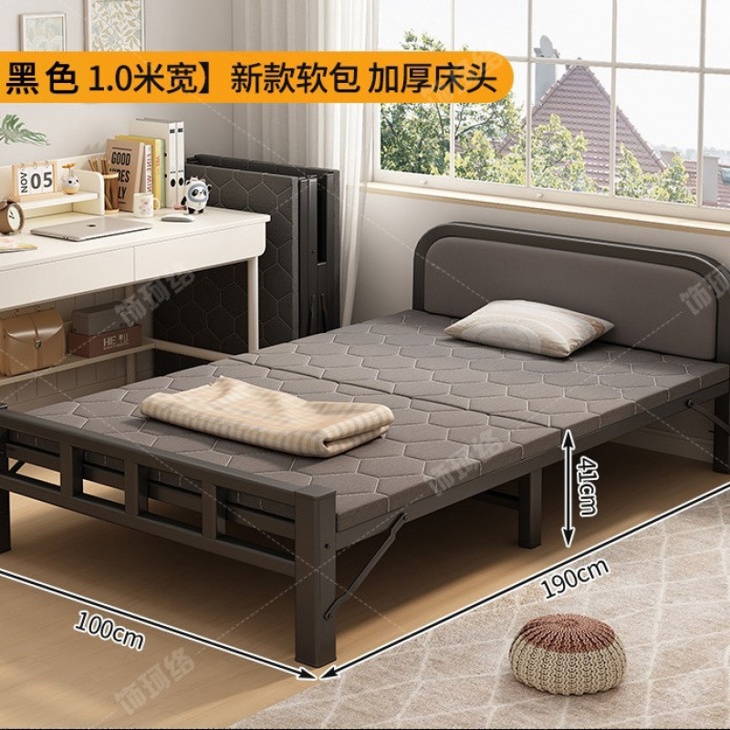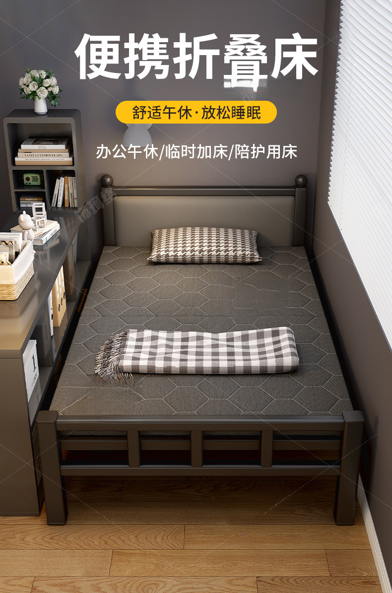 접이식 침대 가정용 싱글 침대 간단한 점심 시간 유아용 침대 휴대용 1.0m 성인 기숙사 추가 침대 더블 하드 보드 철 도금스토어 가기