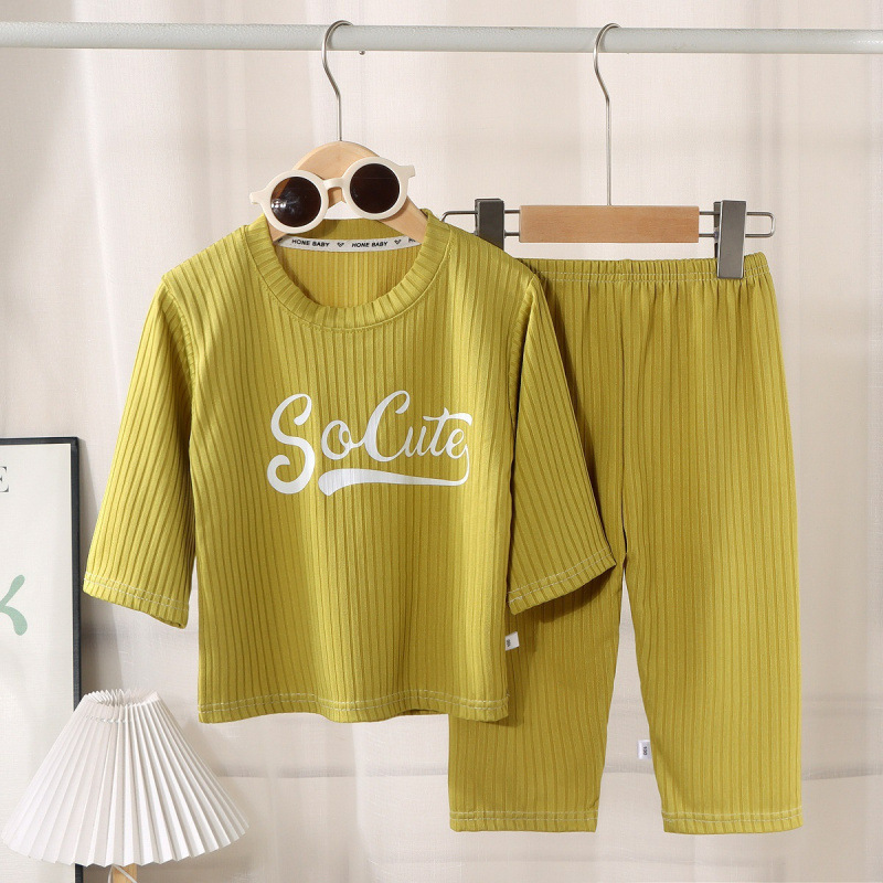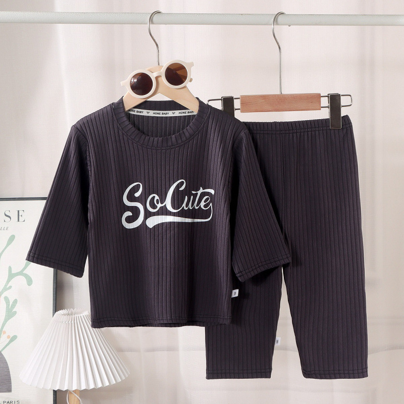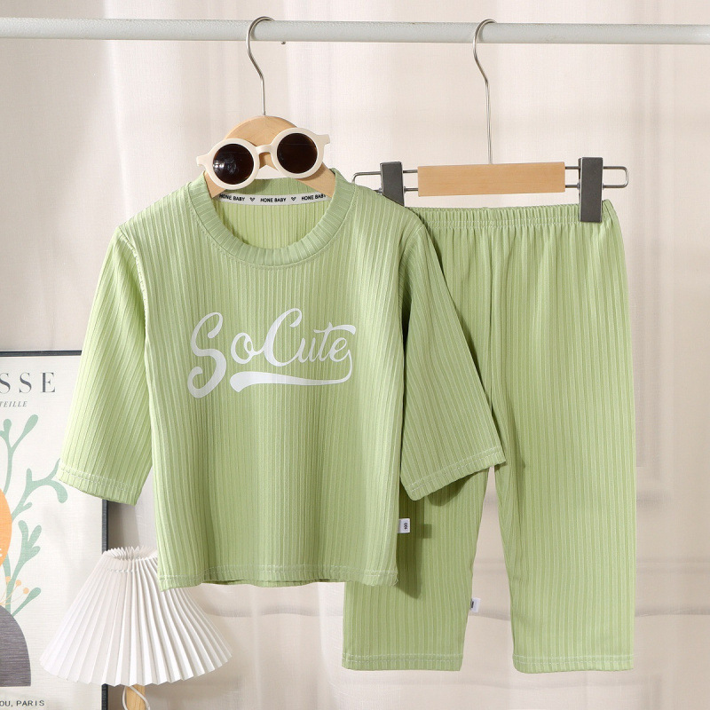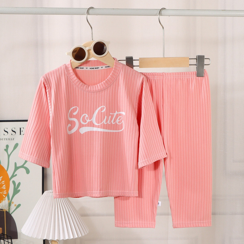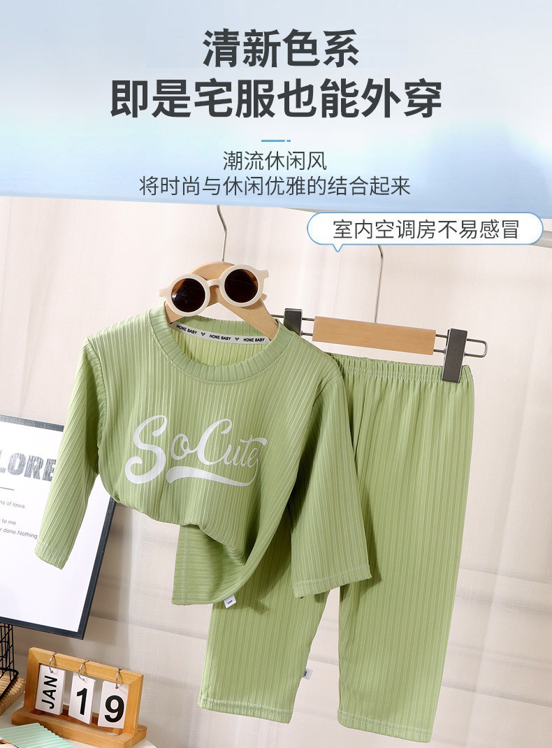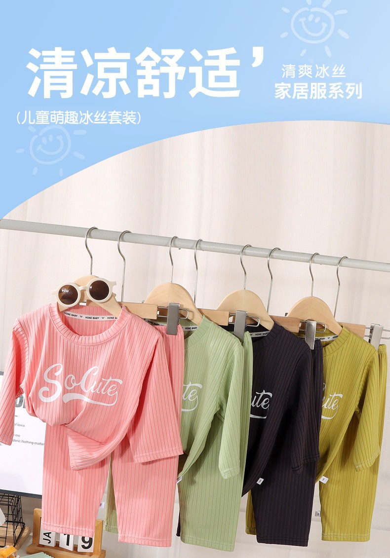 남아 및 여아용 아동용 에어컨 의류 세트, 아이스 실크 홈웨어, 한국식 중대형 아동용 얇은 실내 잠옷 2피스 세트