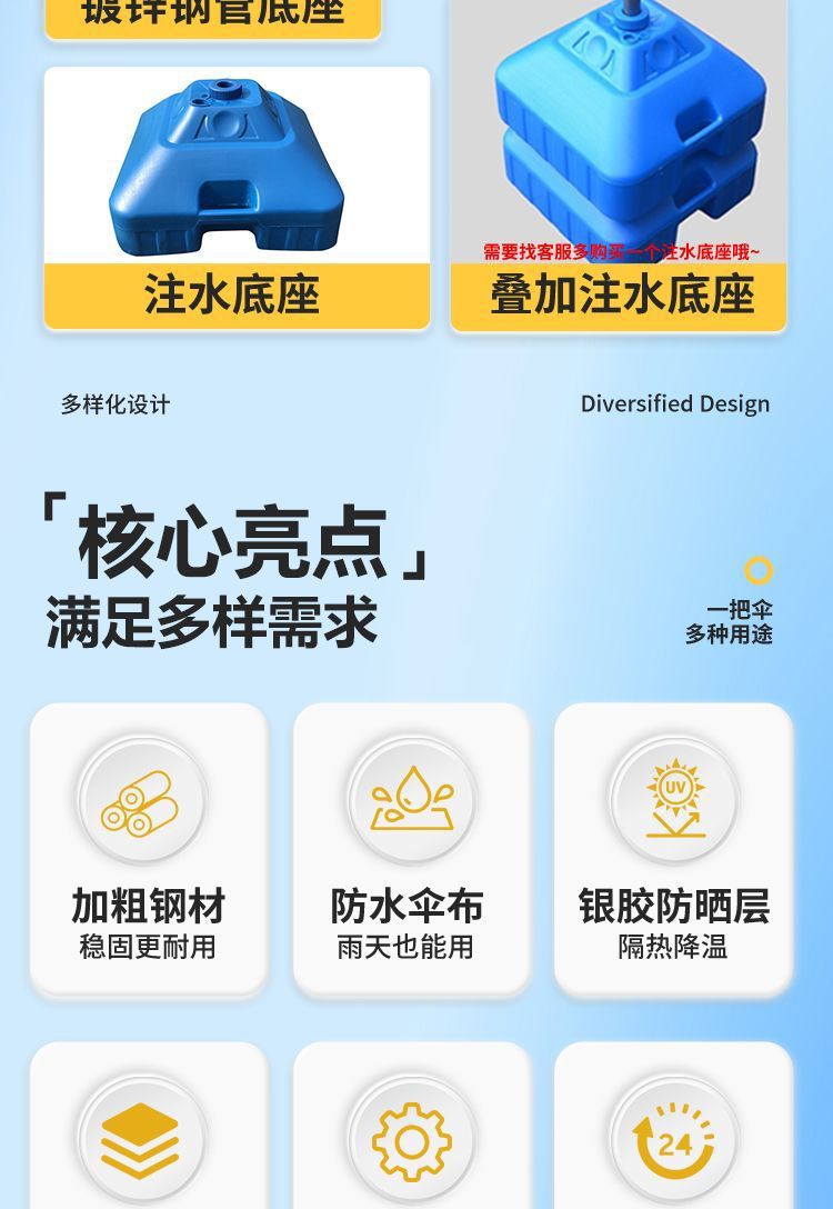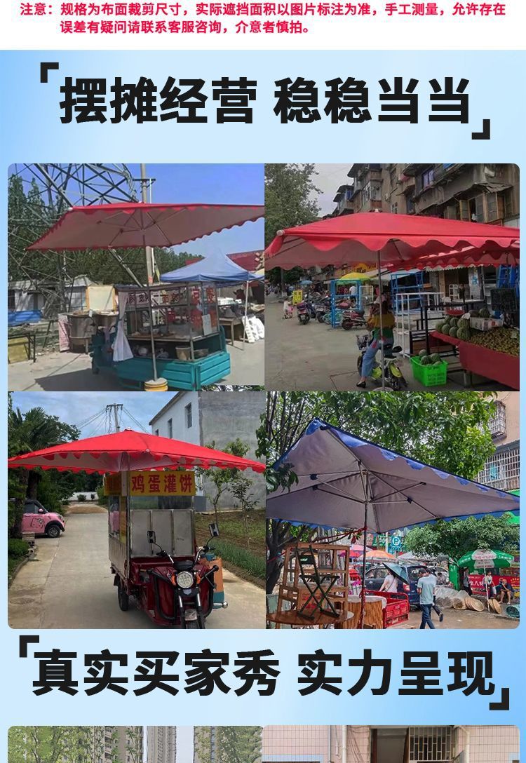 파라솔 야외 삼륜차 노점용 파라솔, 두꺼워진 직사각형 접이식 대형 우산, 노점용 천막스토어 가기