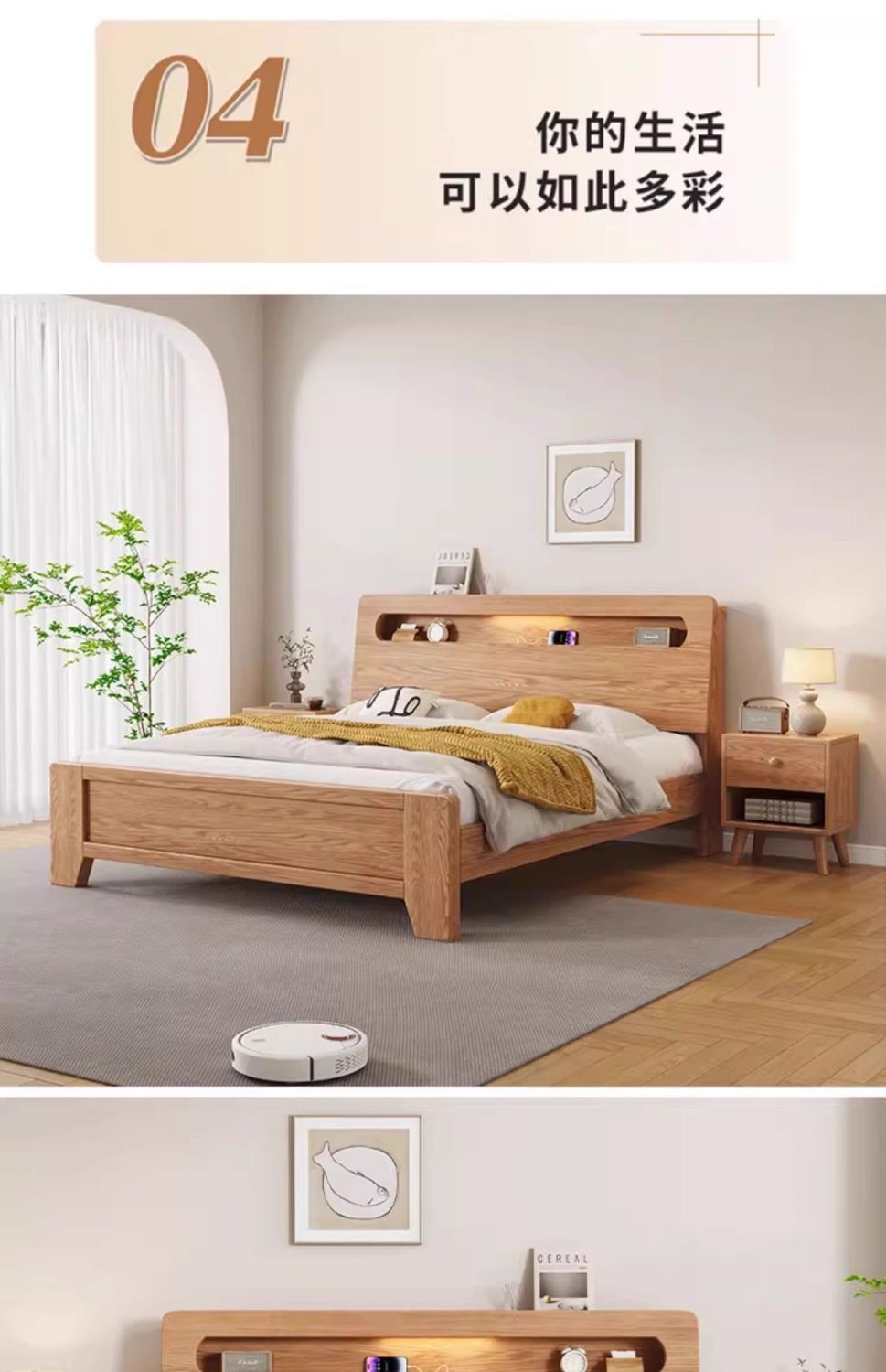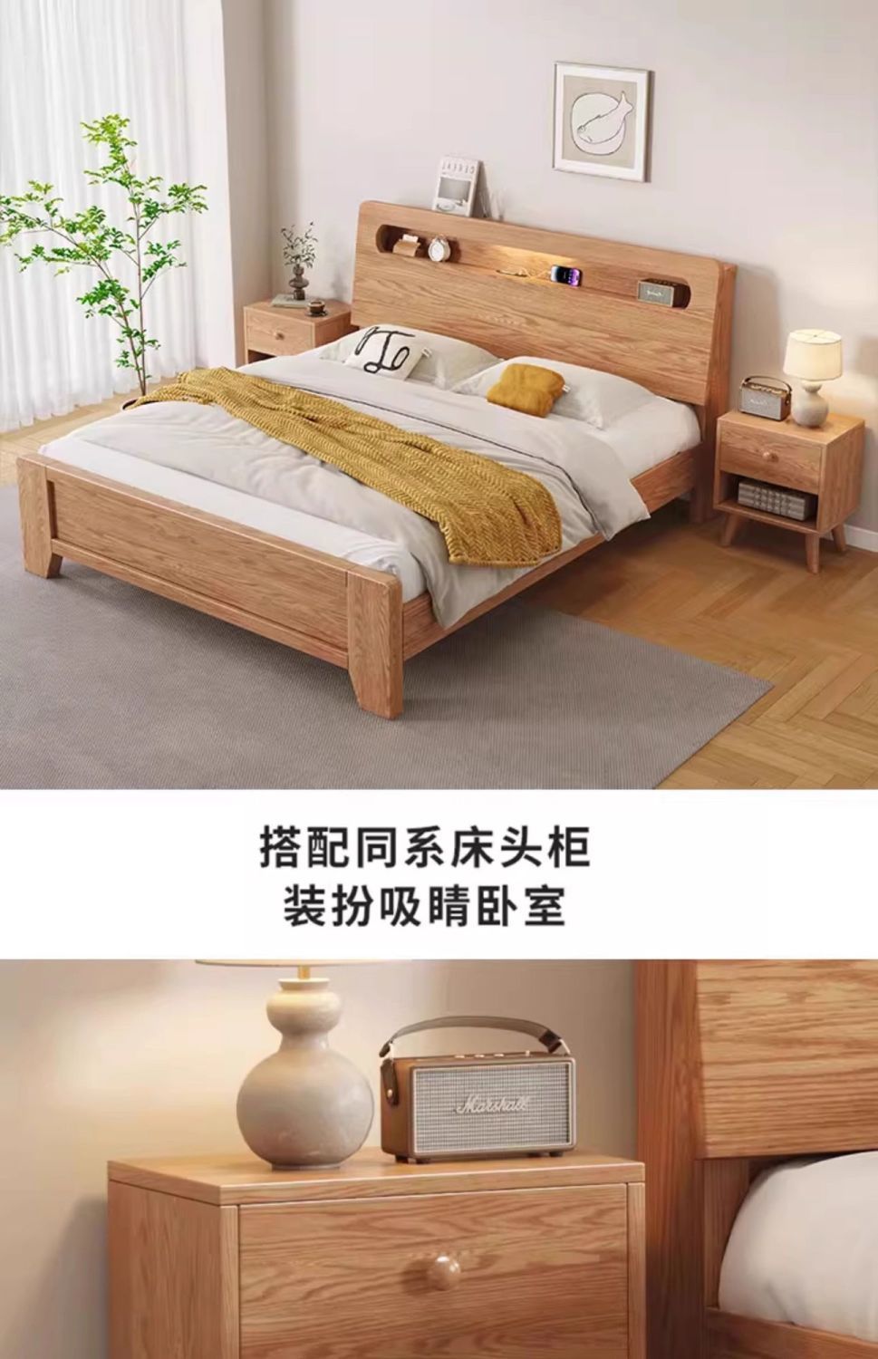 • 오크 침대 협탁*2 [포함]
