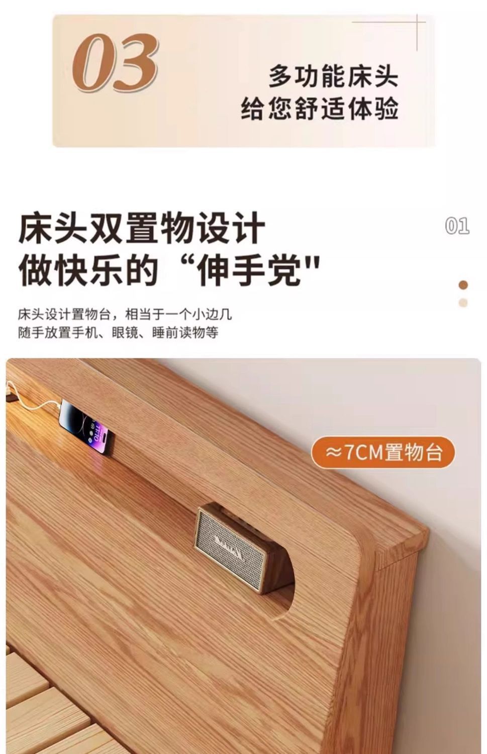 • 오크 침대 5cm 코코넛 야자 매트리스 침대 옆 테이블*1 [설치 포함]