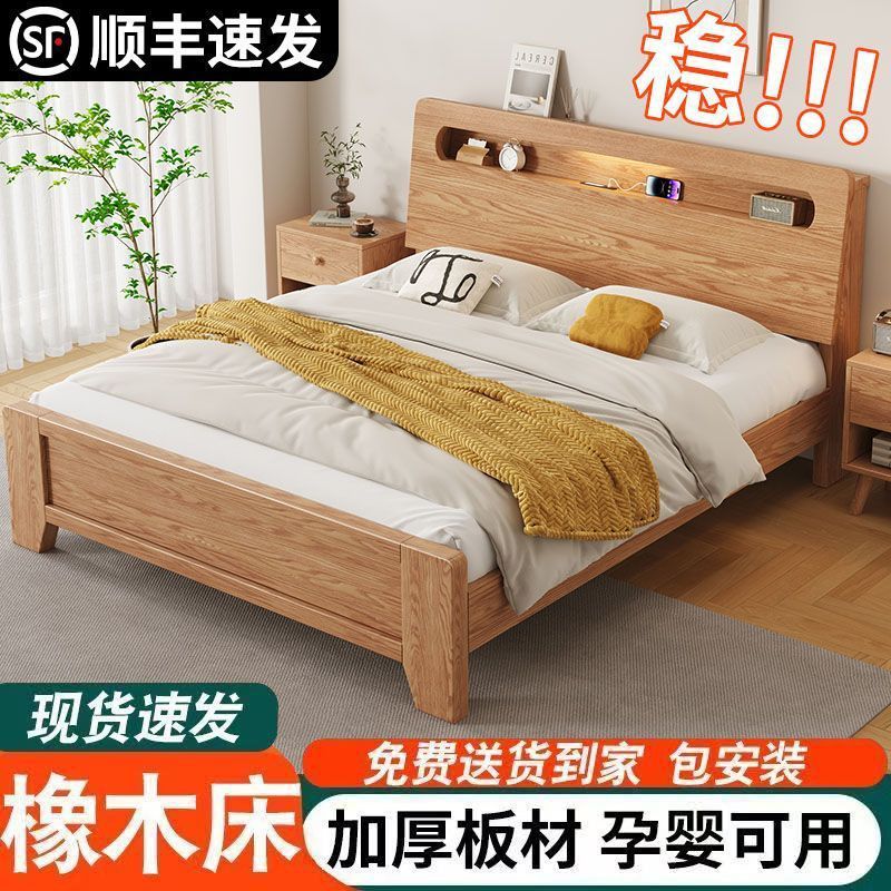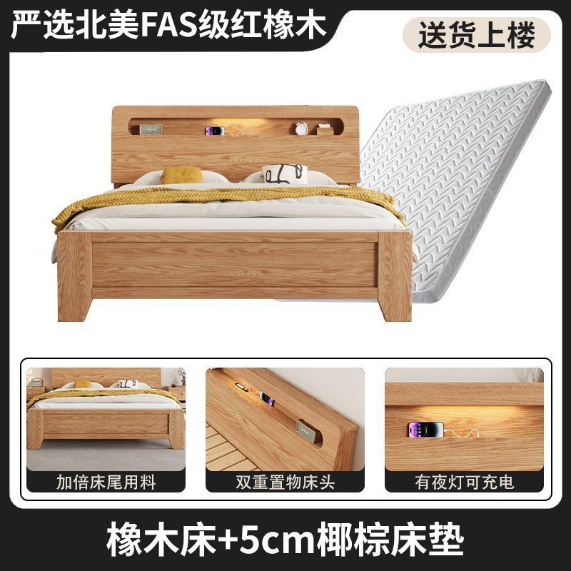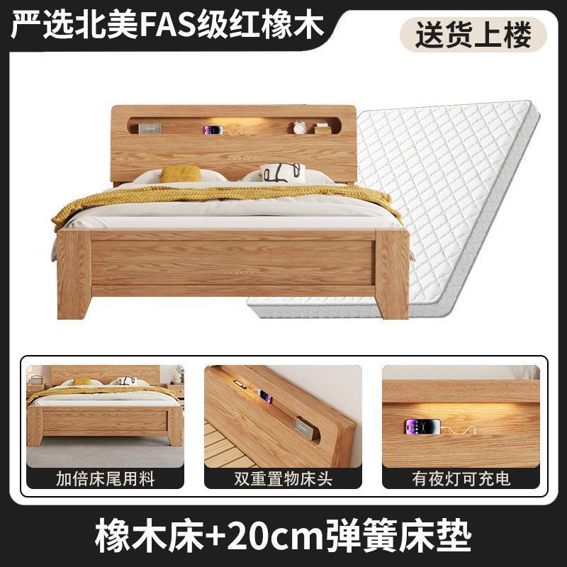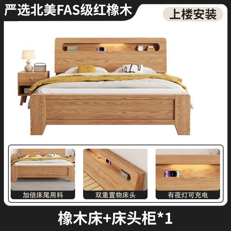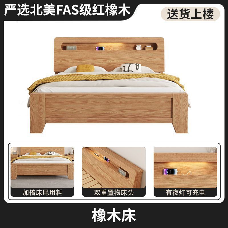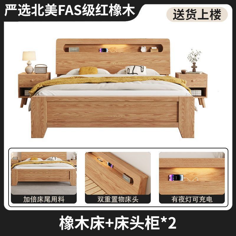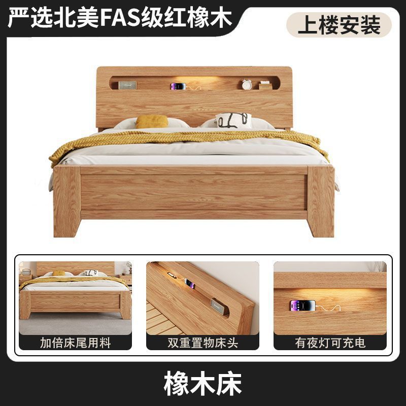 모든 원목 침대, 모던하고 심플한 마스터 침실 더블 침대 1.8m 홈 오크 침대 임대실 1.2m 싱글 침대 프레임스토어 가기