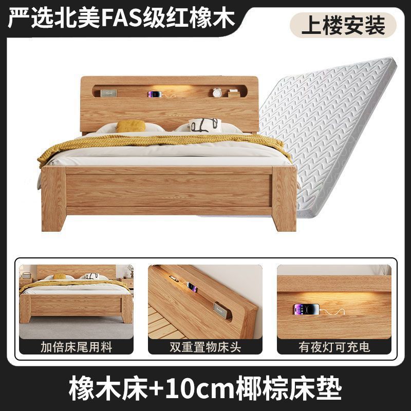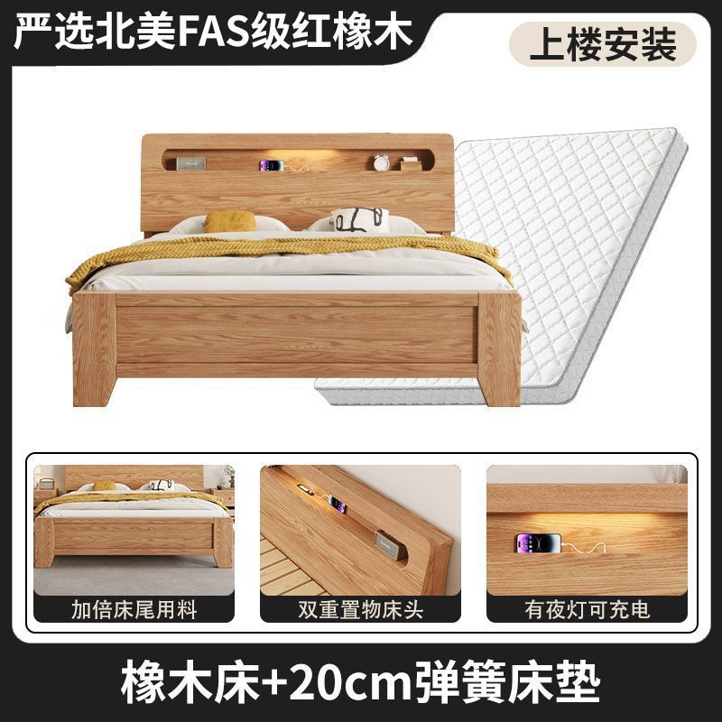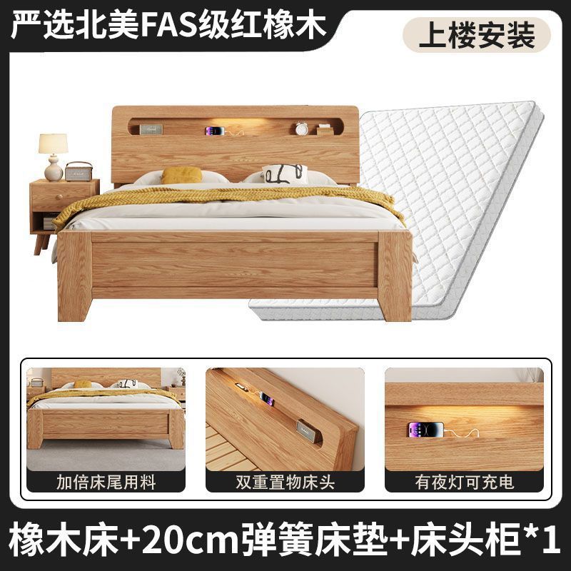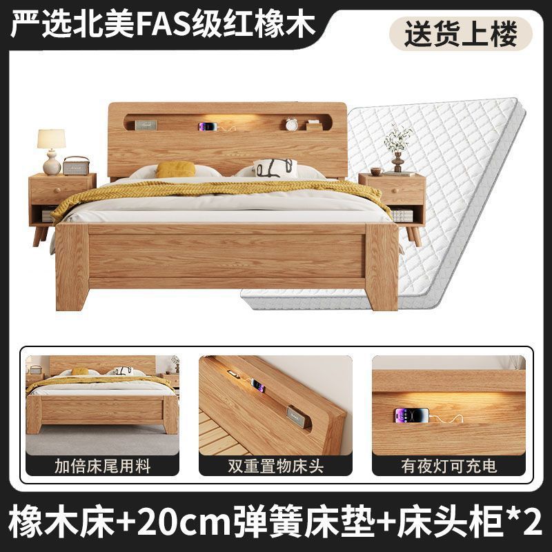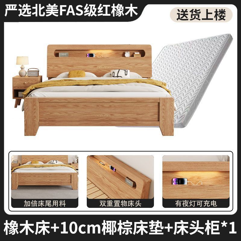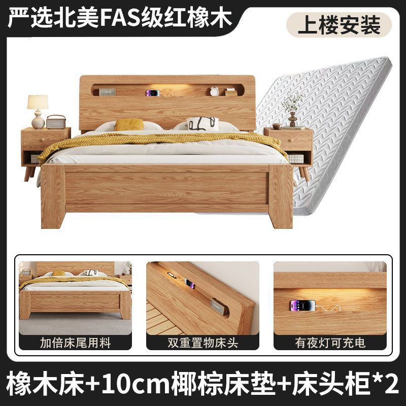 모든 원목 침대, 모던하고 심플한 마스터 침실 더블 침대 1.8m 홈 오크 침대 임대실 1.2m 싱글 침대 프레임스토어 가기