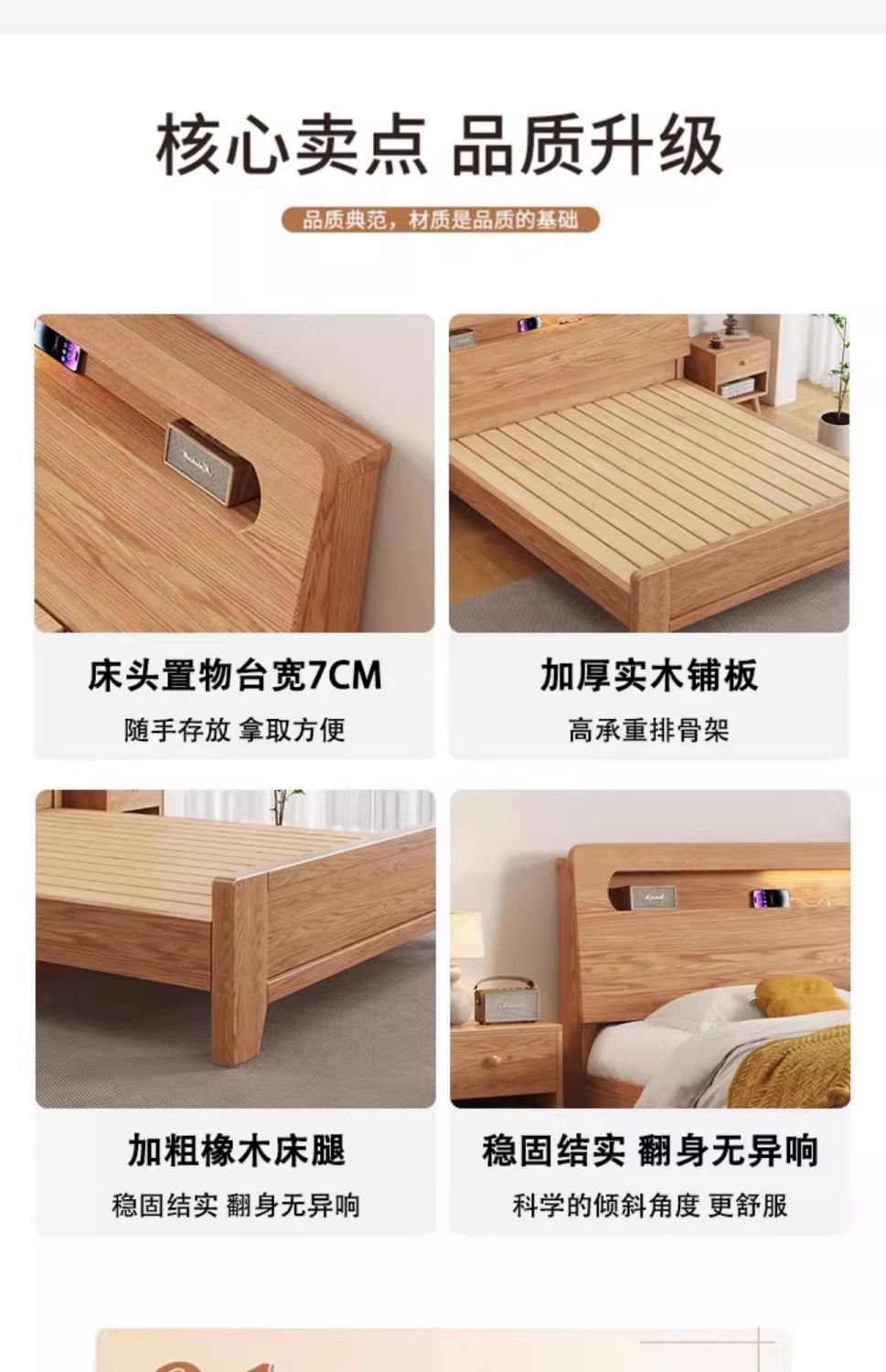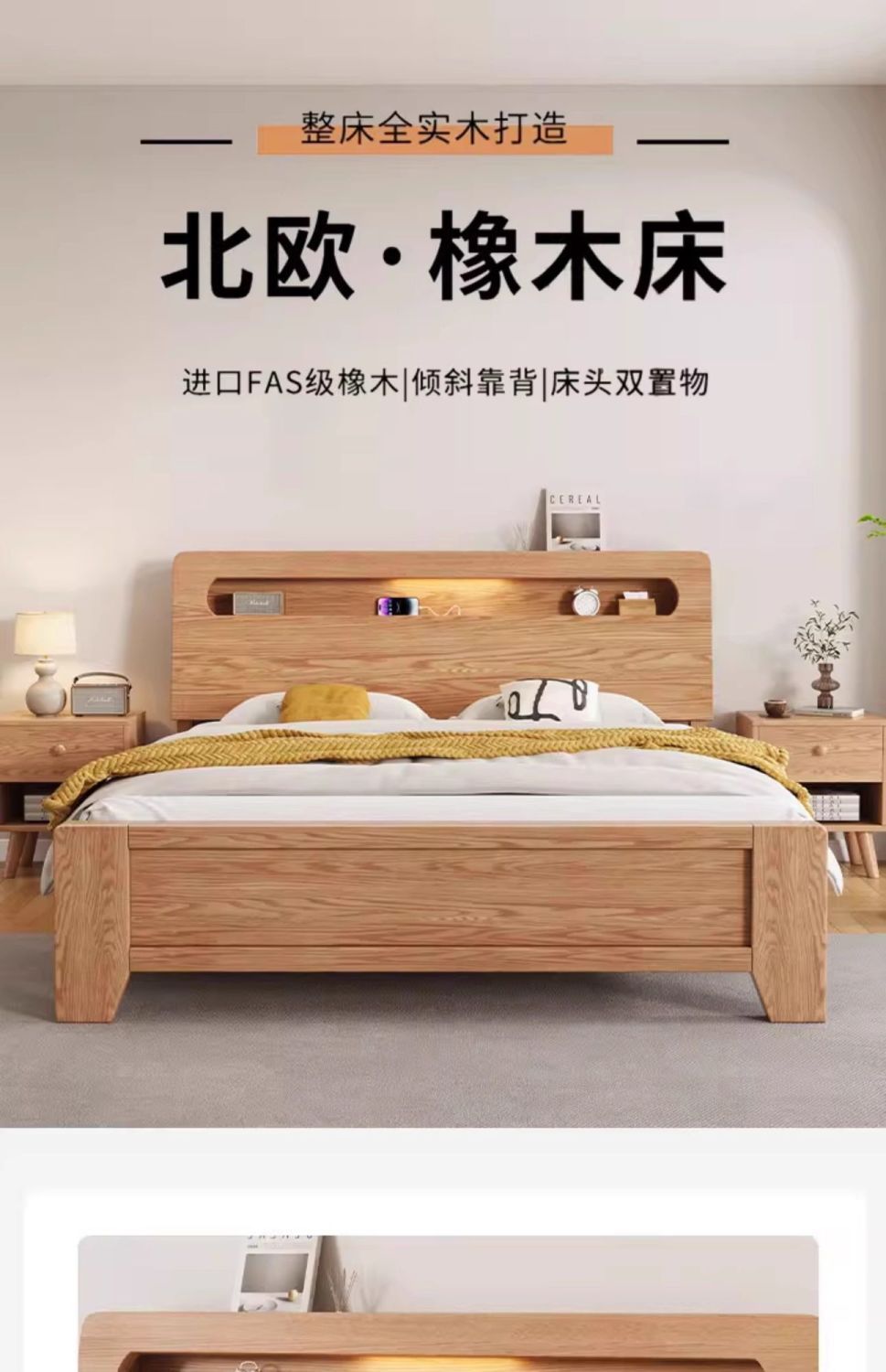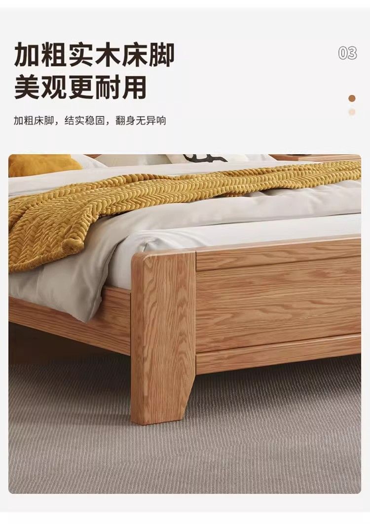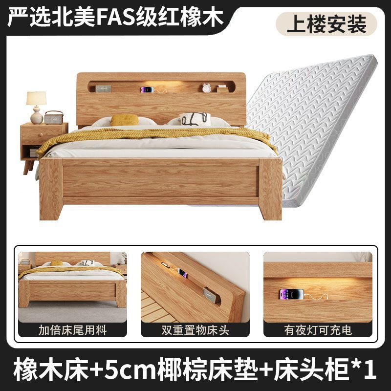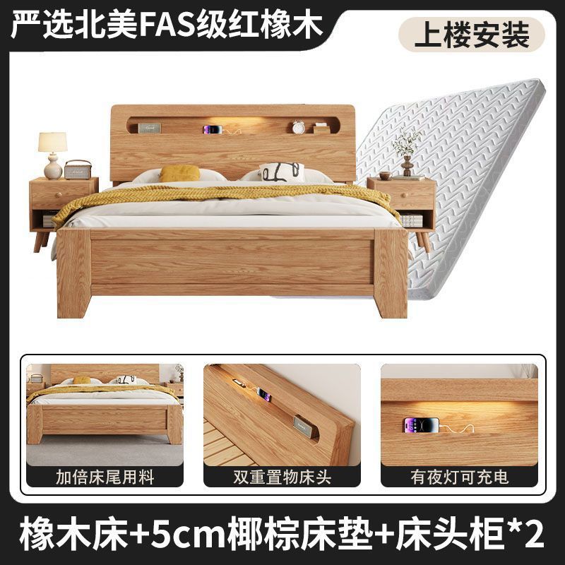 모든 원목 침대, 모던하고 심플한 마스터 침실 더블 침대 1.8m 홈 오크 침대 임대실 1.2m 싱글 침대 프레임스토어 가기