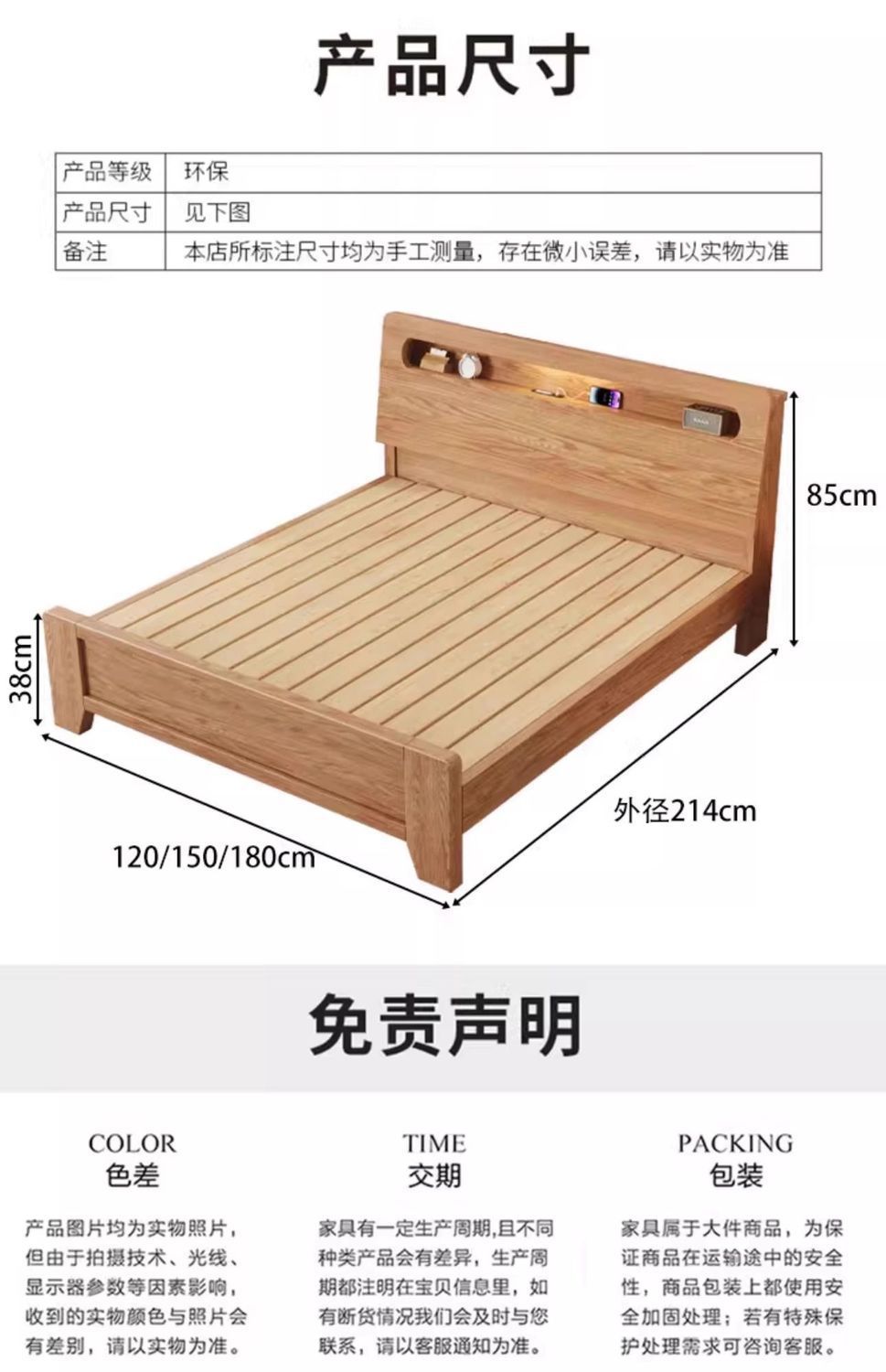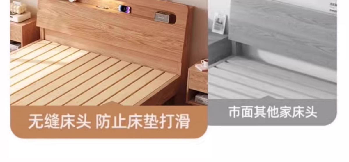 • 오크 침대 20cm 스프링 매트리스 침대 옆 탁자*2 [설치 포함]