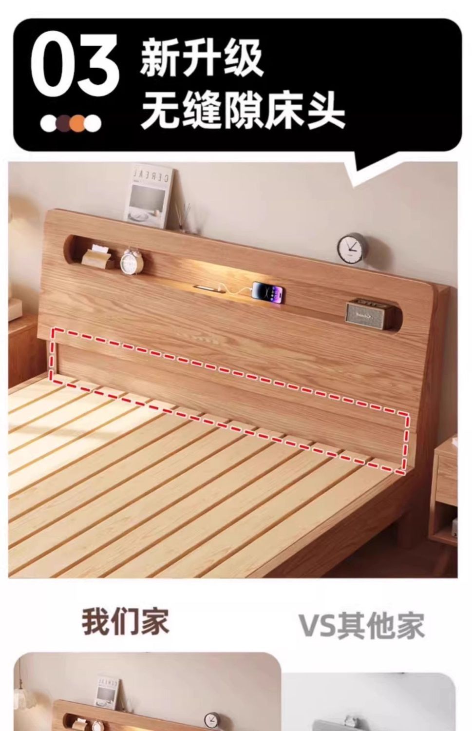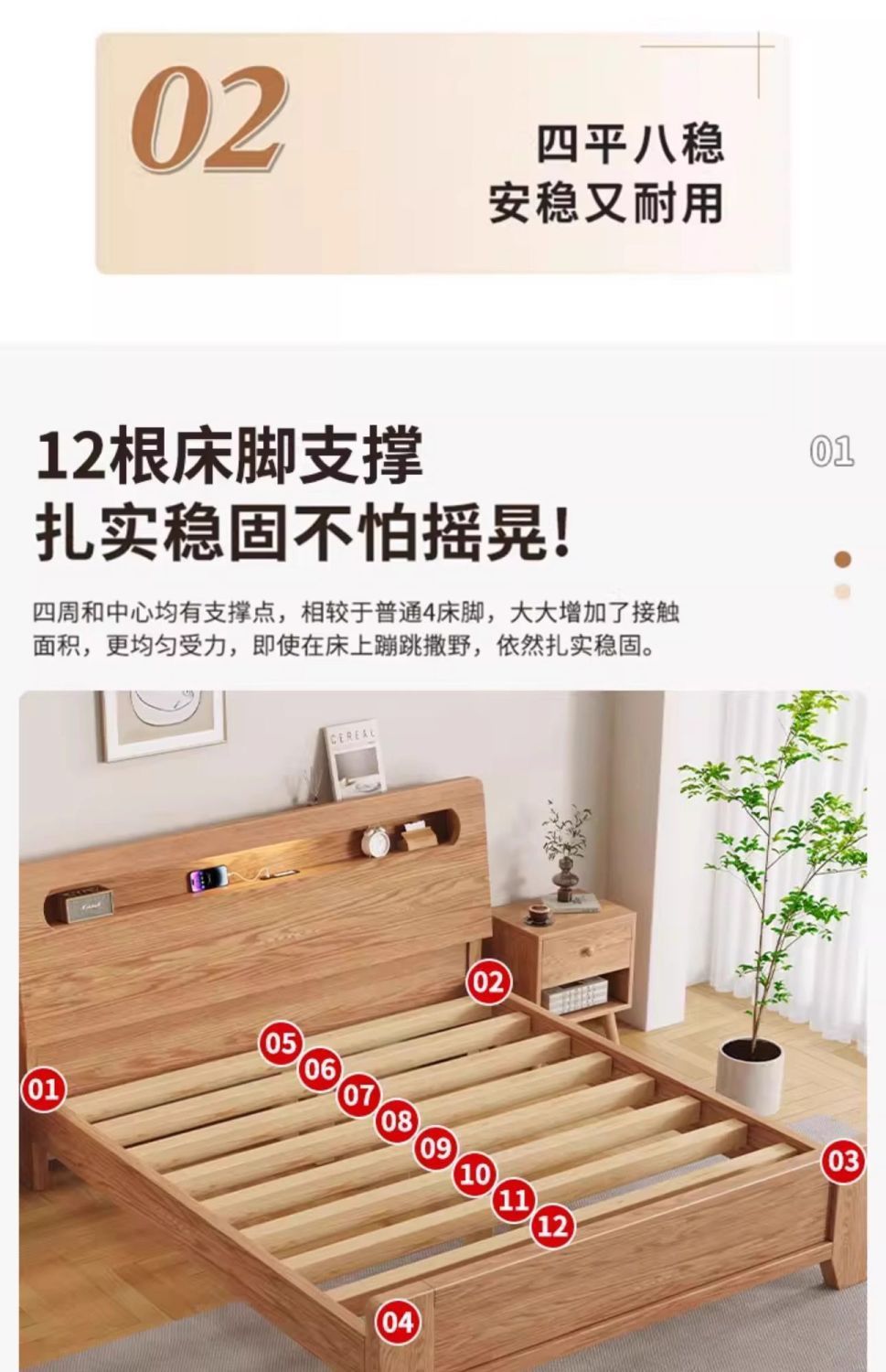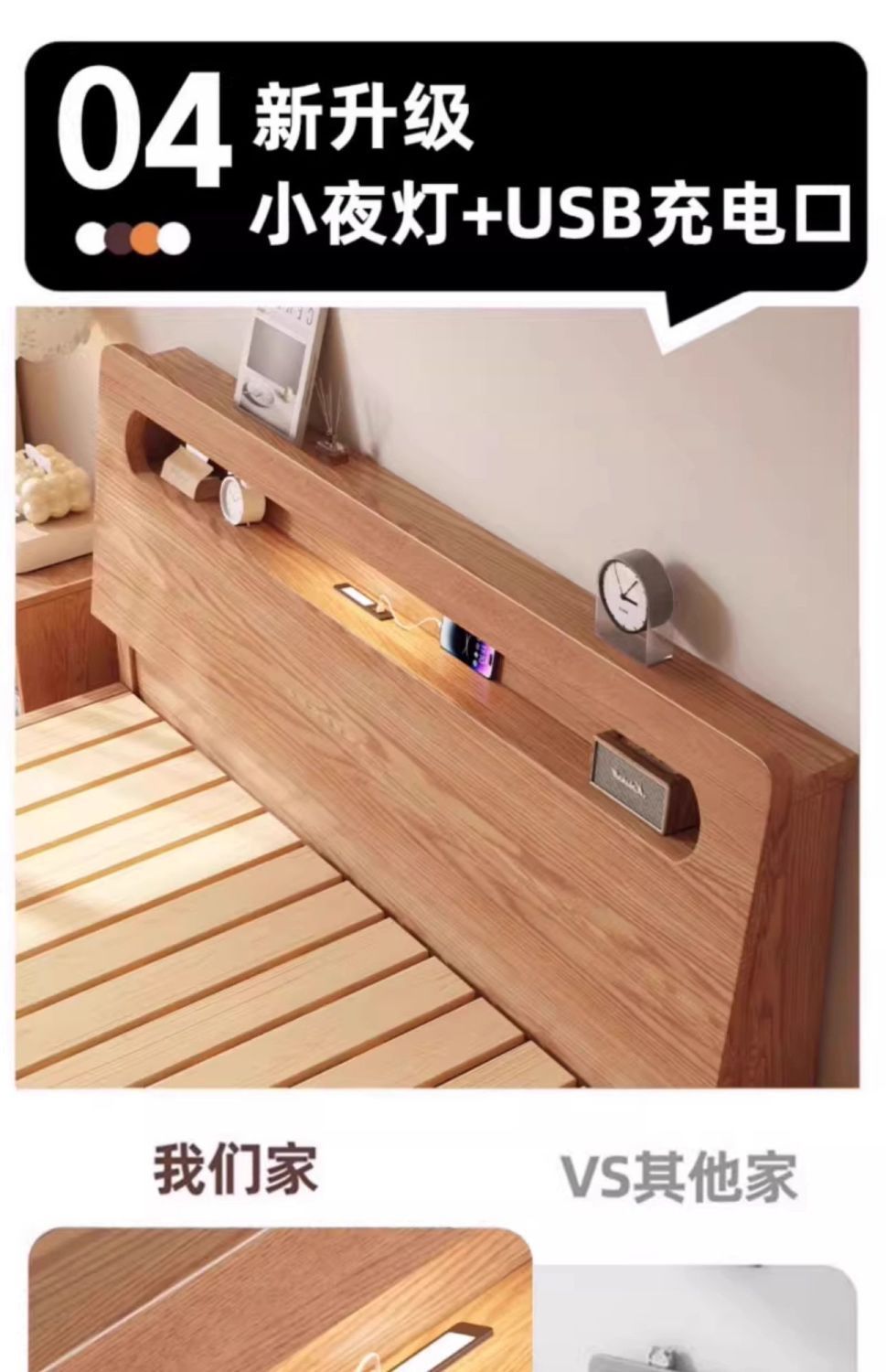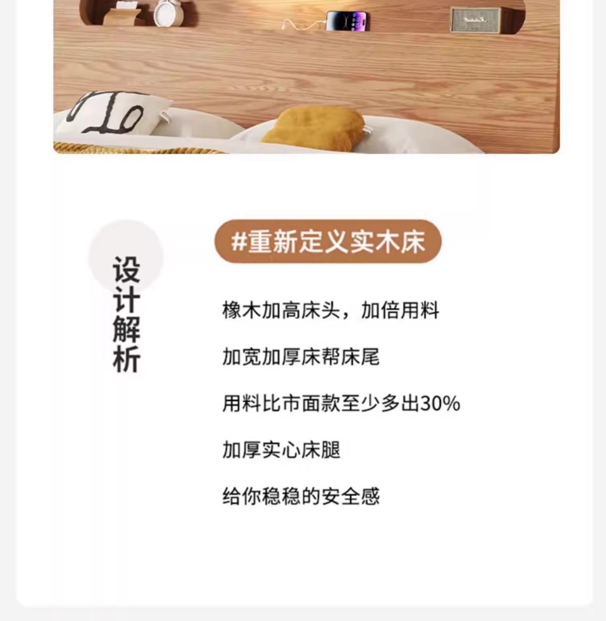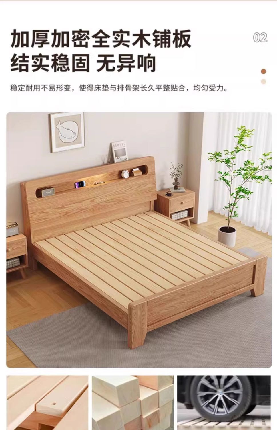 • 오크 침대 5cm 코코넛 야자 매트리스 침대 옆 탁자*2 [설치 포함]