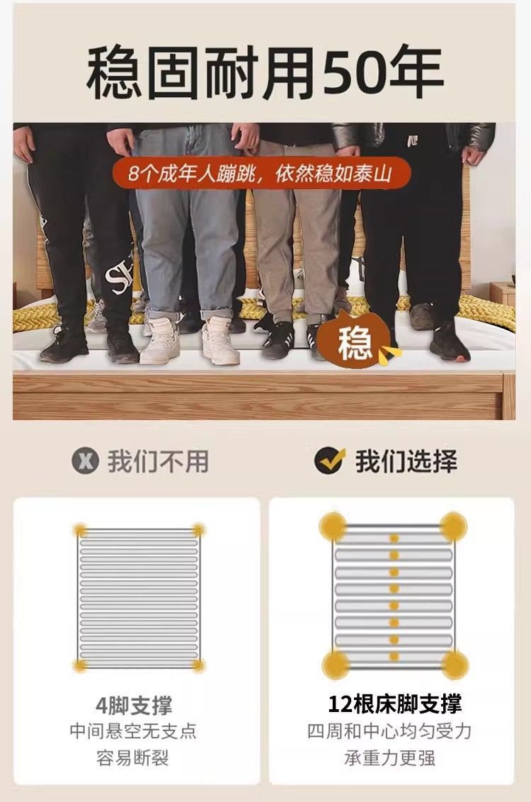 모든 원목 침대, 모던하고 심플한 마스터 침실 더블 침대 1.8m 홈 오크 침대 임대실 1.2m 싱글 침대 프레임