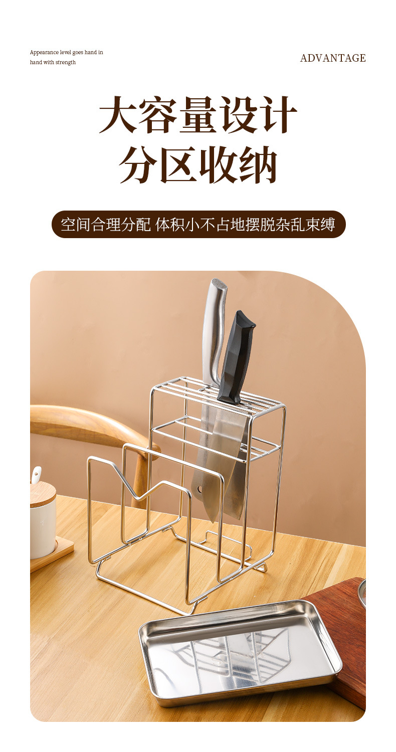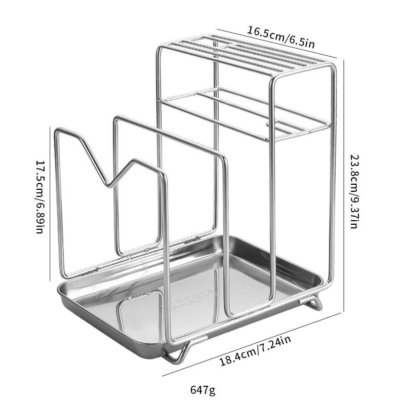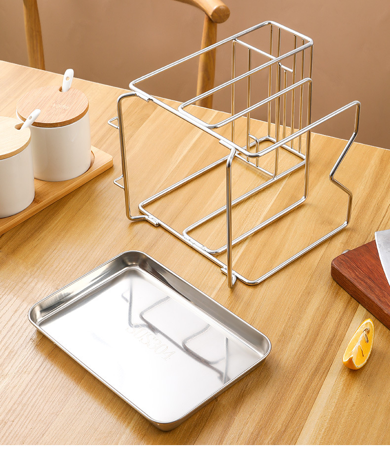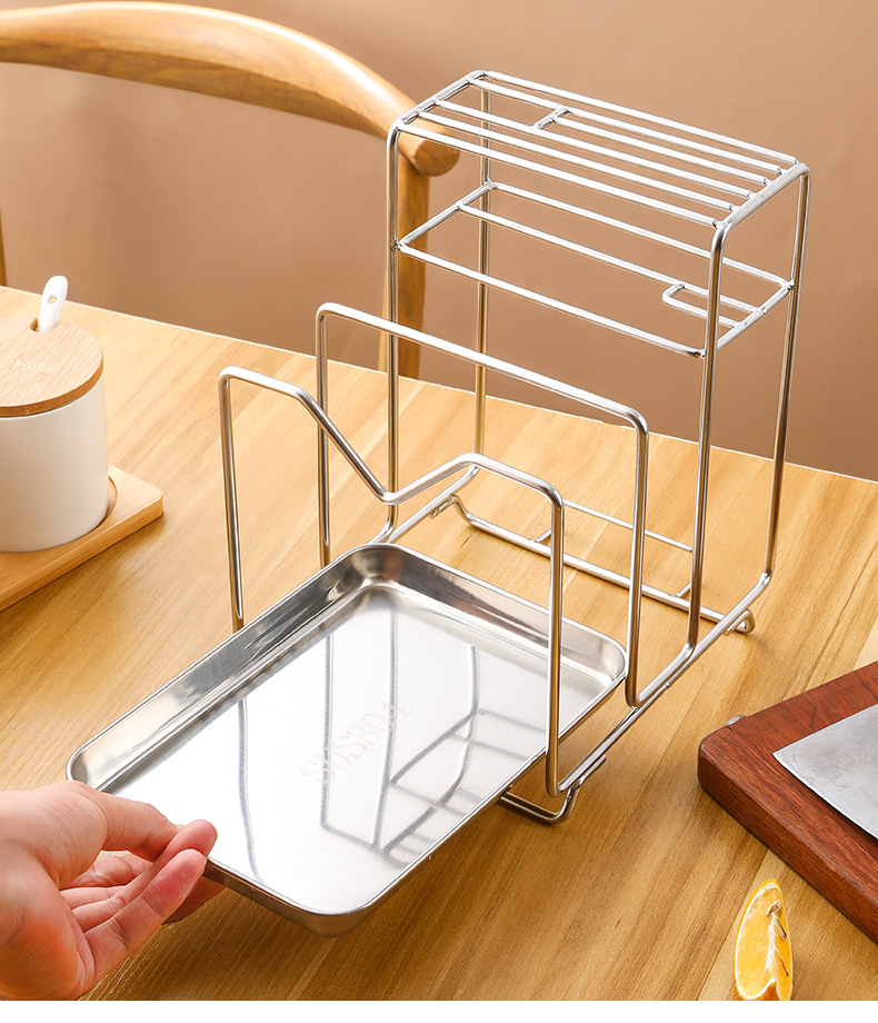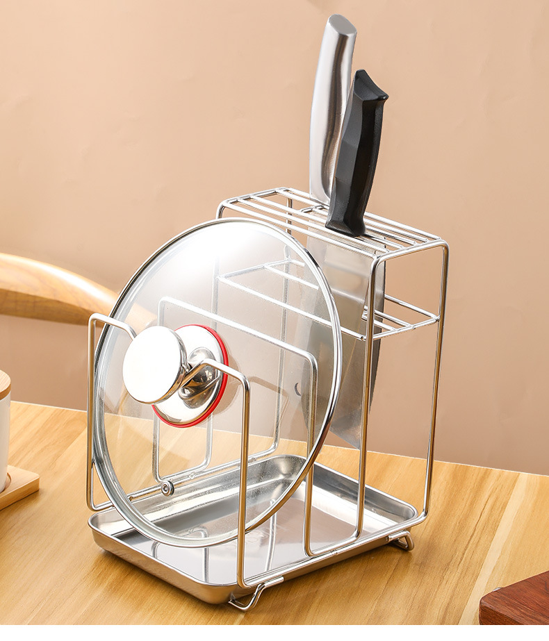 Amazon 304 스테인레스 스틸 칼 홀더, 도마 홀더, 통합 보관 카운터, 가정용 주방 냄비 뚜껑 배수 보관함