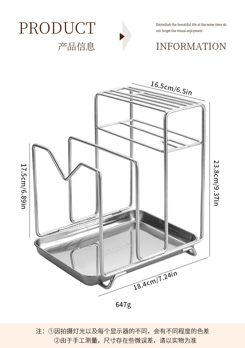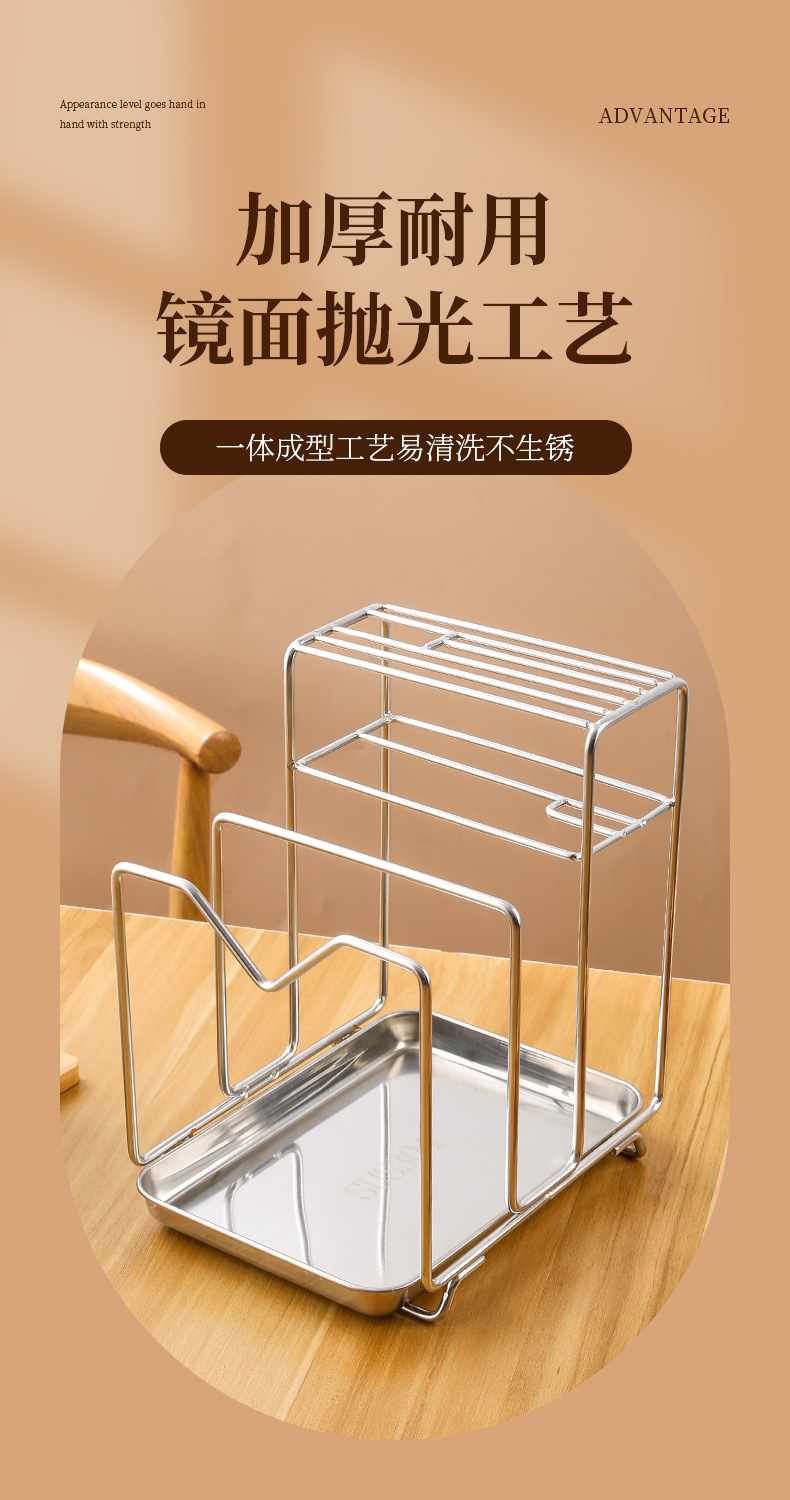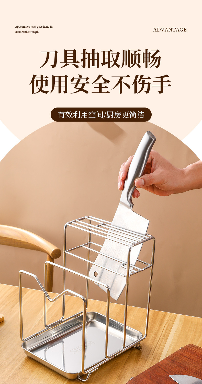Amazon 304 스테인레스 스틸 칼 홀더, 도마 홀더, 통합 보관 카운터, 가정용 주방 냄비 뚜껑 배수 보관함