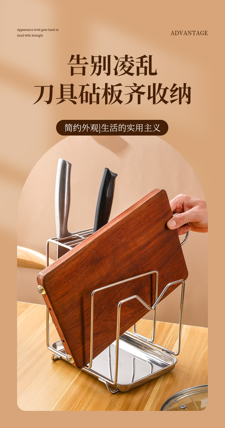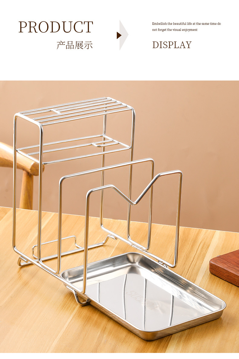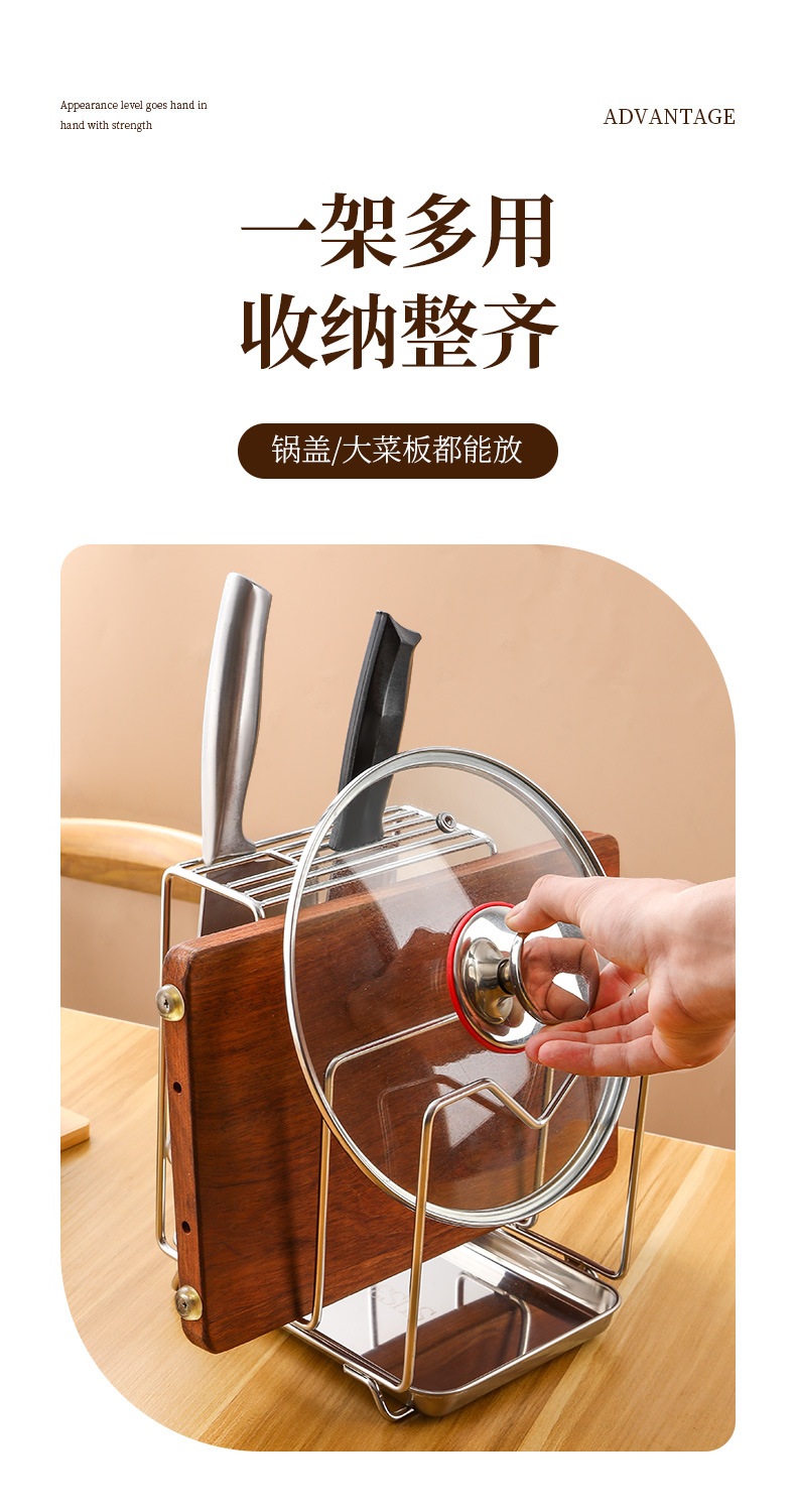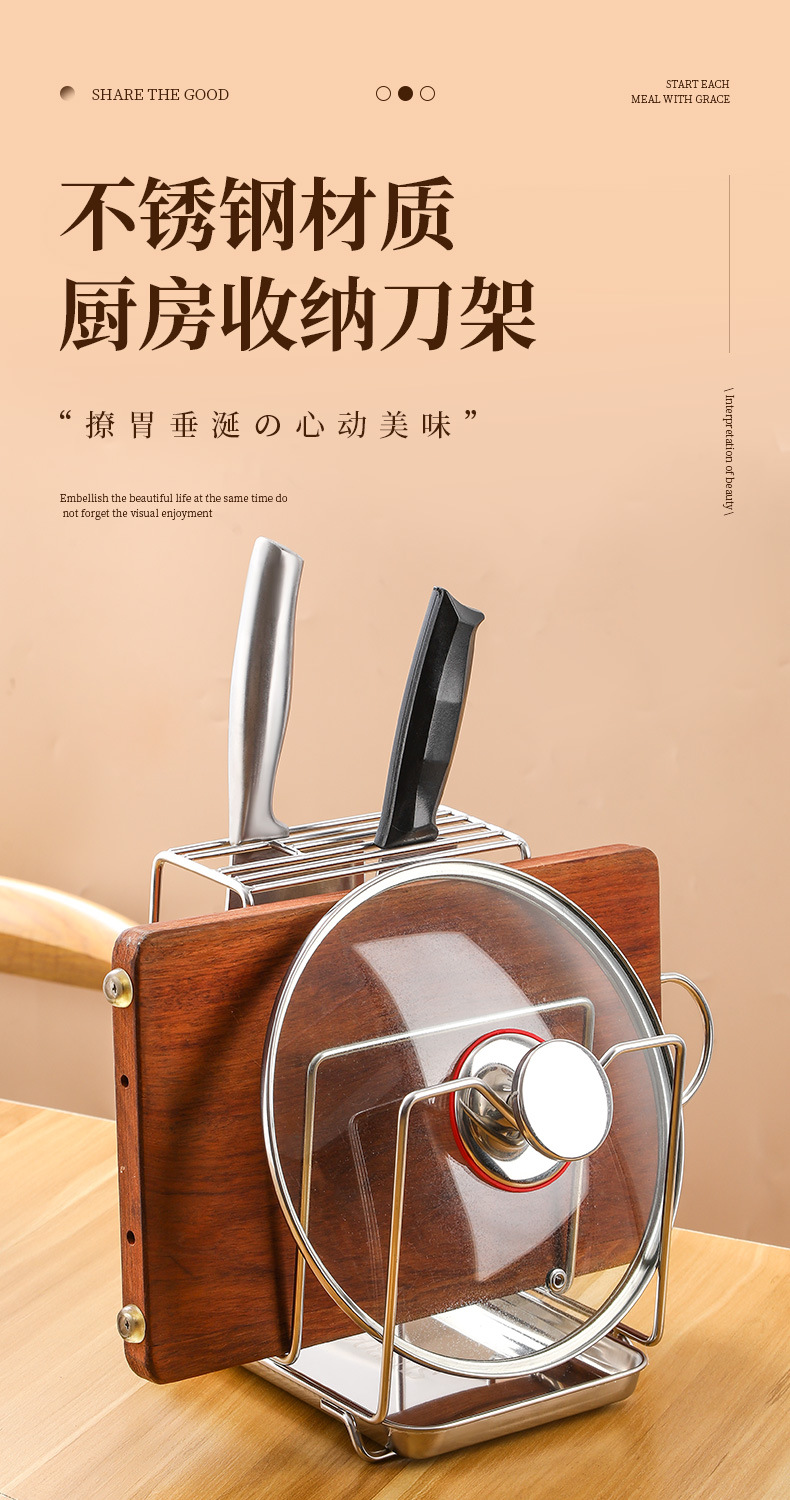 Amazon 304 스테인레스 스틸 칼 홀더, 도마 홀더, 통합 보관 카운터, 가정용 주방 냄비 뚜껑 배수 보관함스토어 가기