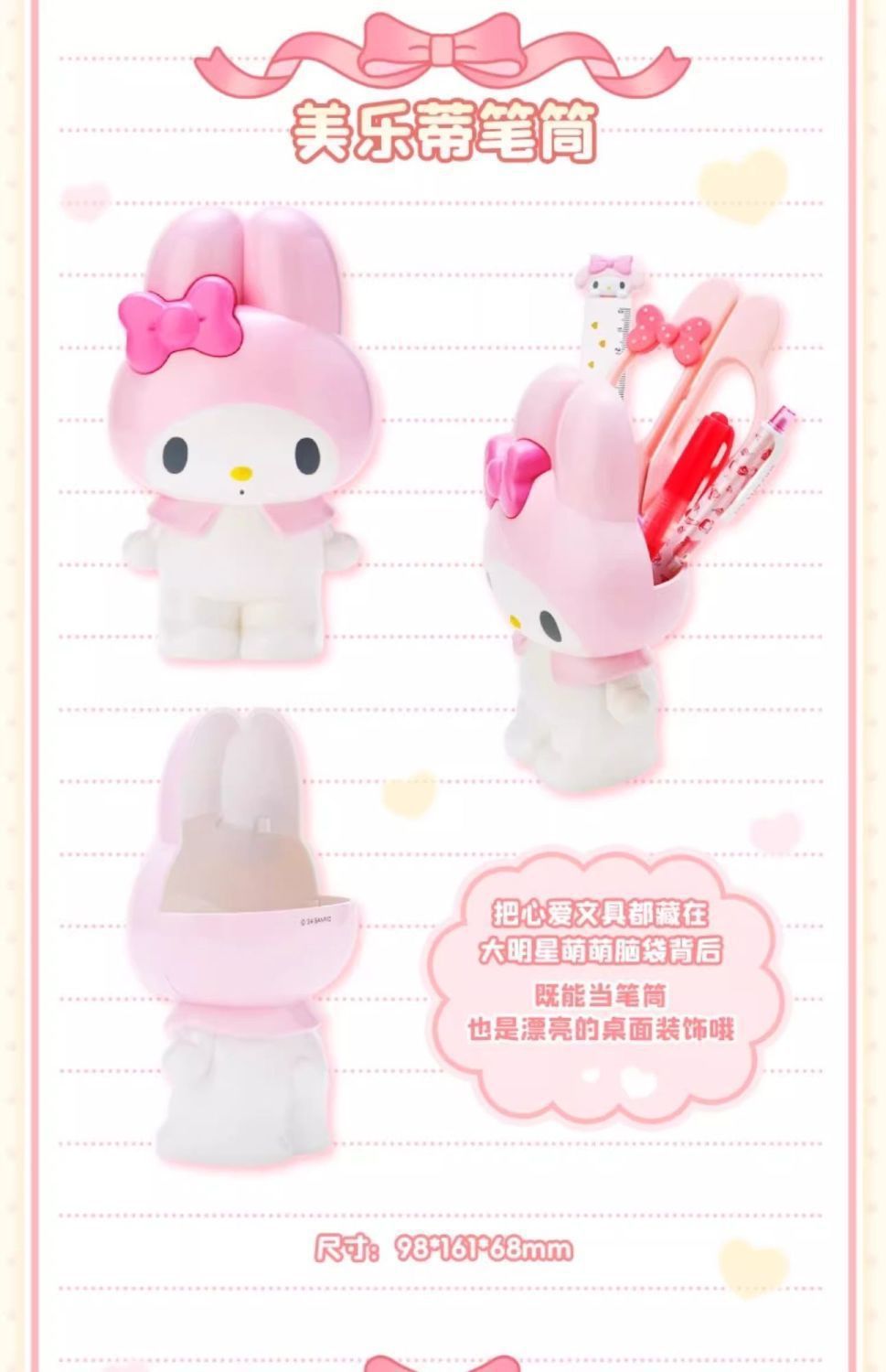 Sanrio HelloKitty 펜 홀더 문구 멜로디 메이크업 브러쉬 보관함 데스크탑 보관 장식품 선물