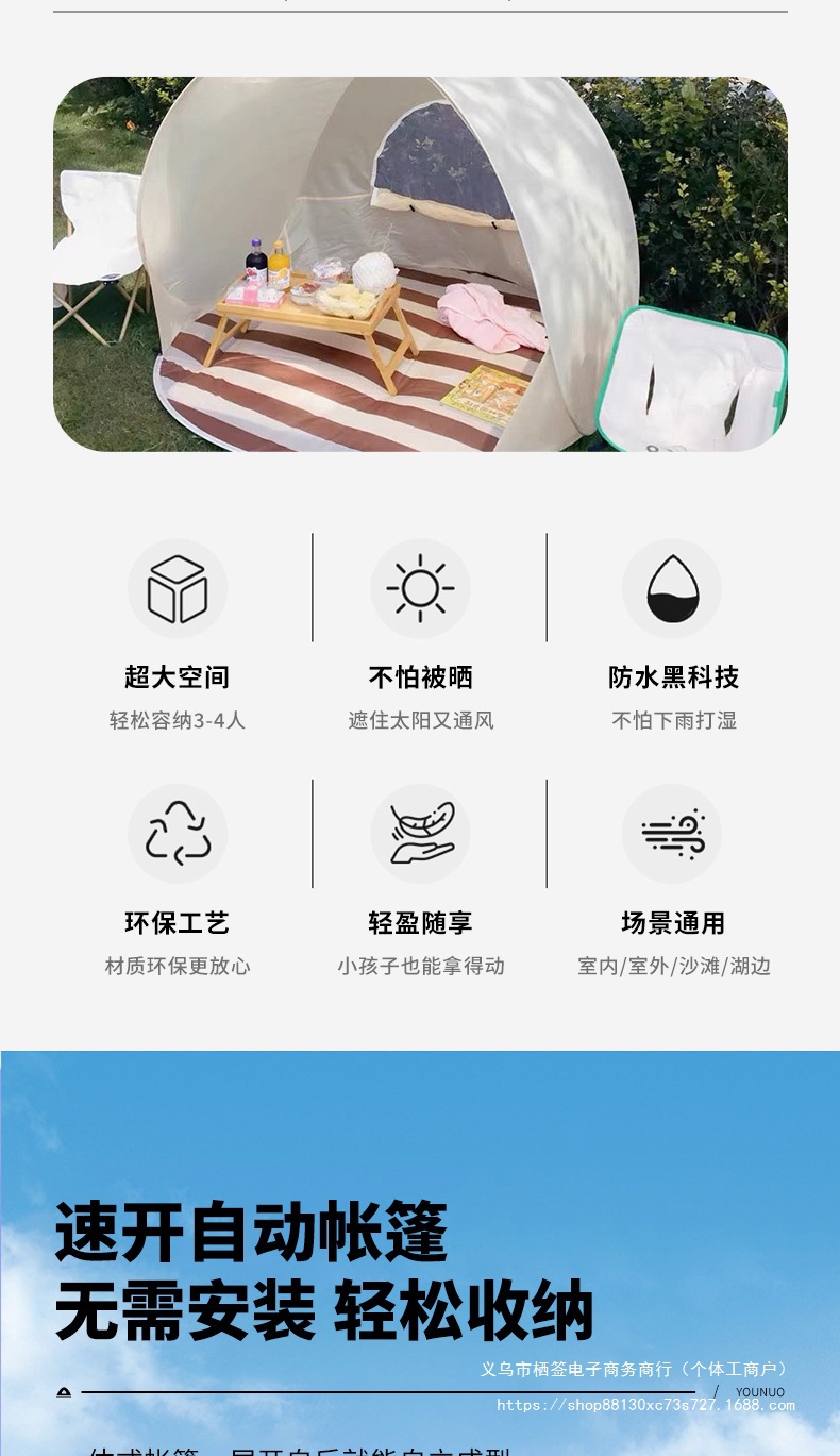텐트 야외 휴대용 접이식 원클릭 개폐 캠핑 텐트 태양 보호 방수 피크닉 차양