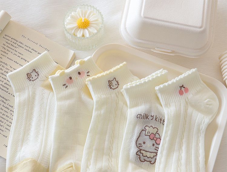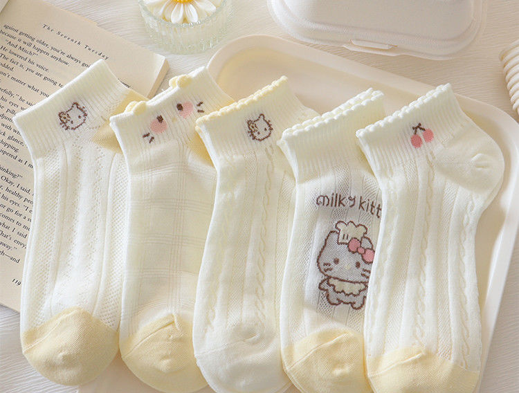 여성용 얇고 가벼운 양말 KT 새끼 고양이 양말 통기성 여름 중공 양말 귀여운 소녀 다용도 얕은 입 여성 양말 도매