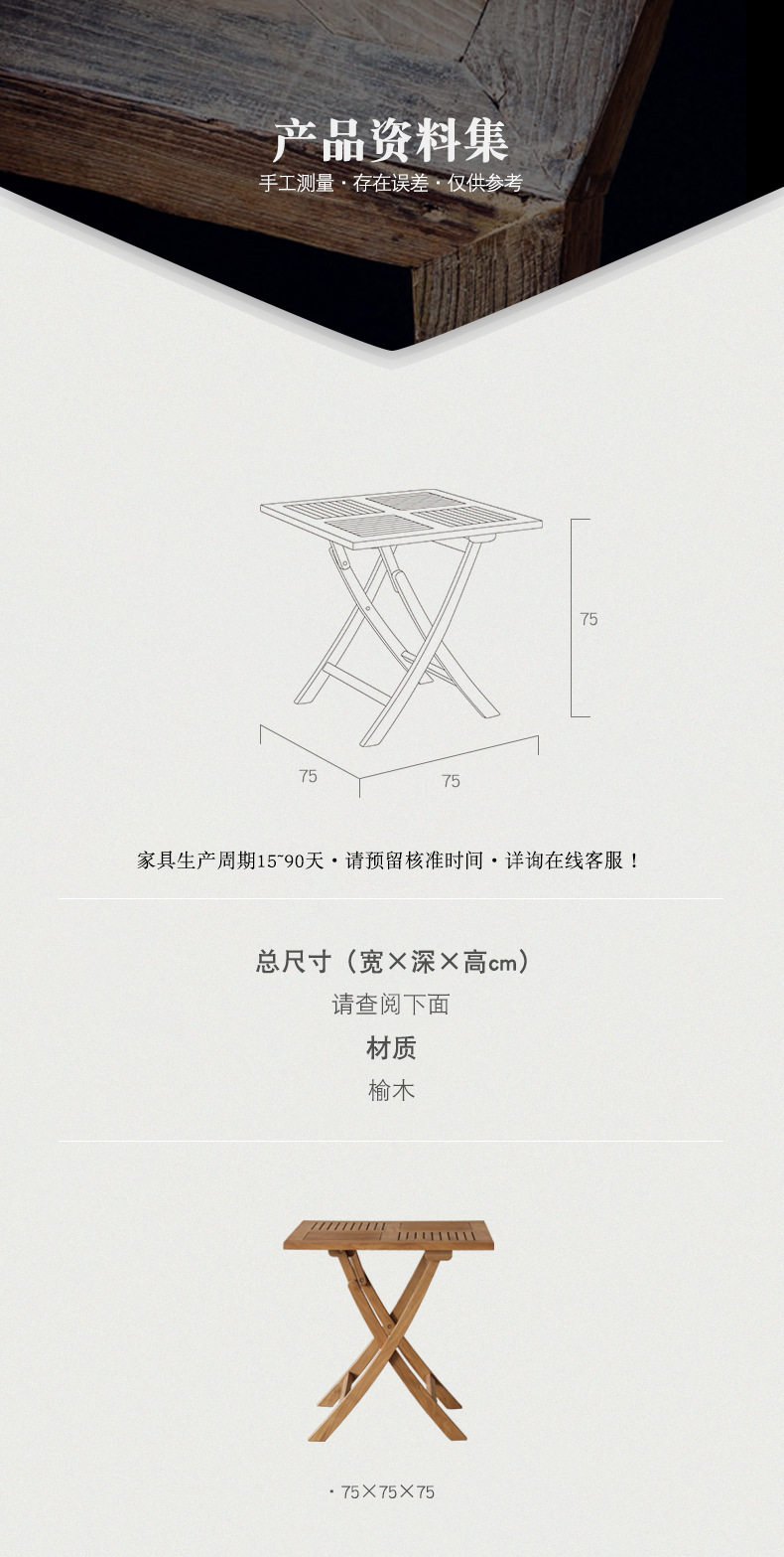 Wabi-sabi 스타일 B&B 발코니 안뜰 사각형 접이식 단단한 나무 식탁 복고풍 수출 동일한 스타일의 나무 야외 테이블스토어 가기