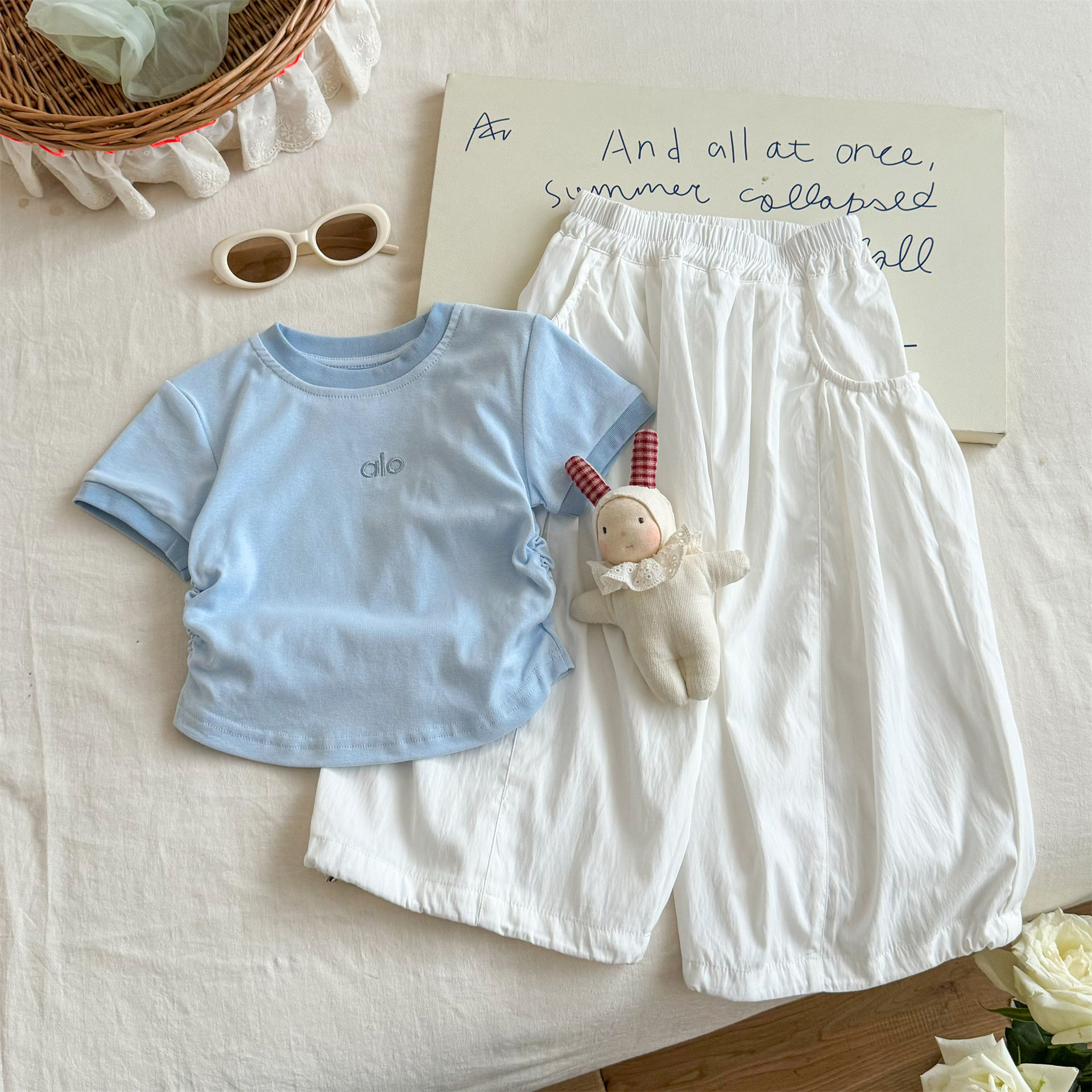 Ningli 여아 여름 세트, 아동용 반팔 속건 작업복 바지, 2026년 여름 신상, 아동복이 정말 아름답습니다.