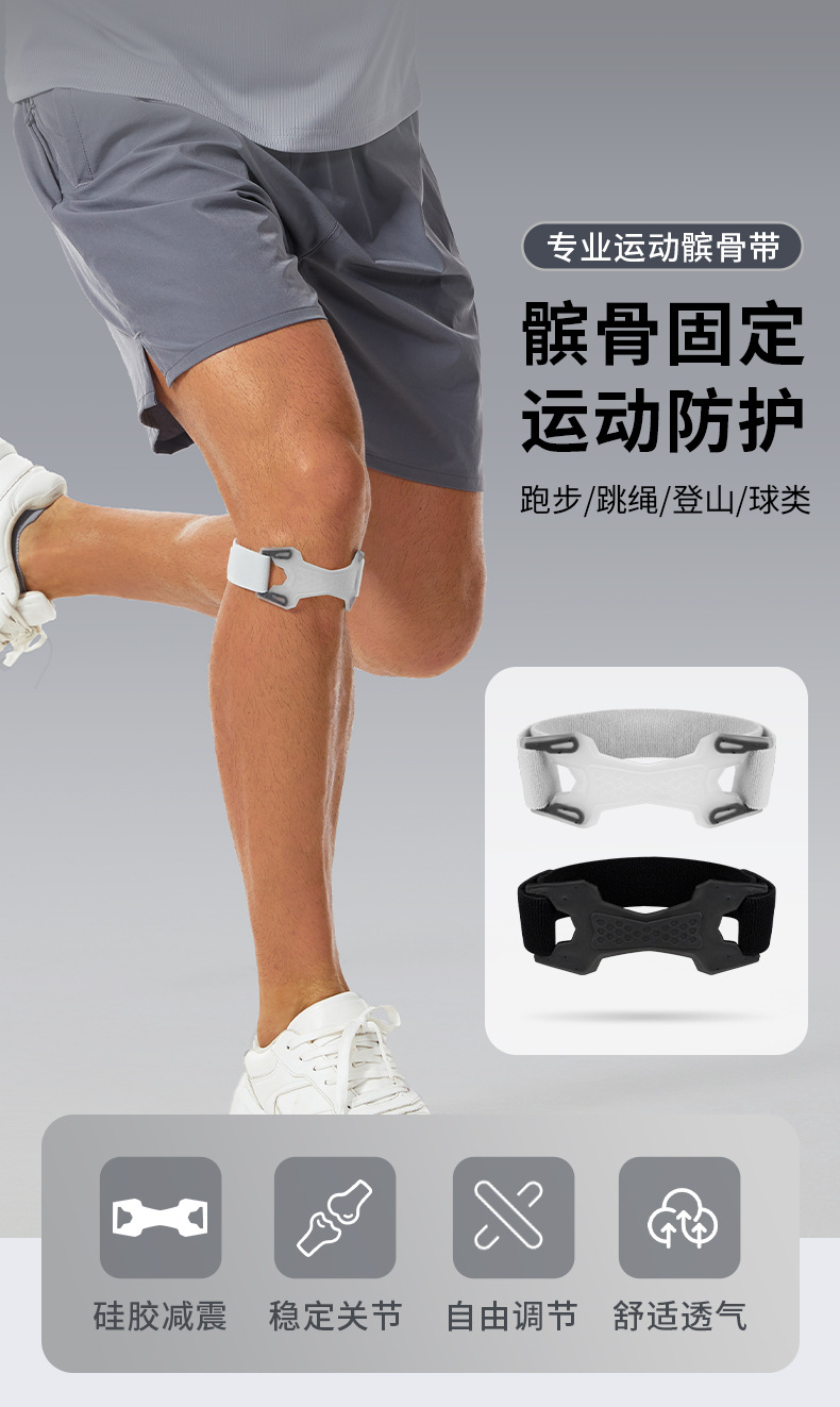 국경 간 새로운 실리콘 슬개골 벨트 양방향 가압 달리기 및 등산 무릎 패드 남성과 여성 스포츠 보호 안정적인 슬개골