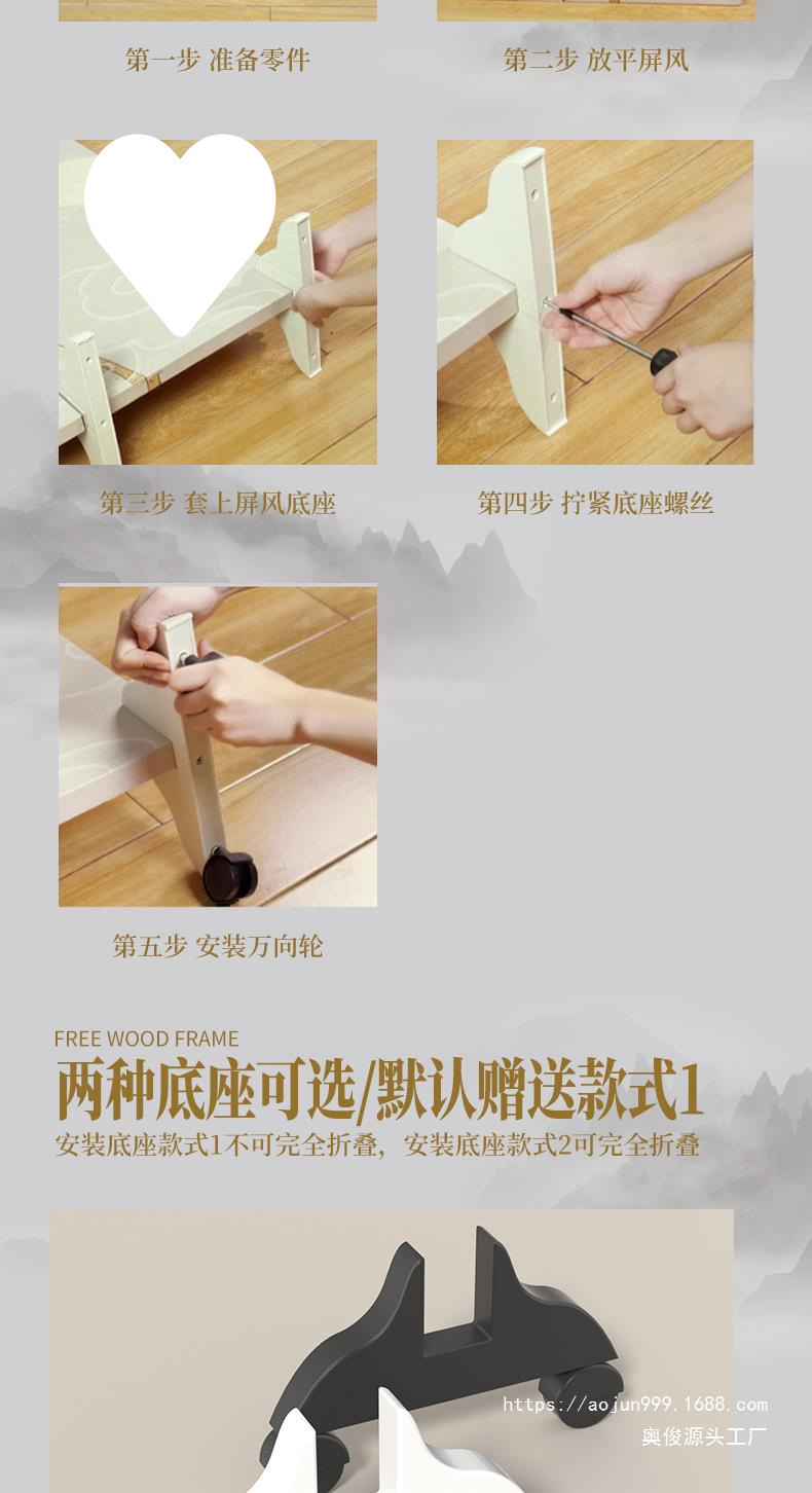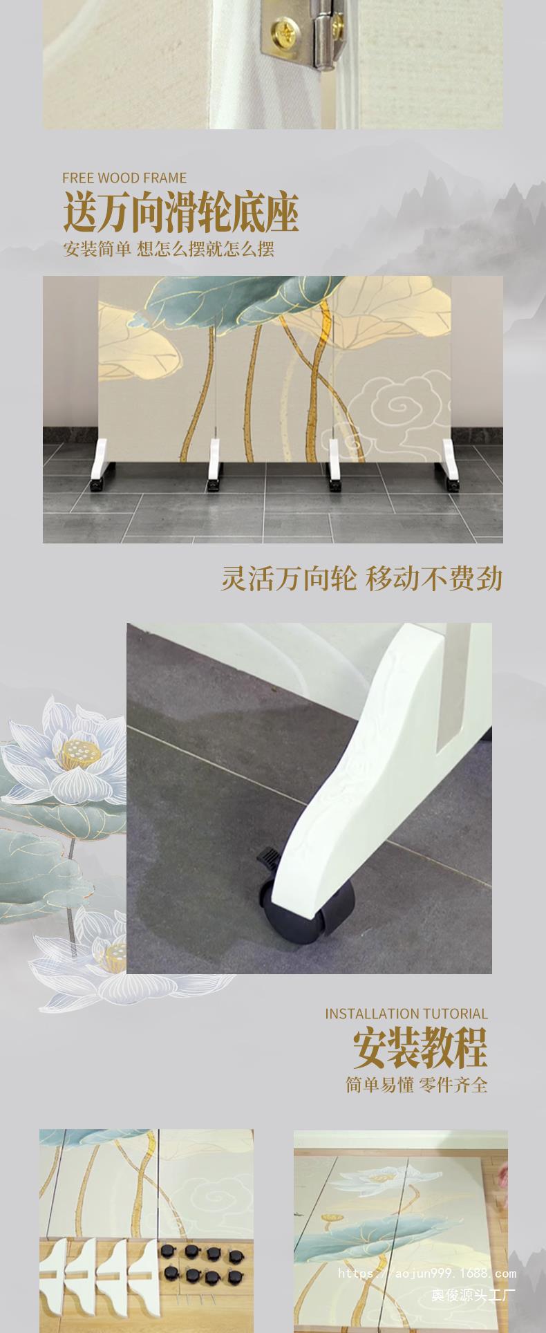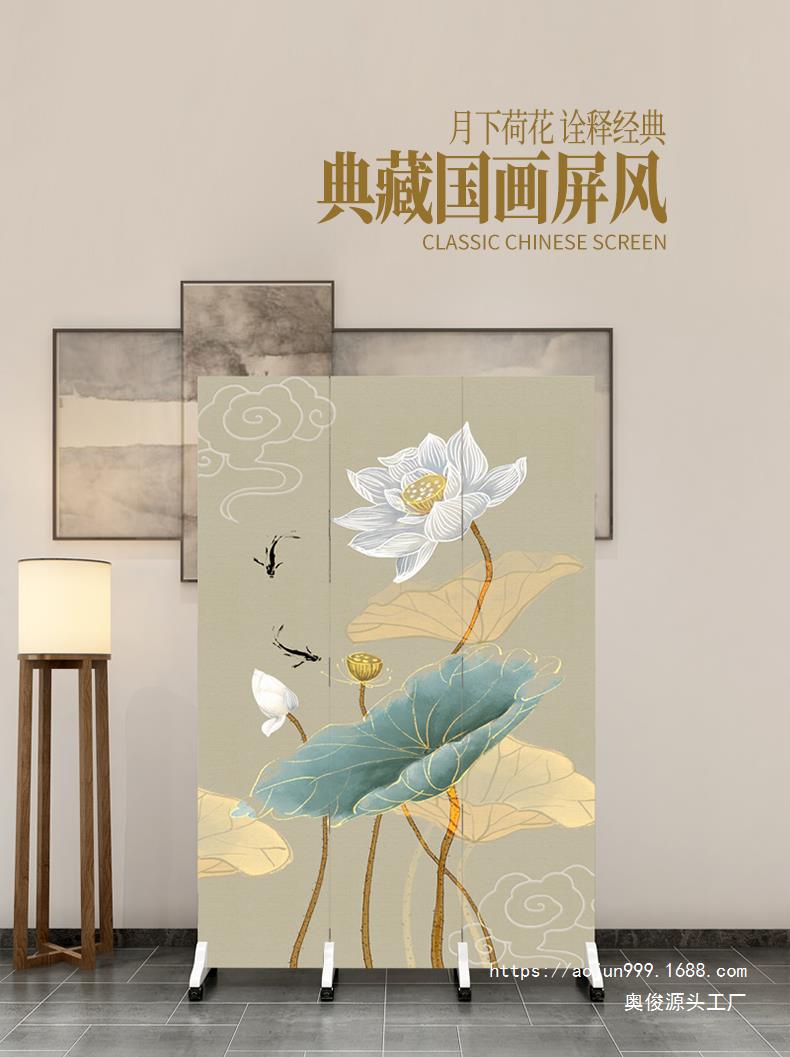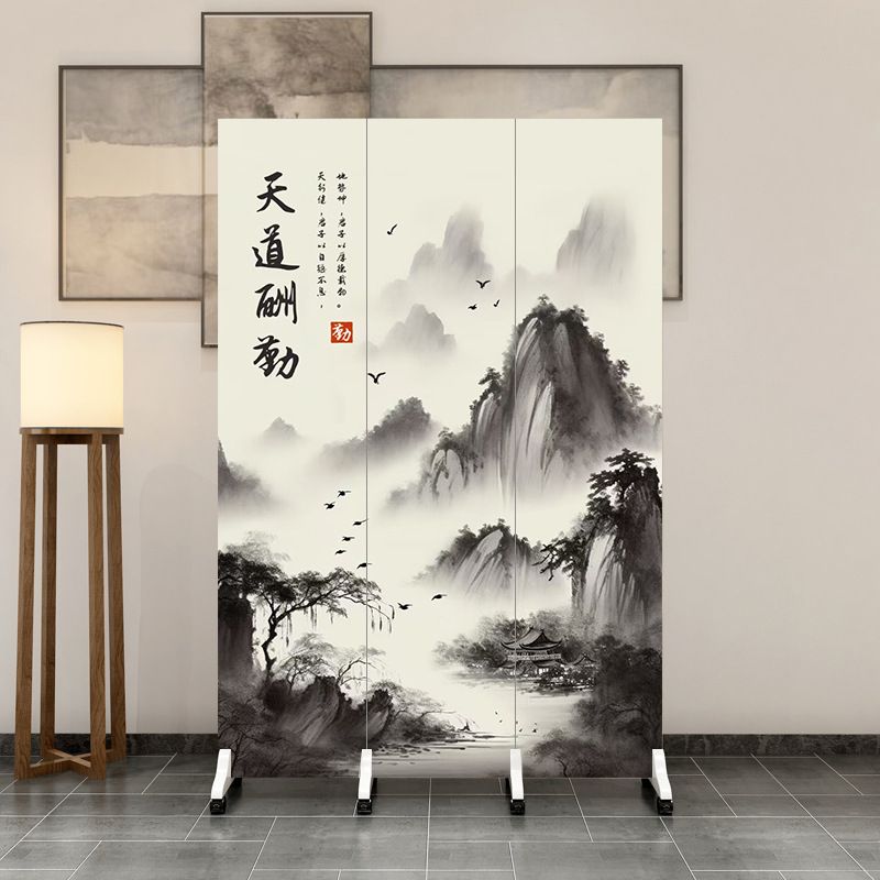 중국 스타일 홈 스크린 파티션 거실 침실 욕실 입구 커튼 사무실 간단한 모바일 접이식스토어 가기