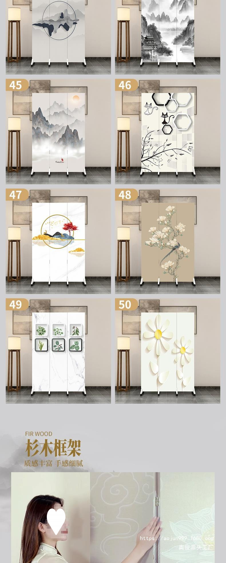 중국 스타일 홈 스크린 파티션 거실 침실 욕실 입구 커튼 사무실 간단한 모바일 접이식