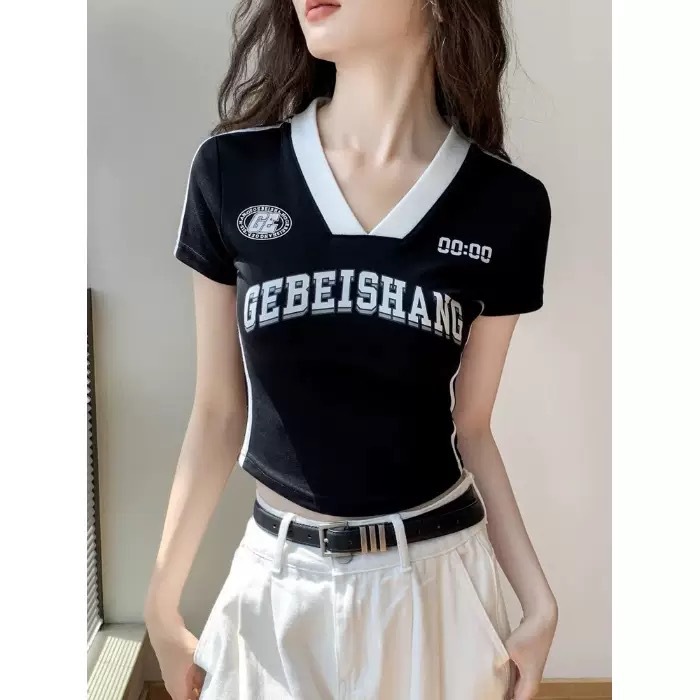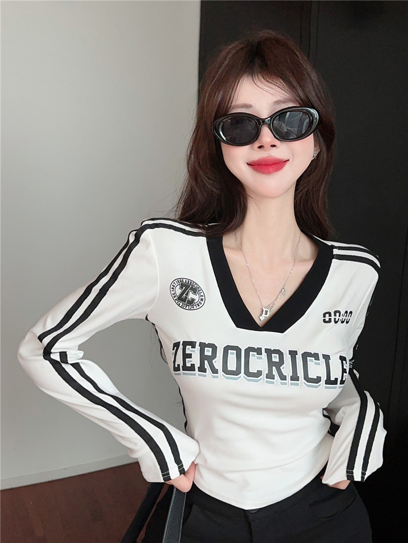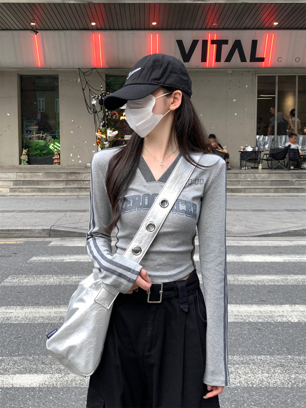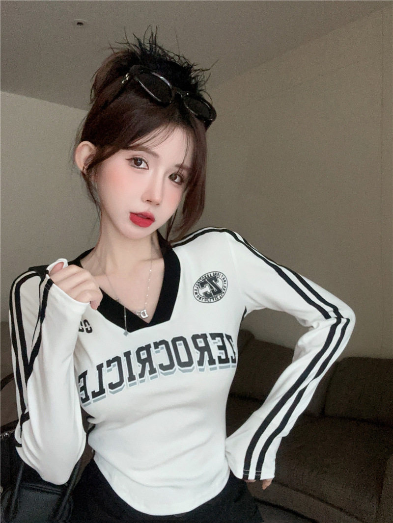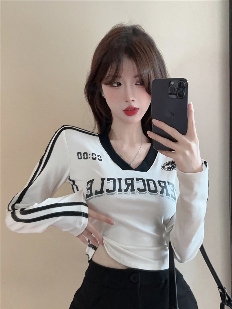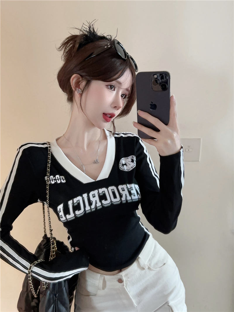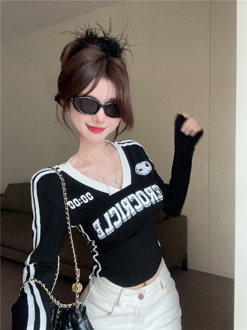 여성을위한 미국 복고풍 긴팔 티셔츠 2025 봄, 가을 새로운 스타일 꽉 슬림 짧은 벨라 스타일 블랙 핫 소녀 탑스토어 가기