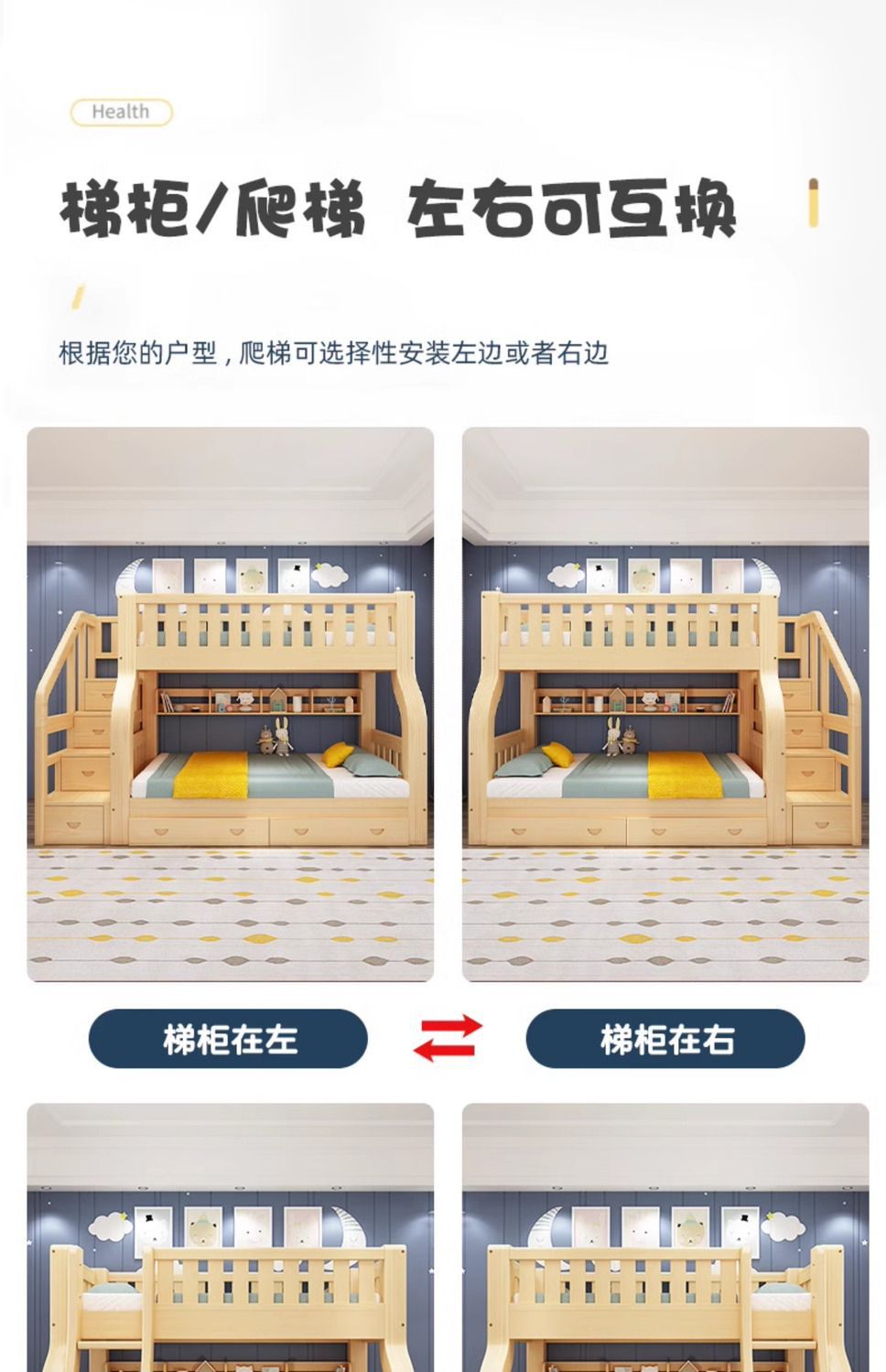 2층 침대, 다기능 원목 하이앤로우 침대, 어린이용 침대, 이층 침대, 성인용 2층 원목 침대스토어 가기