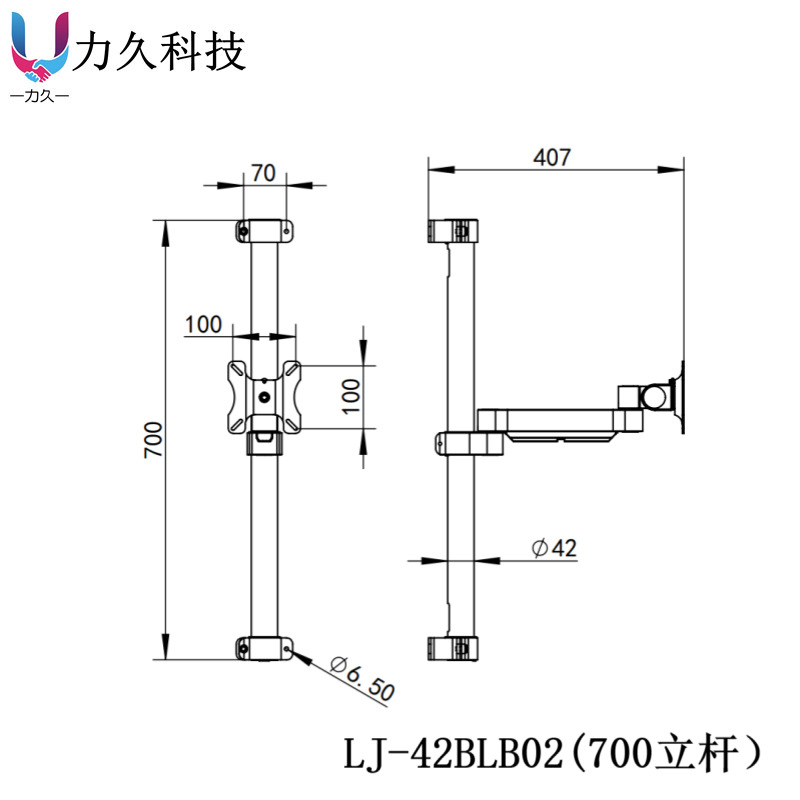 42BLB 산업용 벽걸이 형 컴퓨터 모니터 스탠드 통합 알루미늄 합금 듀얼 스크린 공작 기계 다목적
