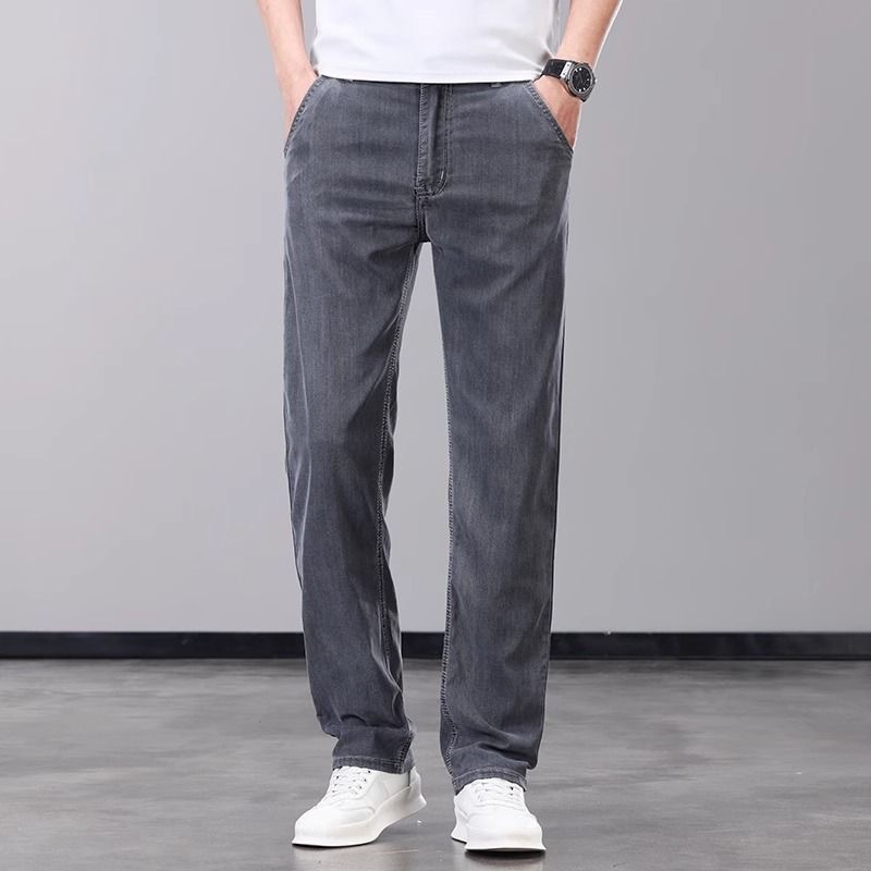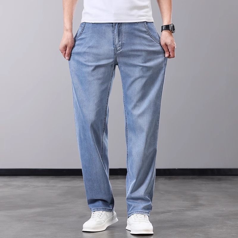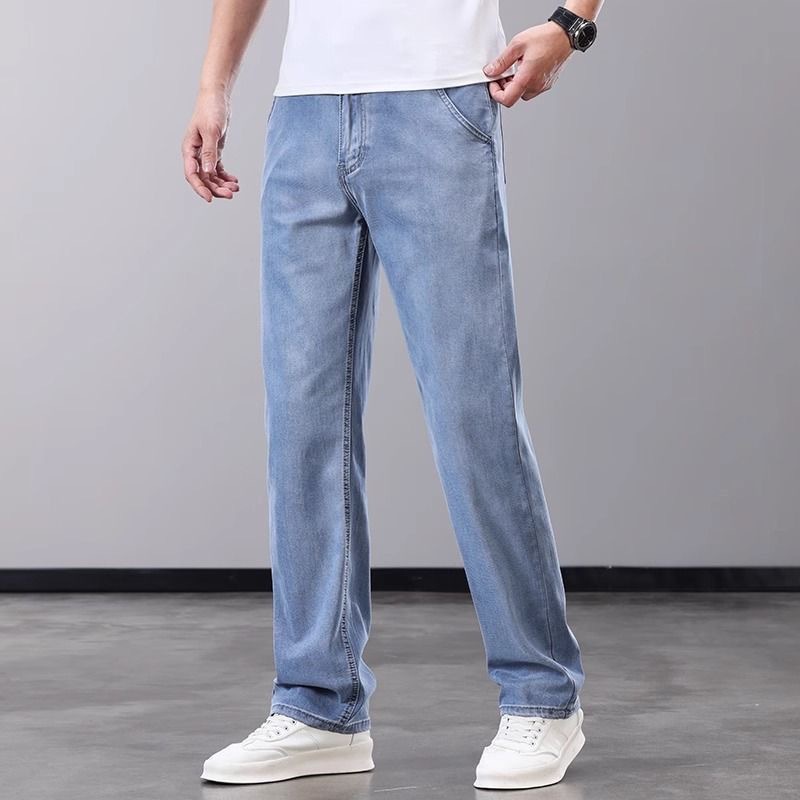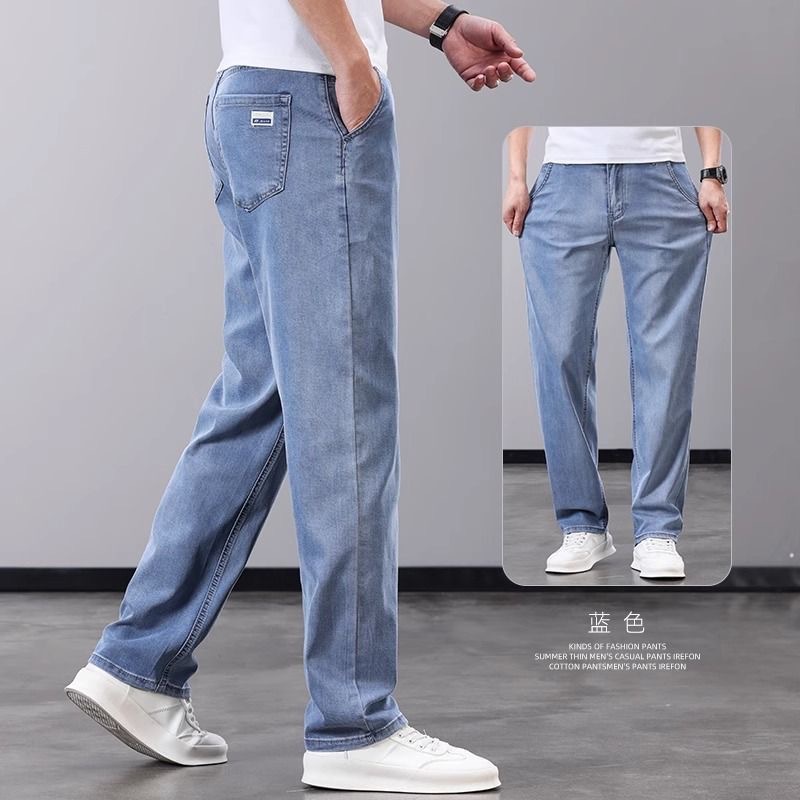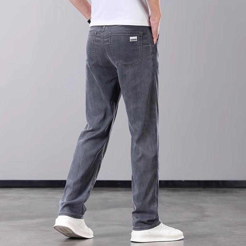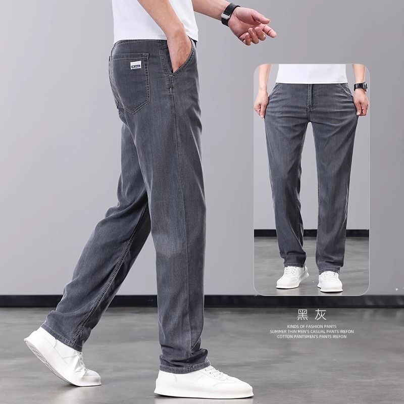 하이 엔드 워싱 청바지 남성 여름 얇은 텐셀 얇은 캐주얼 남성 바지 스트레이트 루즈 새로운 남성 바지스토어 가기