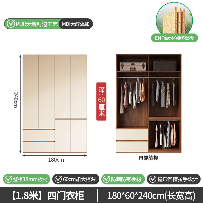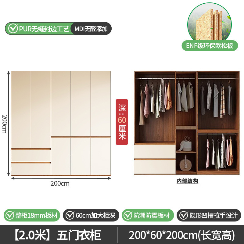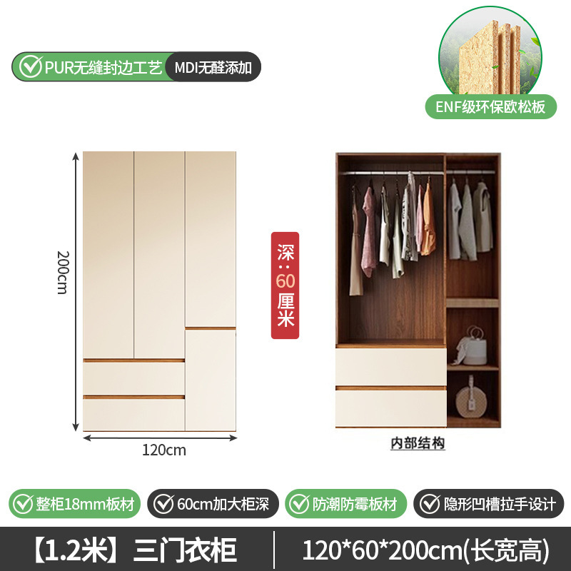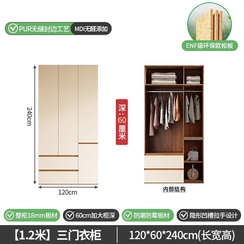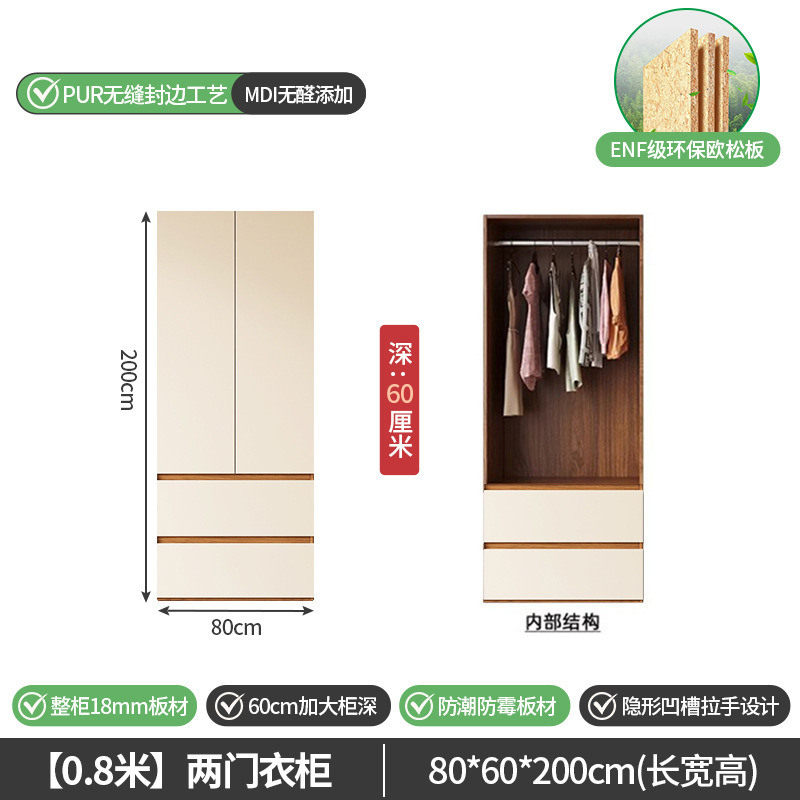 단단한 나무 옷장 침실 홈 유럽 소나무 판자 완제품 임대 옷장 옷 걸이 공간 멀티 크림 스타일 수납 옷장