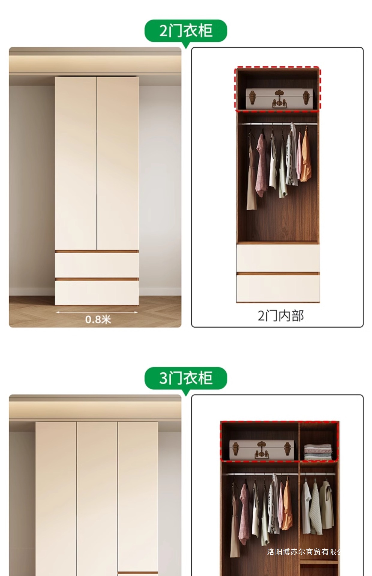 • 0.8m 2도어 옷장 [높이 2.4m ]